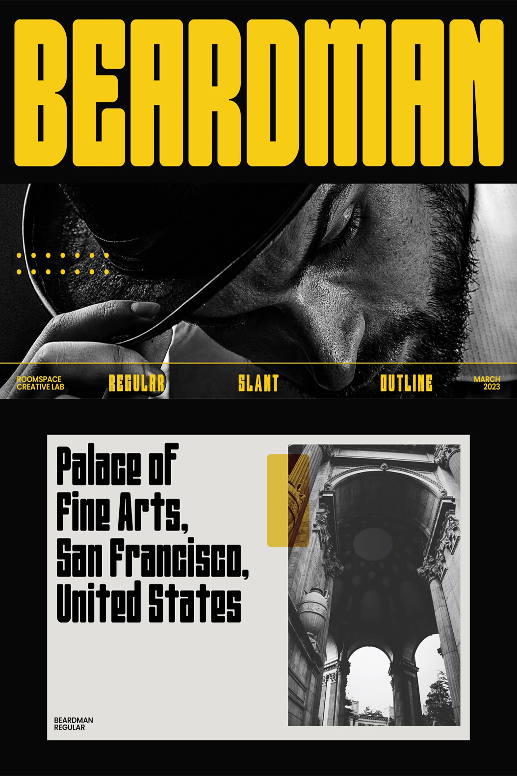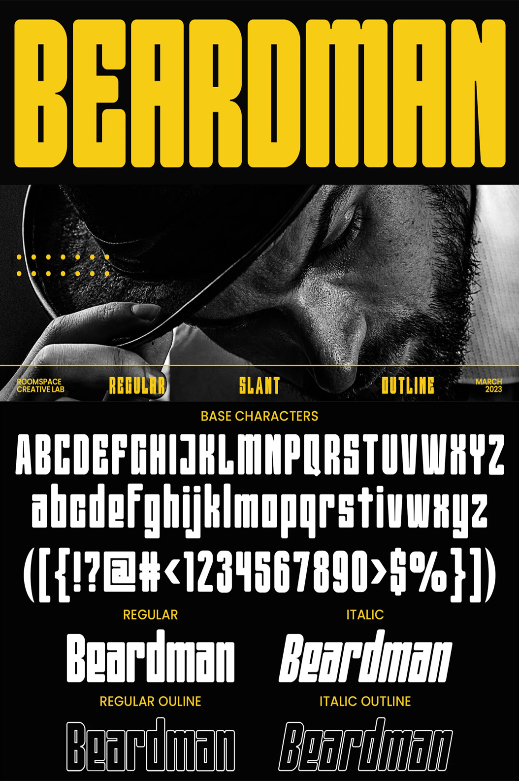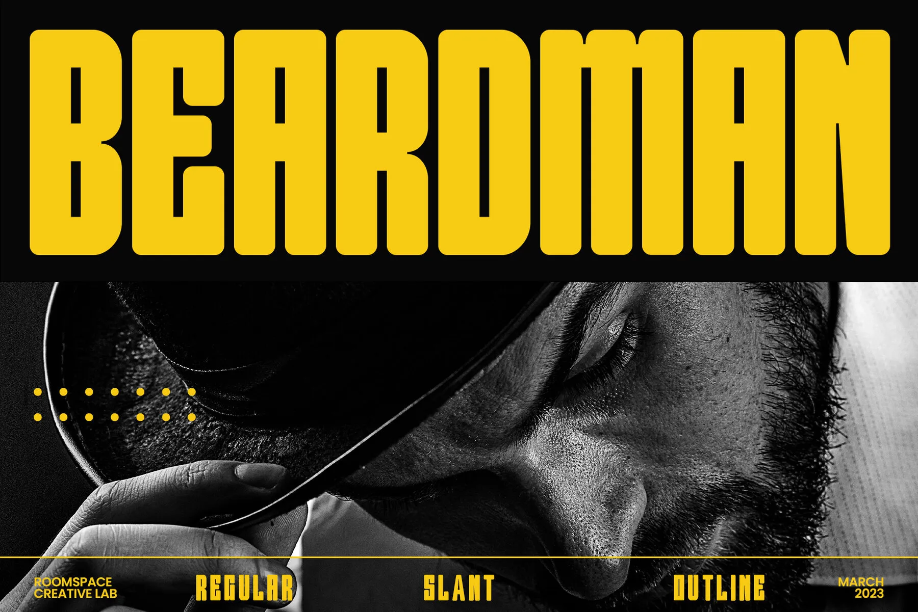 Beardman is a condensed sans-serif font designed specifically for bold and powerful headlines and titles. With four variants available: regular, italic, regular outline, and italic outline, this font allows you to express yourself with a style that suits your design project.