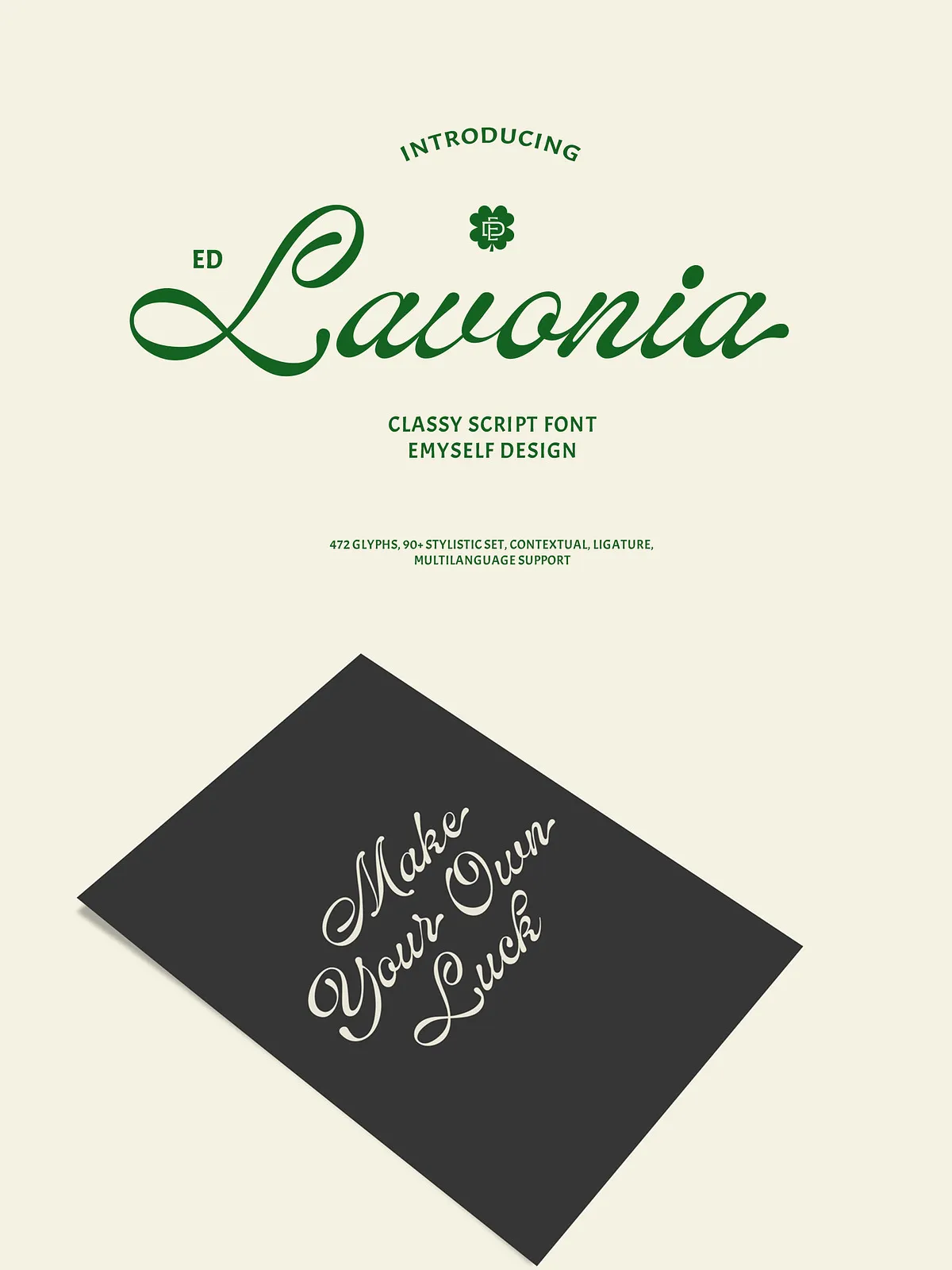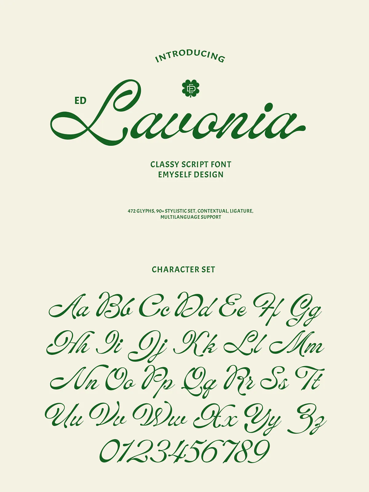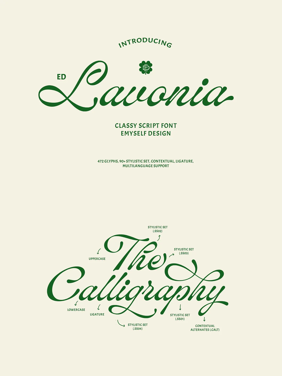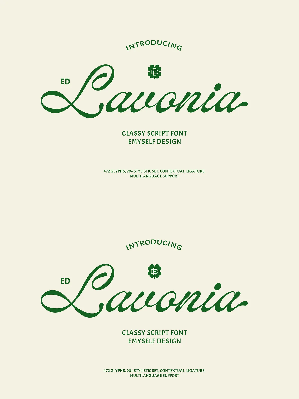 Lavonia Script is packed with dynamic typographic tools that give you creative freedom like no other script font. With over **472 unique glyphs**, you’re not limited to basic letters — you’re empowered to design with intention.