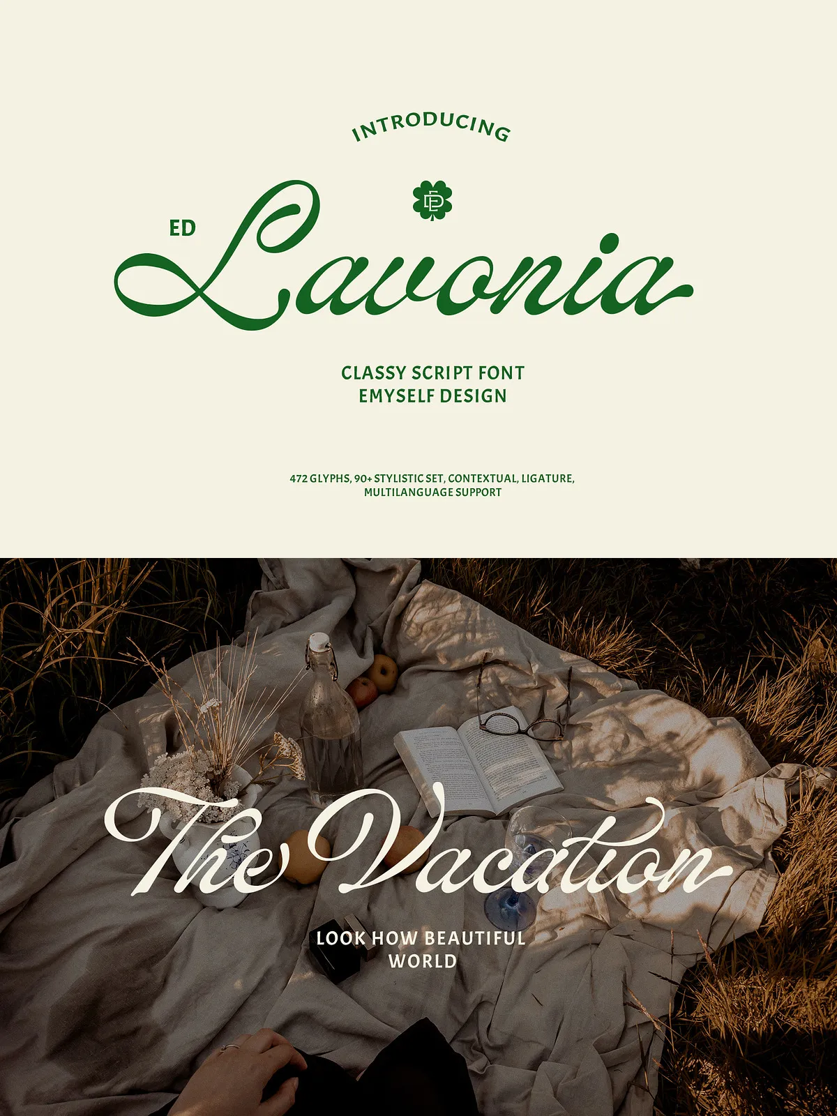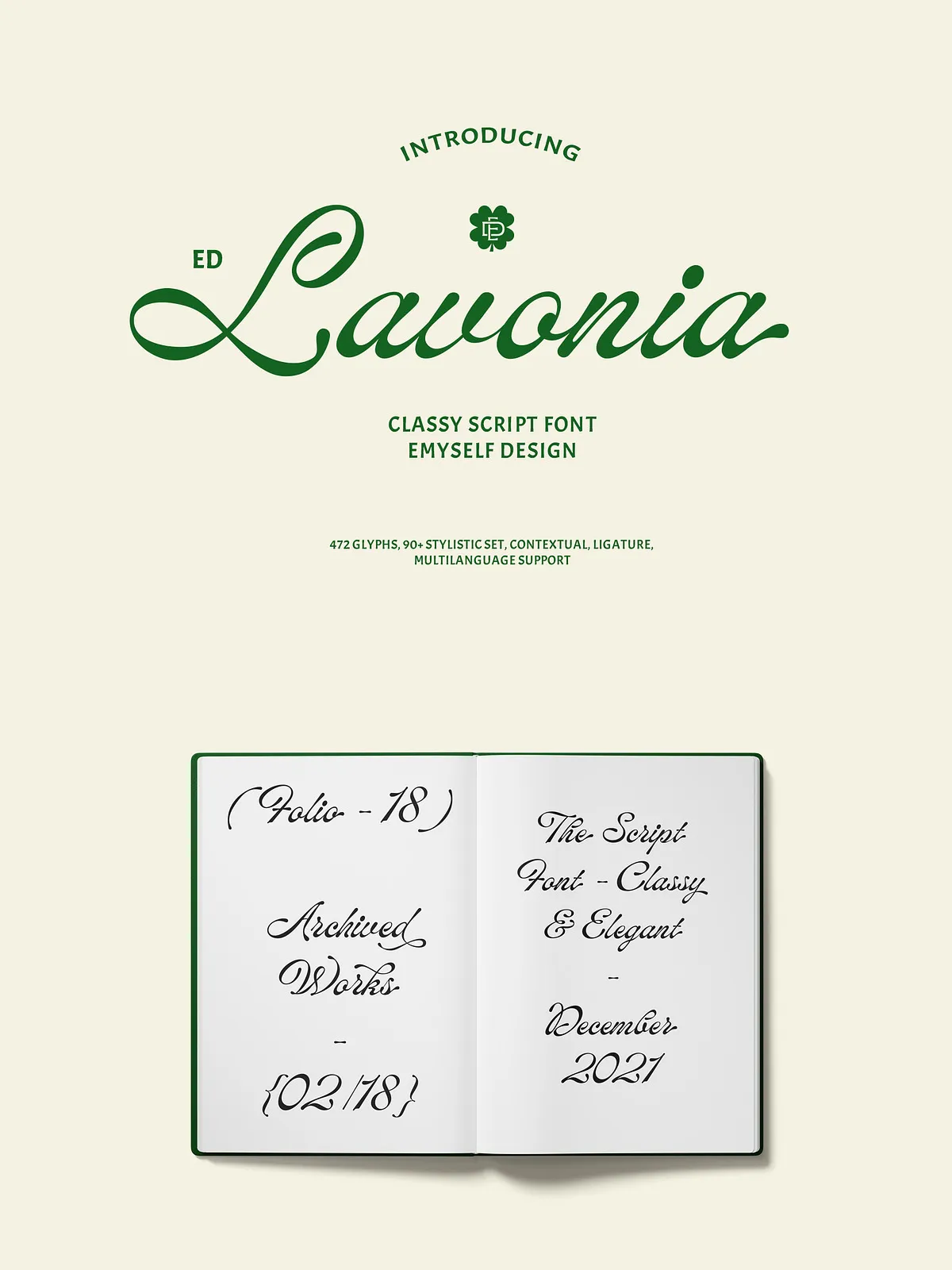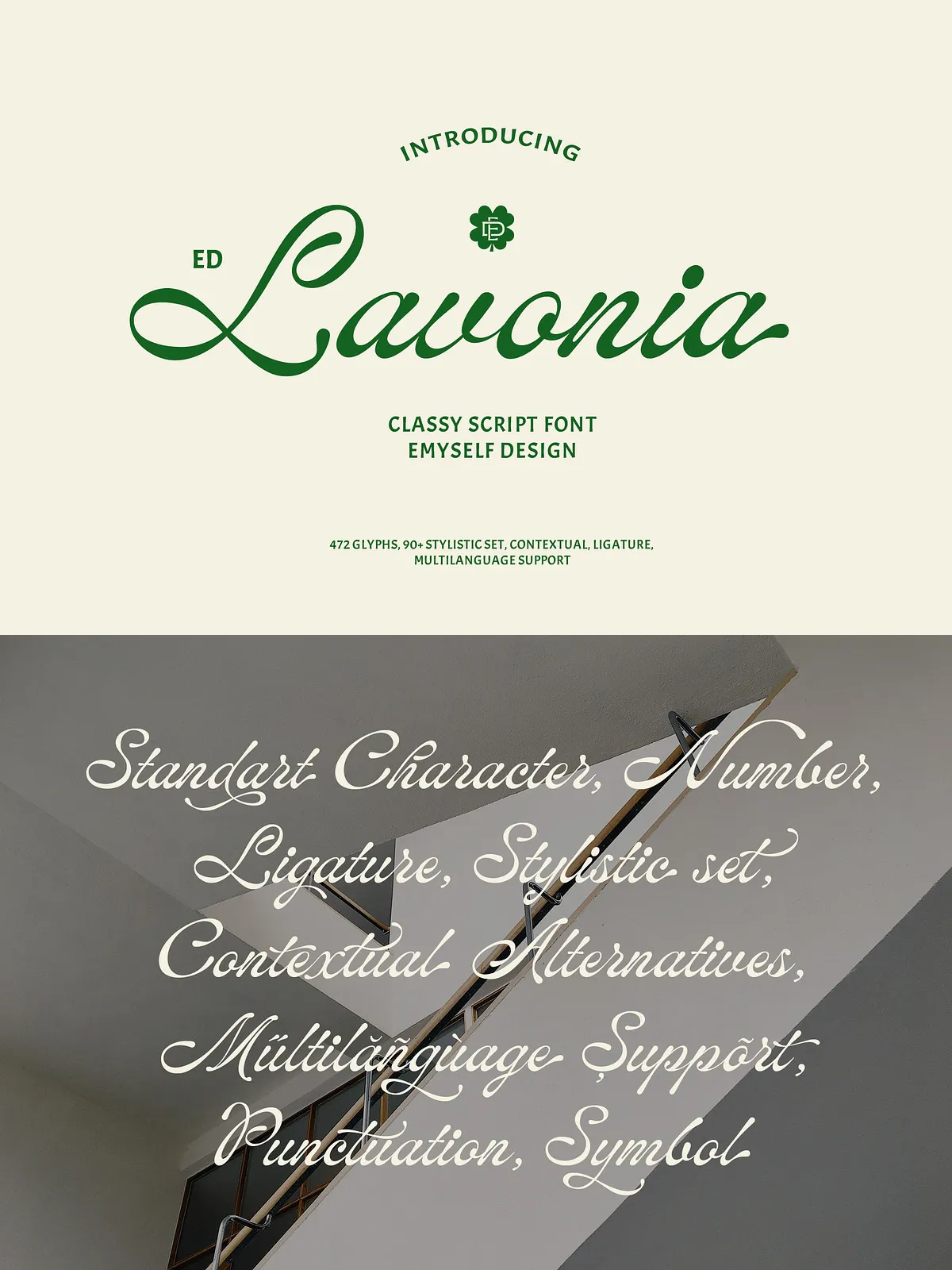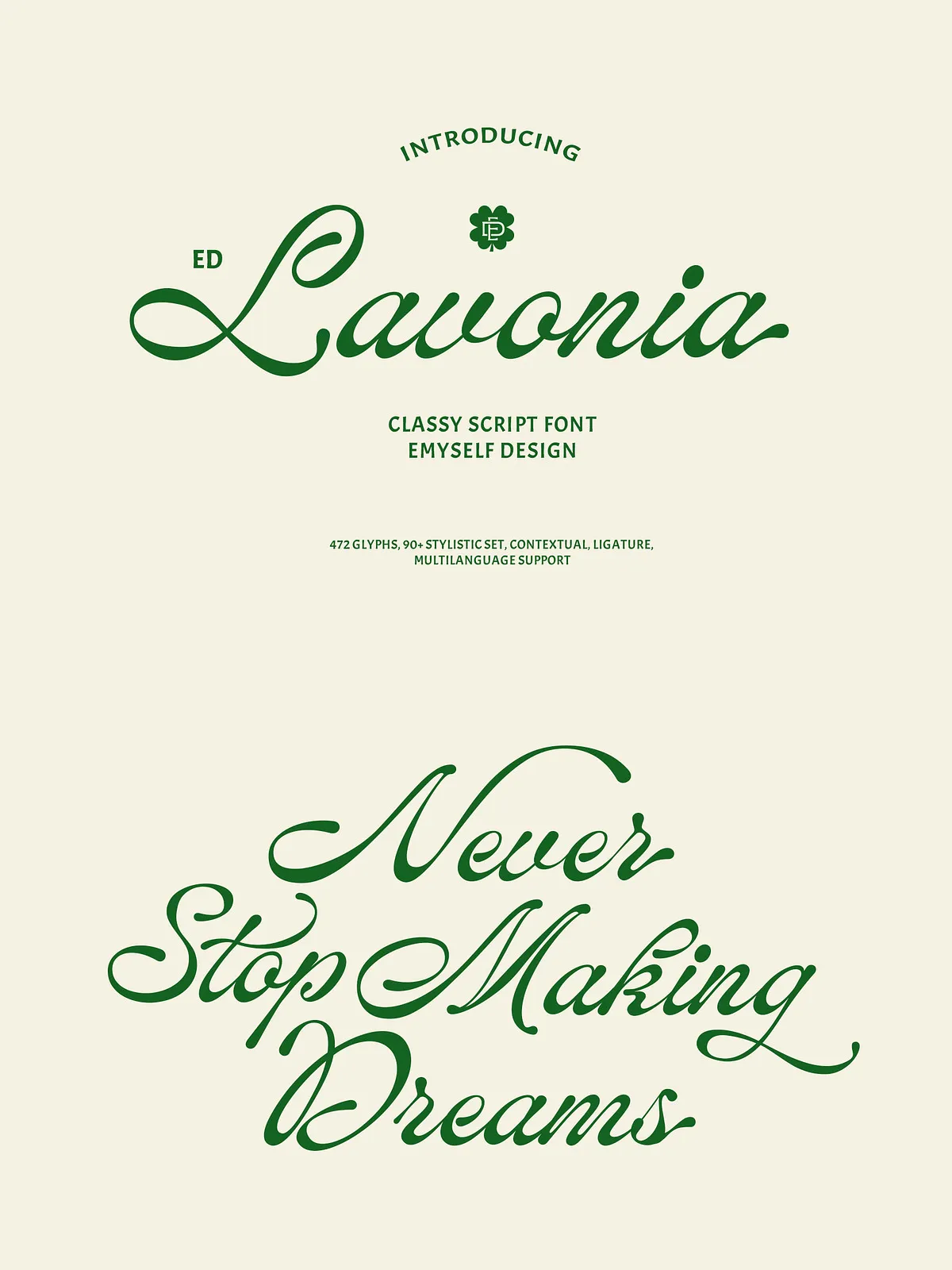 Lavonia Script is packed with dynamic typographic tools that give you creative freedom like no other script font. With over **472 unique glyphs**, you’re not limited to basic letters — you’re empowered to design with intention.