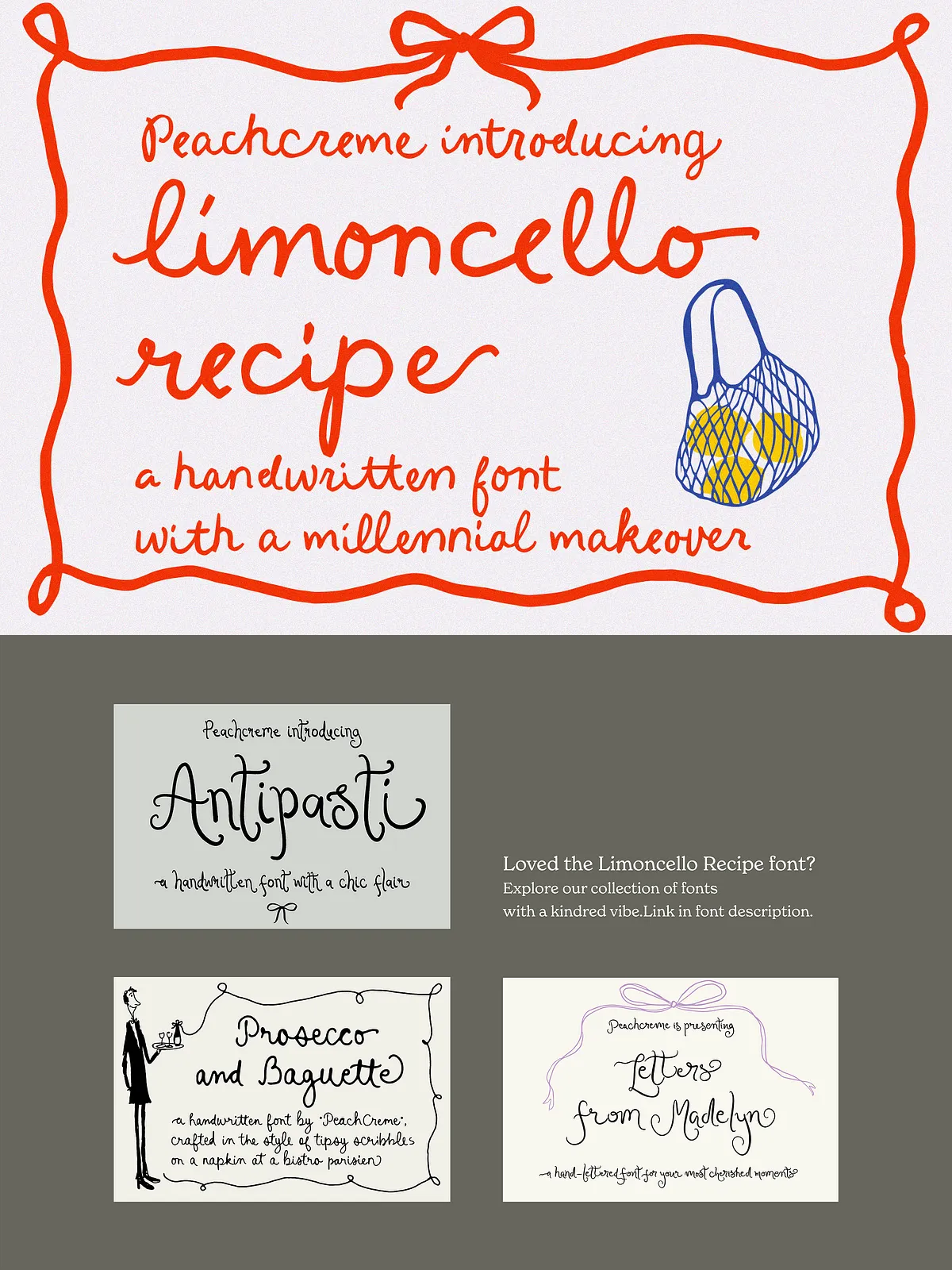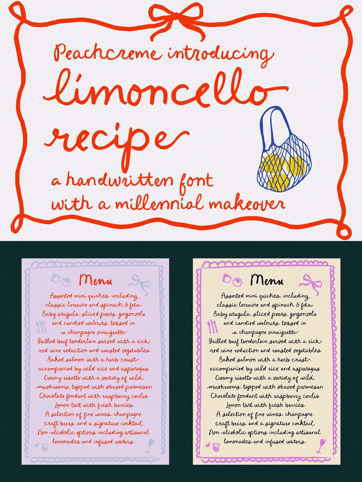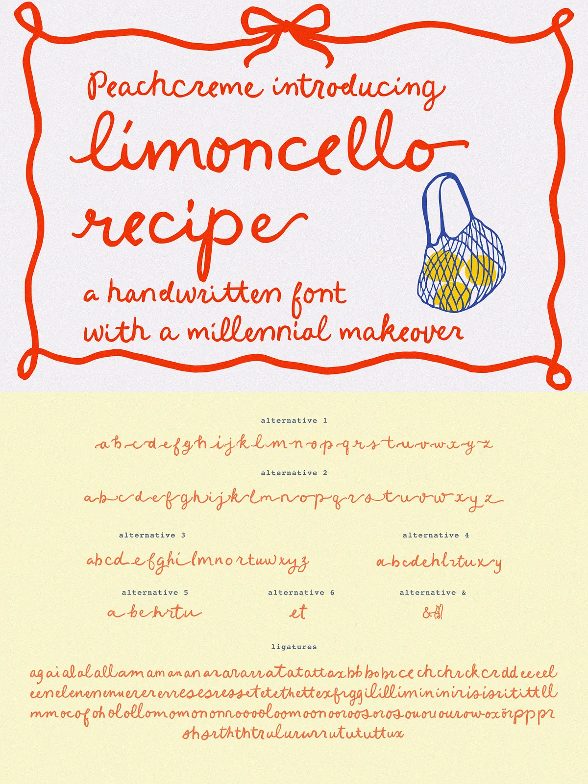 Choosing Limoncello Recipe means embracing a font that celebrates the imperfect beauty of human handwriting. Its extensive ligatures and expressive swashes provide creative flexibility, allowing you to craft designs that feel personal, warm, and inviting. This font is a perfect choice for anyone looking to add a handcrafted, whimsical touch to their projects while maintaining readability and style.