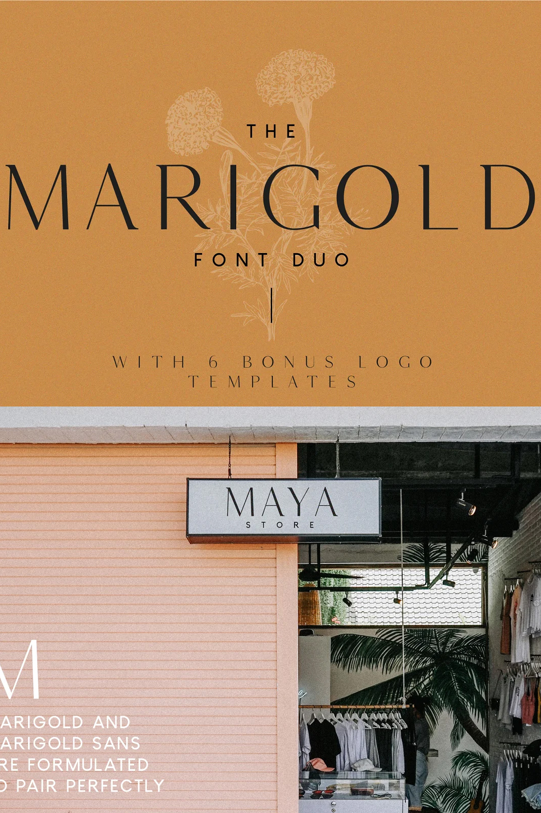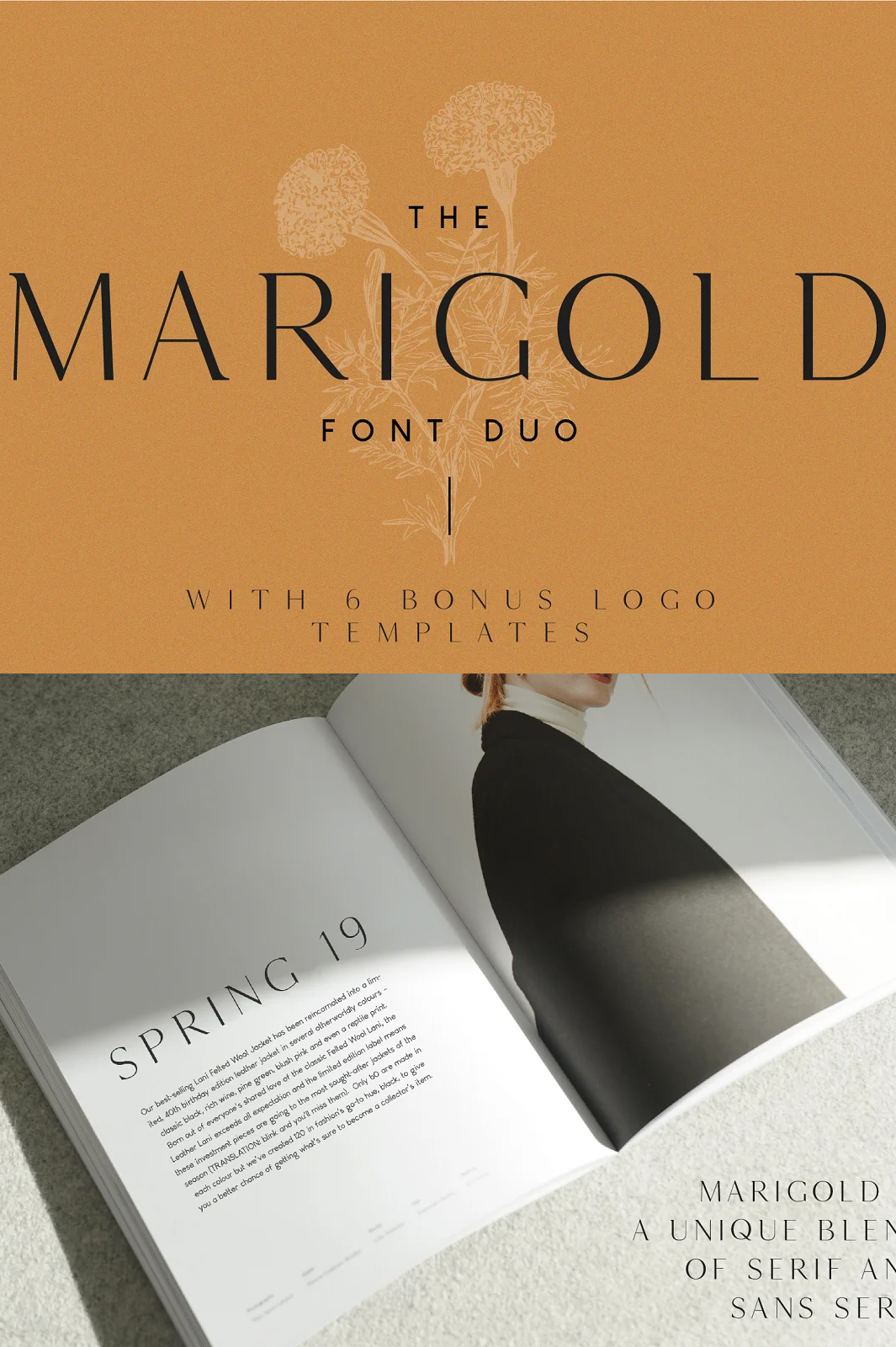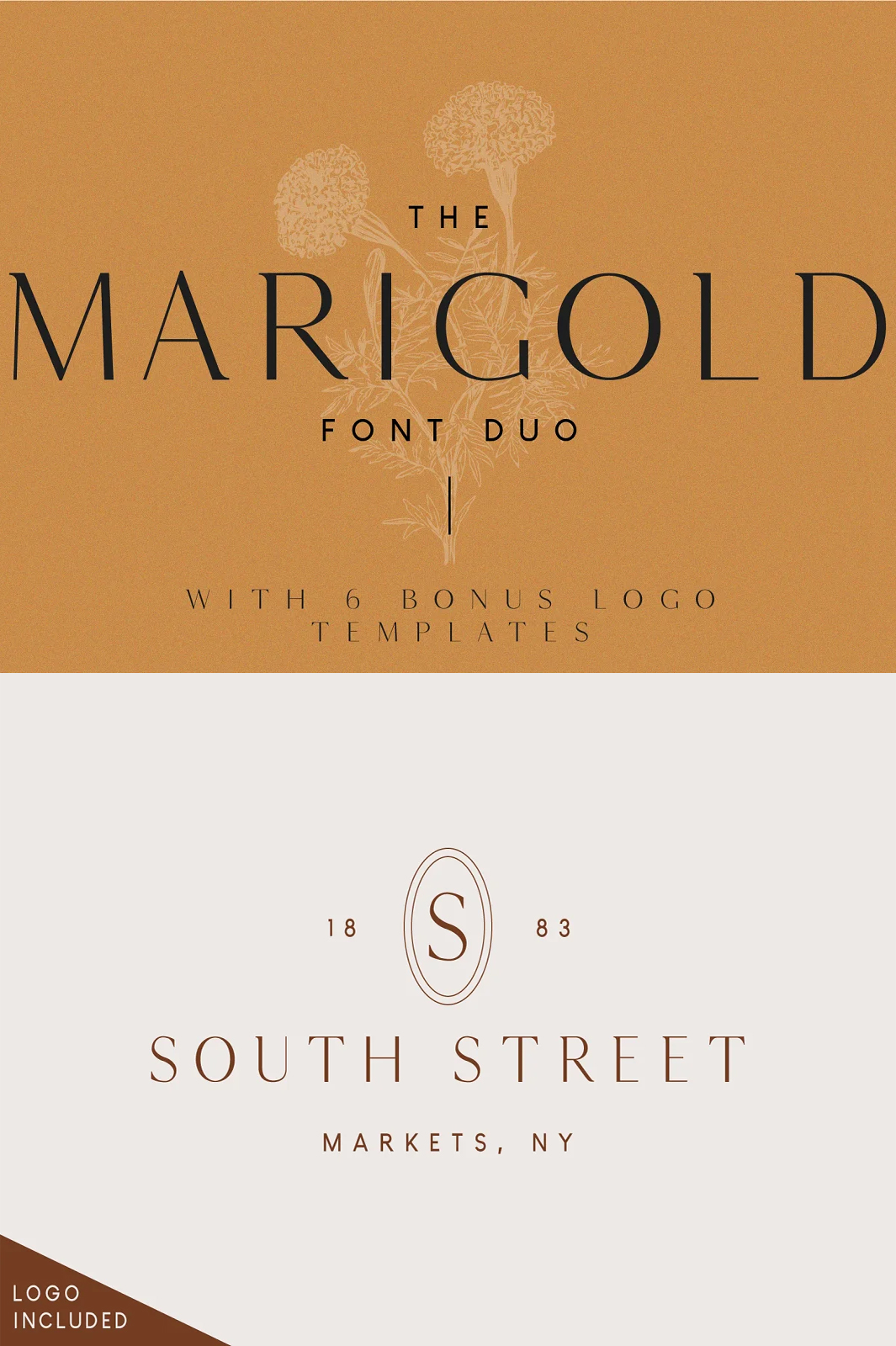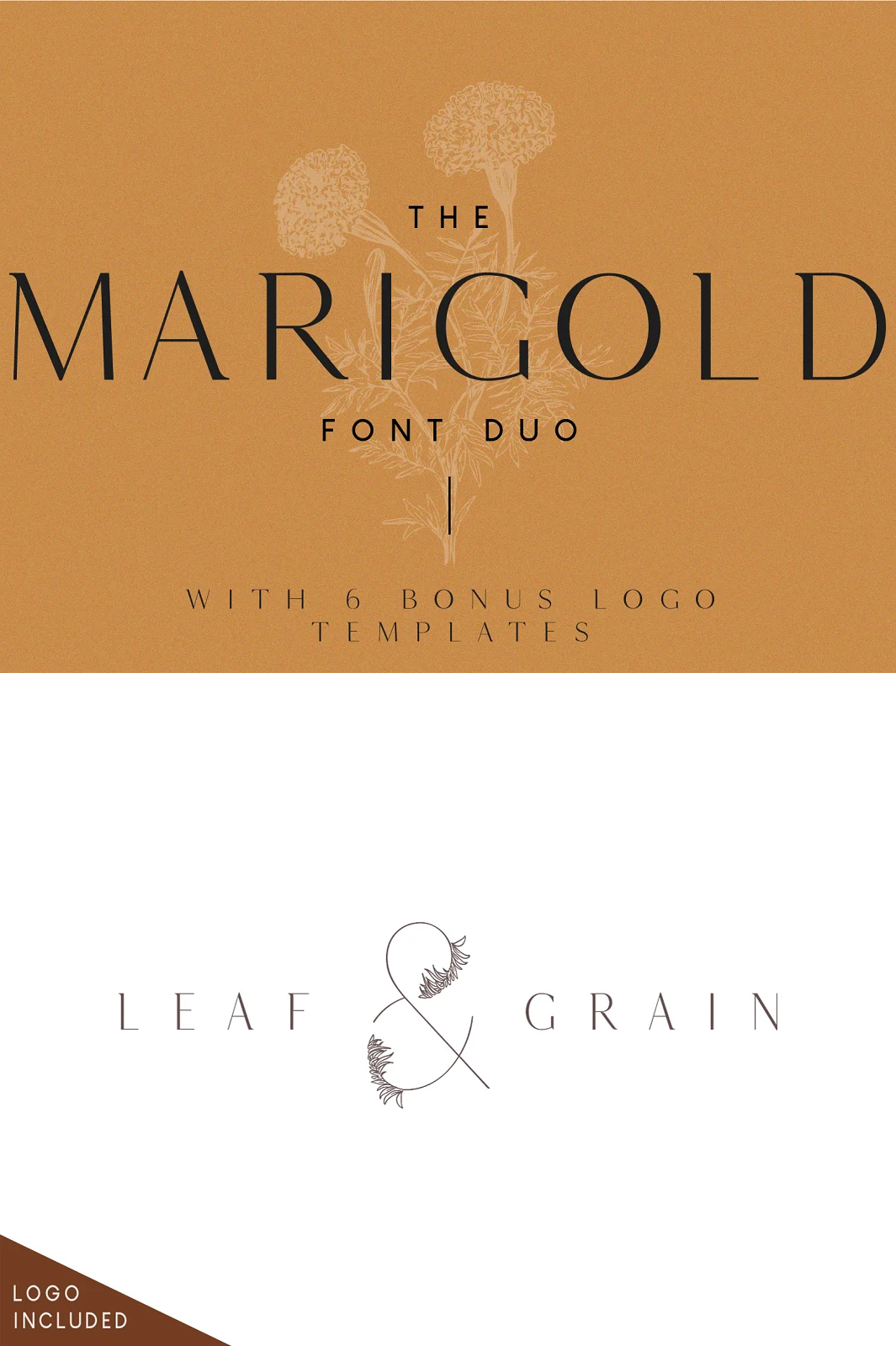Marigold is a unique font that blends serif and sans serif. It is perfectly paired with Marigold Sans, a minimal tagline and body copy font. I have added 6 bonus editable logos created around this font duo.