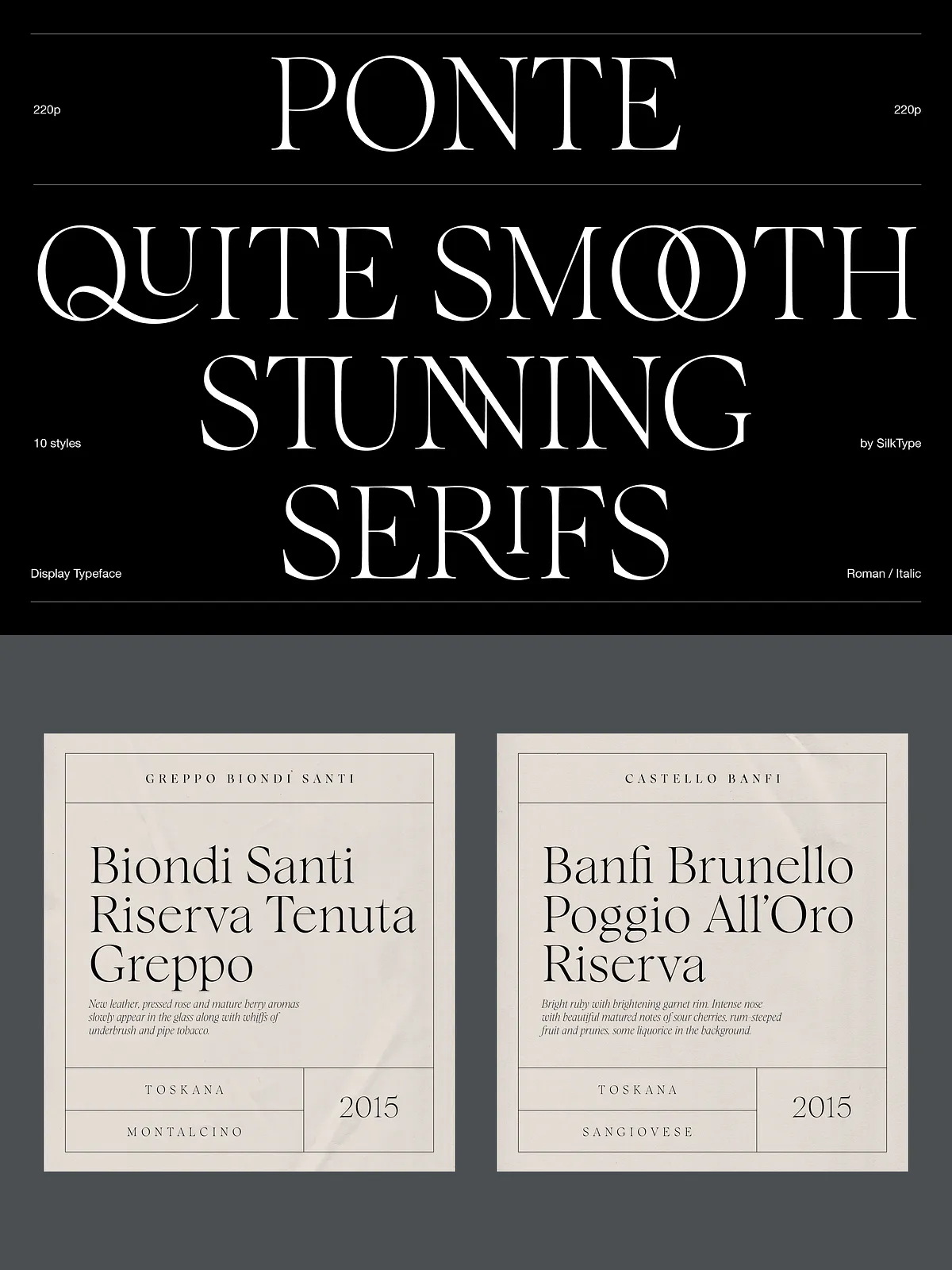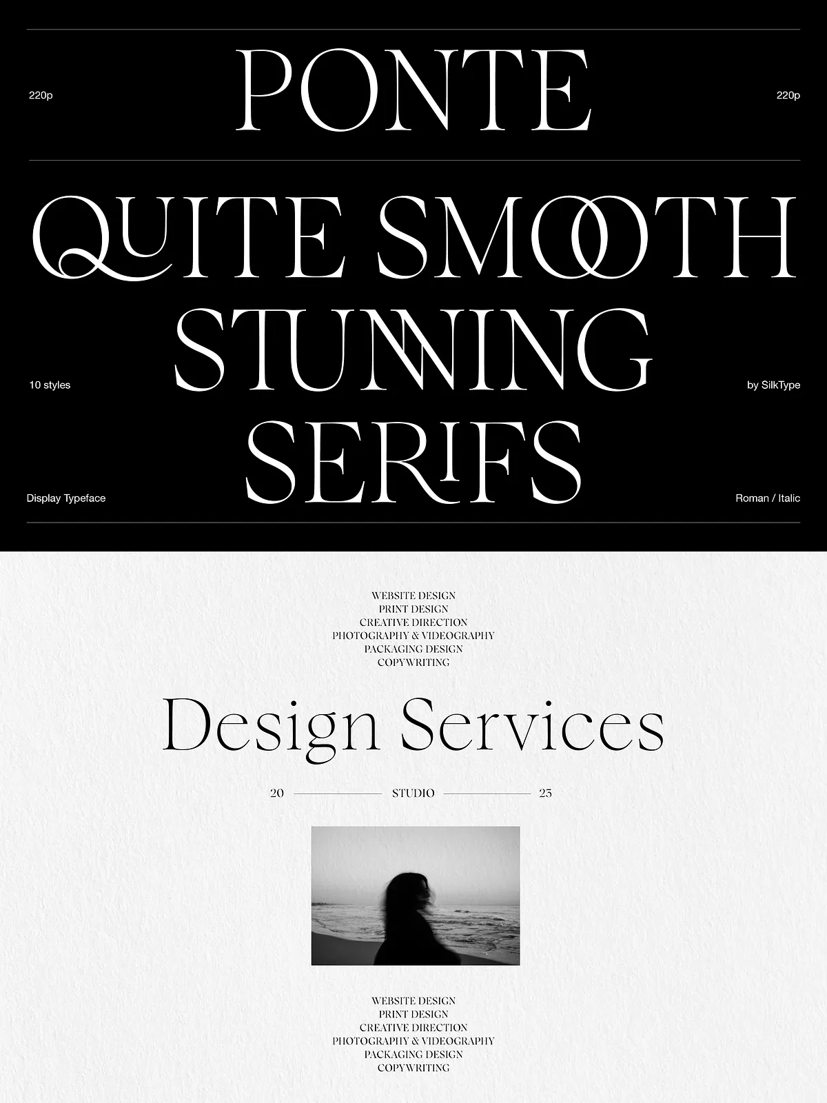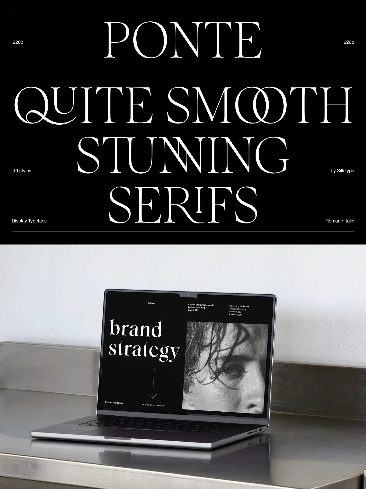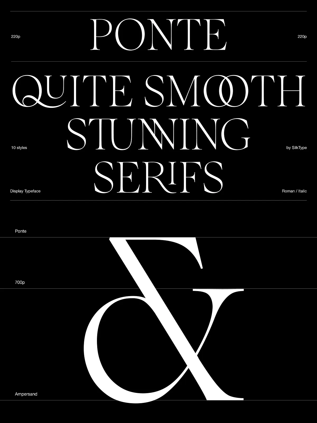 Thanks to the interplay of sharp contrast and smooth serifs, Ponte excels in professional, high-impact design scenarios where personality and clarity are non-negotiable.