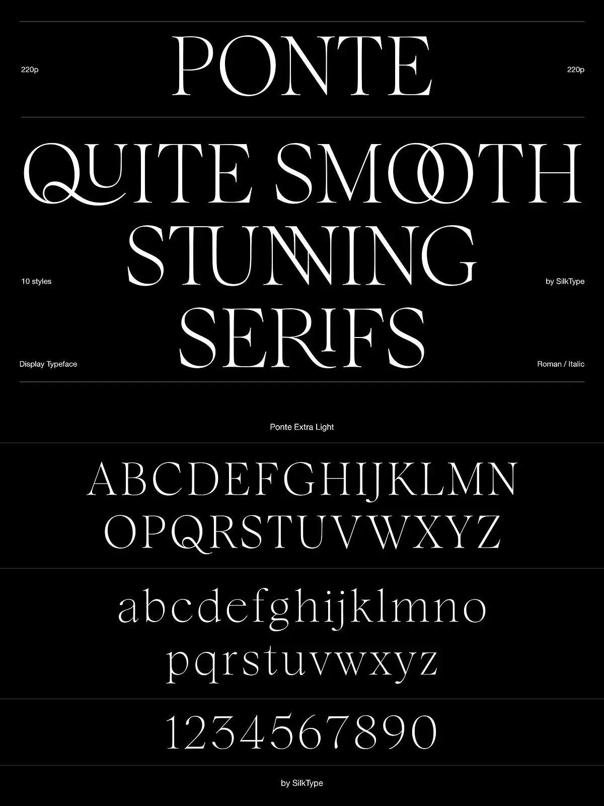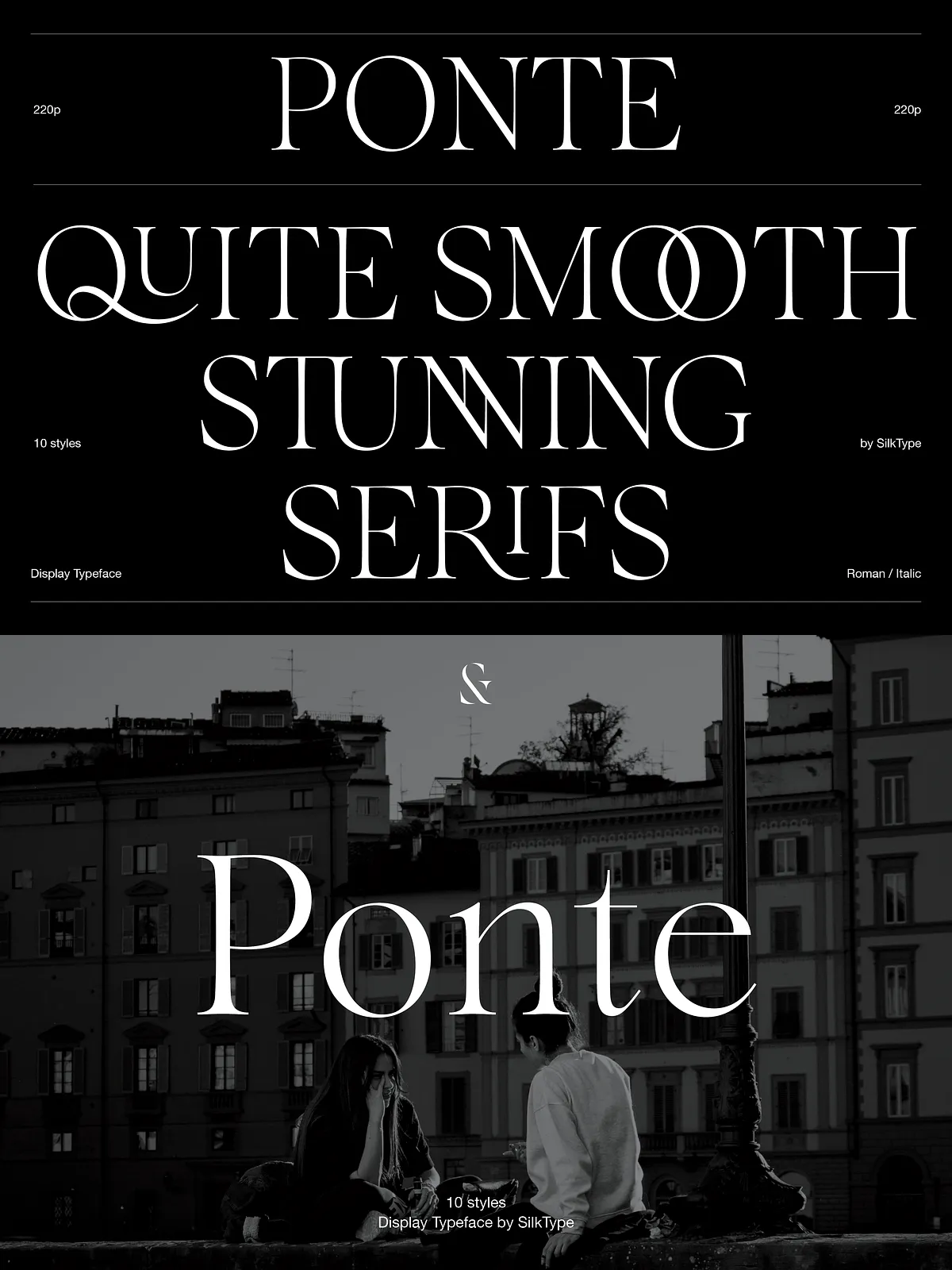 - Ponte features an extensive library of over 80 decorative ligatures, designed to transform basic text into custom, hand-crafted typography.