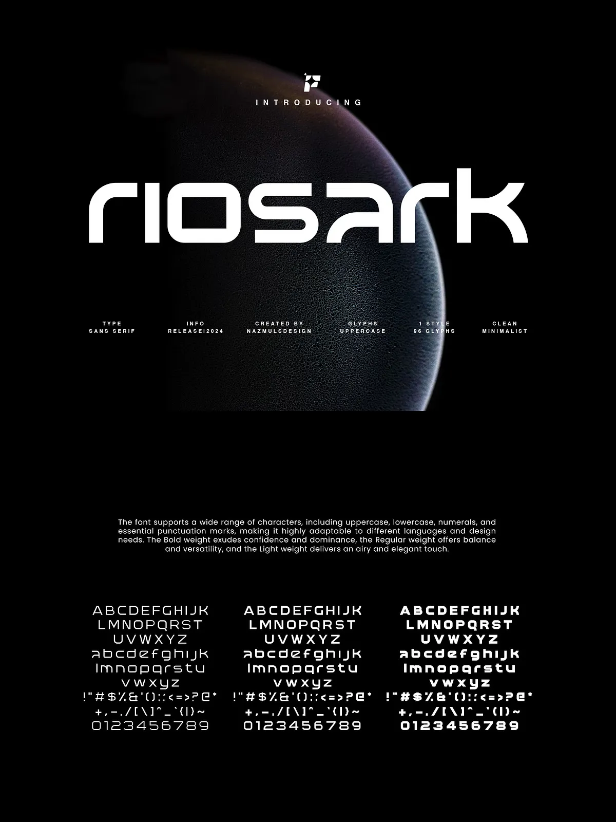 RIOSARK wasn’t just visually designed—it was functionally optimized. The typeface features: