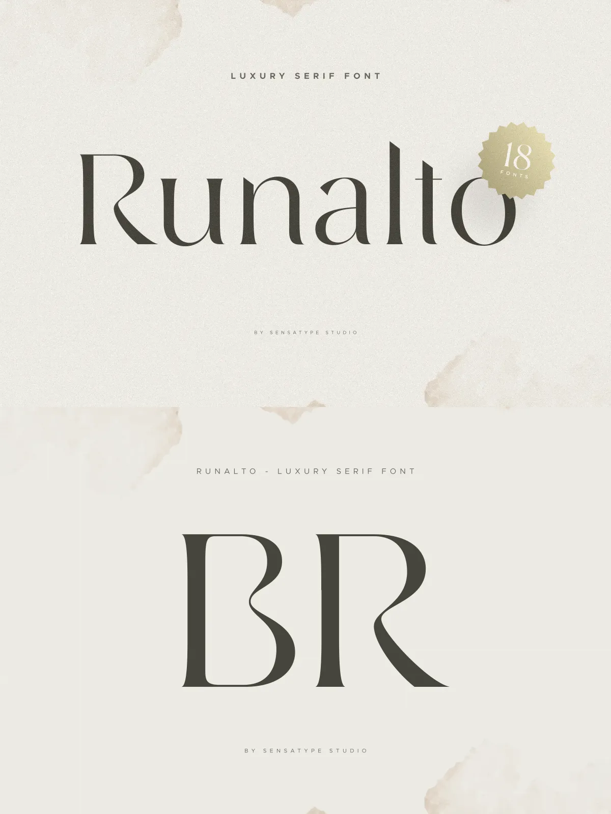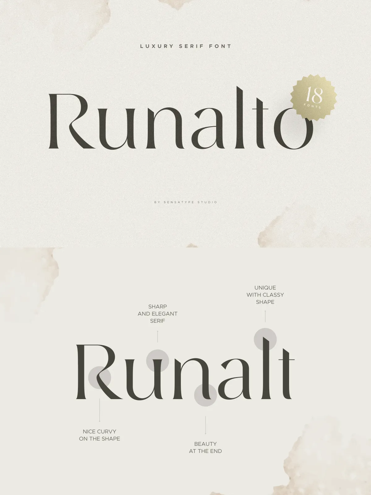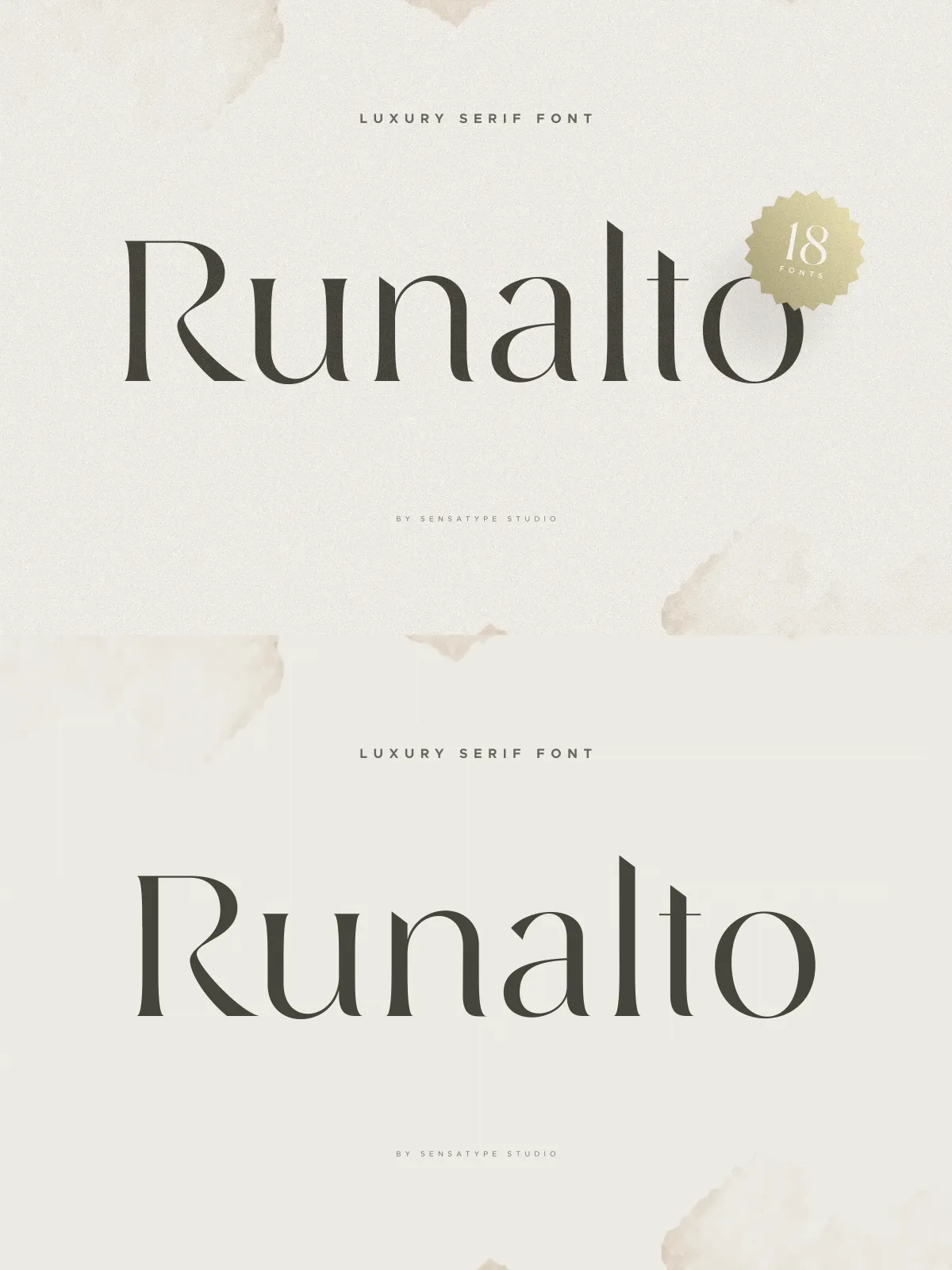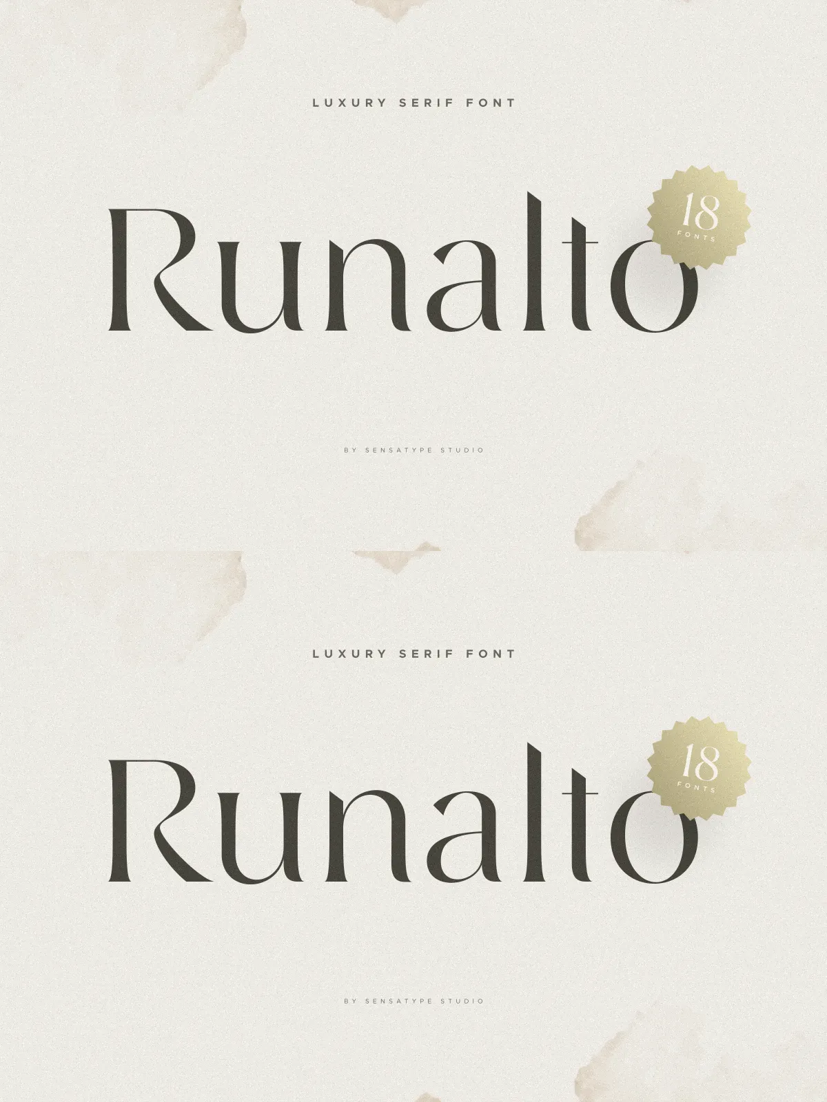Runalto is a meticulously crafted display serif font that embodies luxury, elegance, and modernity. Designed to stand out with its unique and classy appearance, Runalto is the perfect typographic choice for projects that demand a sophisticated and upscale aesthetic. Whether you are working on magazine layouts, social media graphics, branding, logos, or any creative endeavor that requires a touch of luxury, Runalto delivers a refined and polished look that elevates your design.