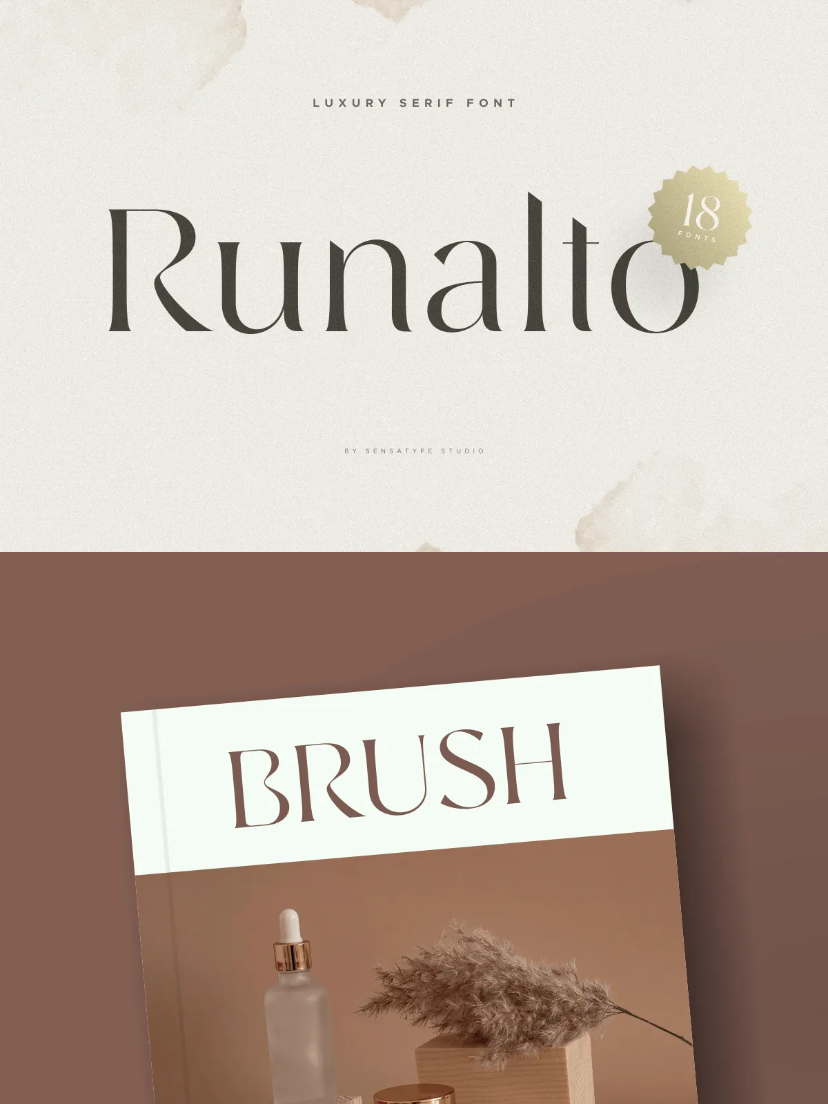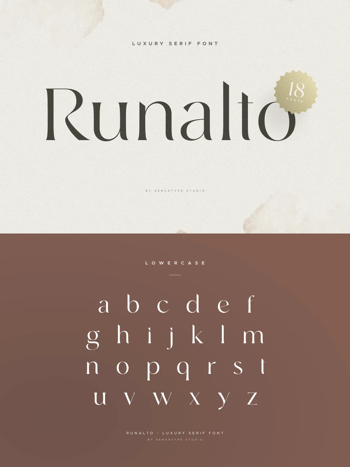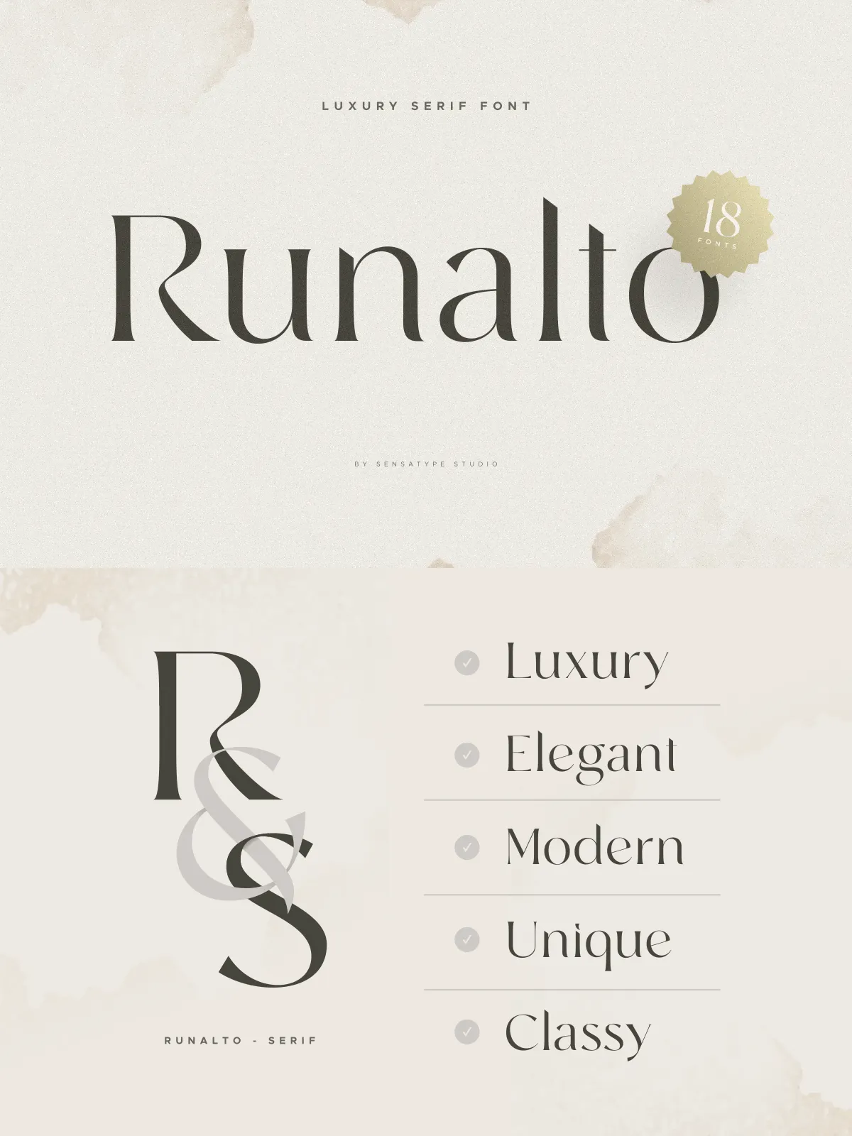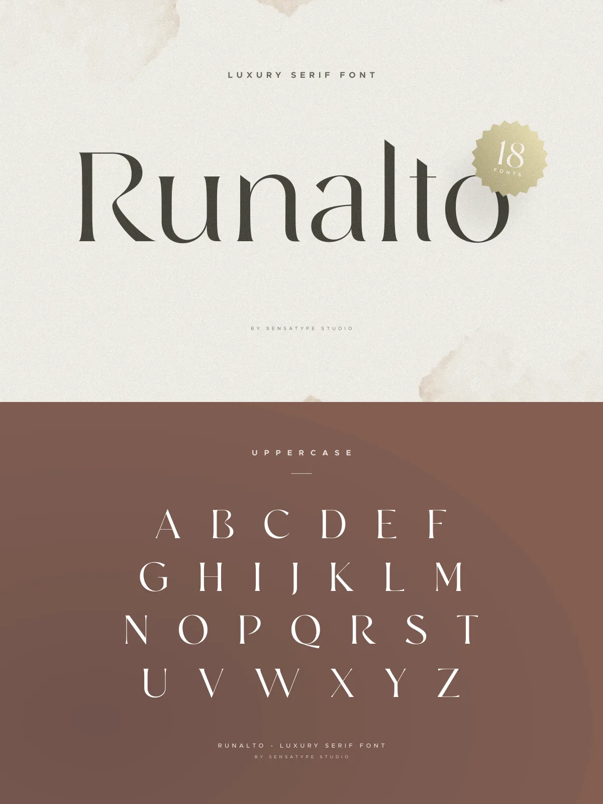 Runalto is a meticulously crafted display serif font that embodies luxury, elegance, and modernity. Designed to stand out with its unique and classy appearance, Runalto is the perfect typographic choice for projects that demand a sophisticated and upscale aesthetic. Whether you are working on magazine layouts, social media graphics, branding, logos, or any creative endeavor that requires a touch of luxury, Runalto delivers a refined and polished look that elevates your design.