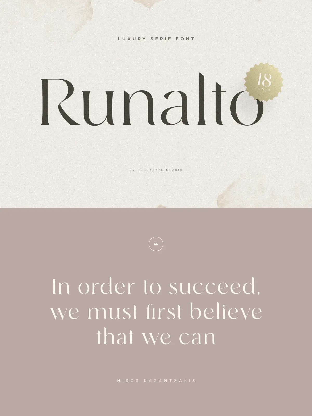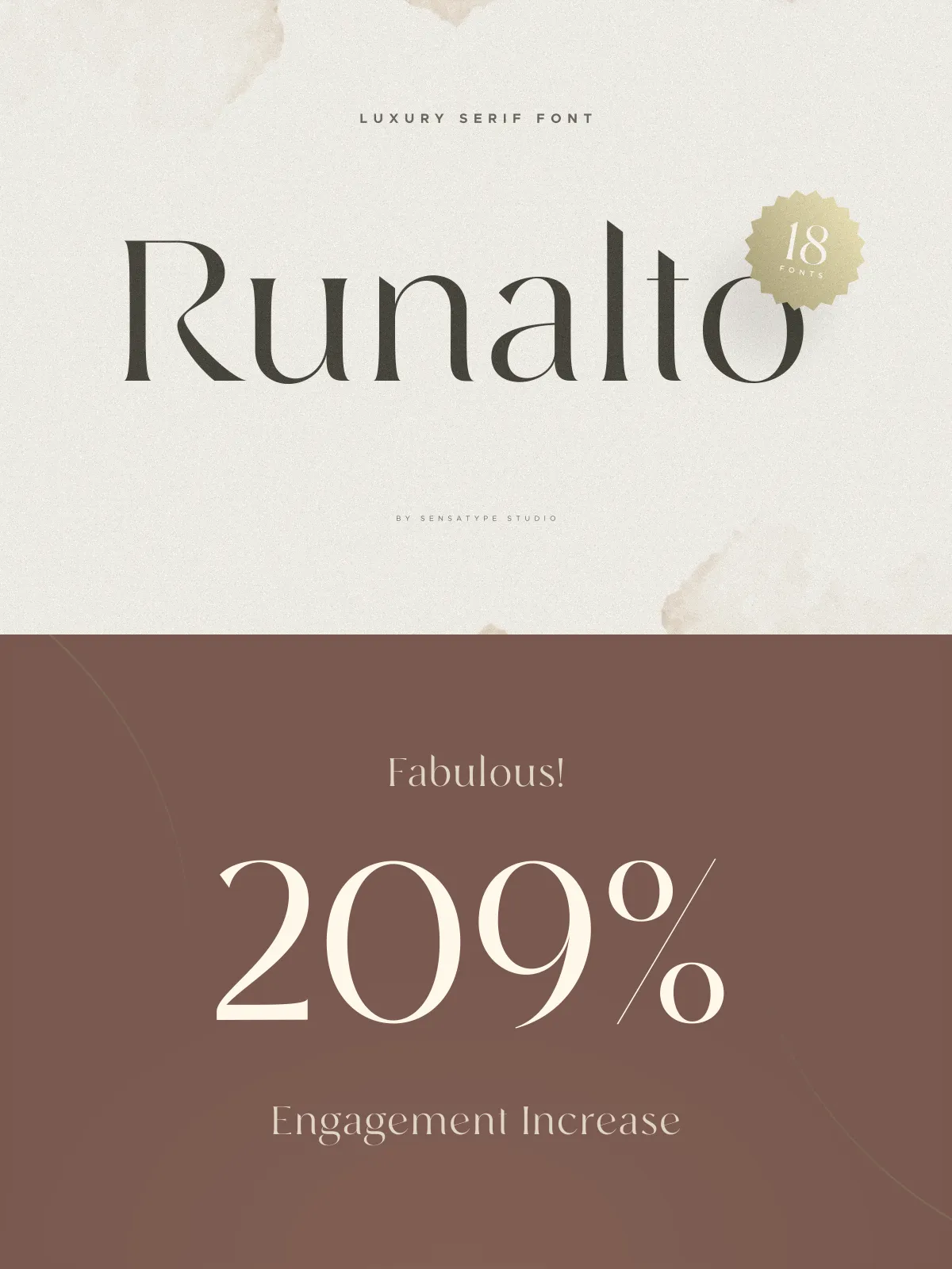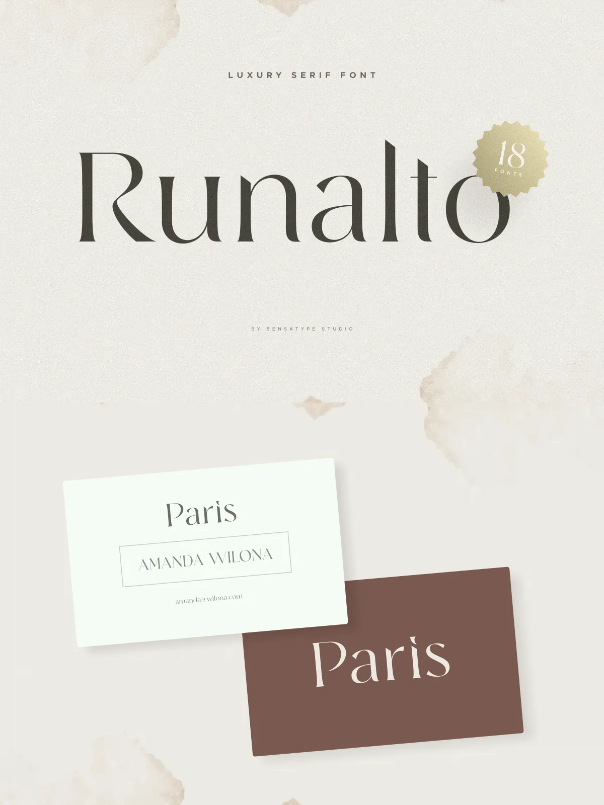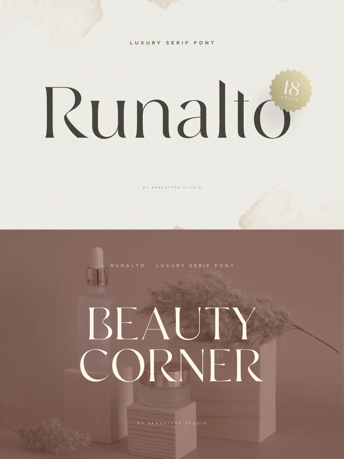 Runalto is a meticulously crafted display serif font that embodies luxury, elegance, and modernity. Designed to stand out with its unique and classy appearance, Runalto is the perfect typographic choice for projects that demand a sophisticated and upscale aesthetic. Whether you are working on magazine layouts, social media graphics, branding, logos, or any creative endeavor that requires a touch of luxury, Runalto delivers a refined and polished look that elevates your design.