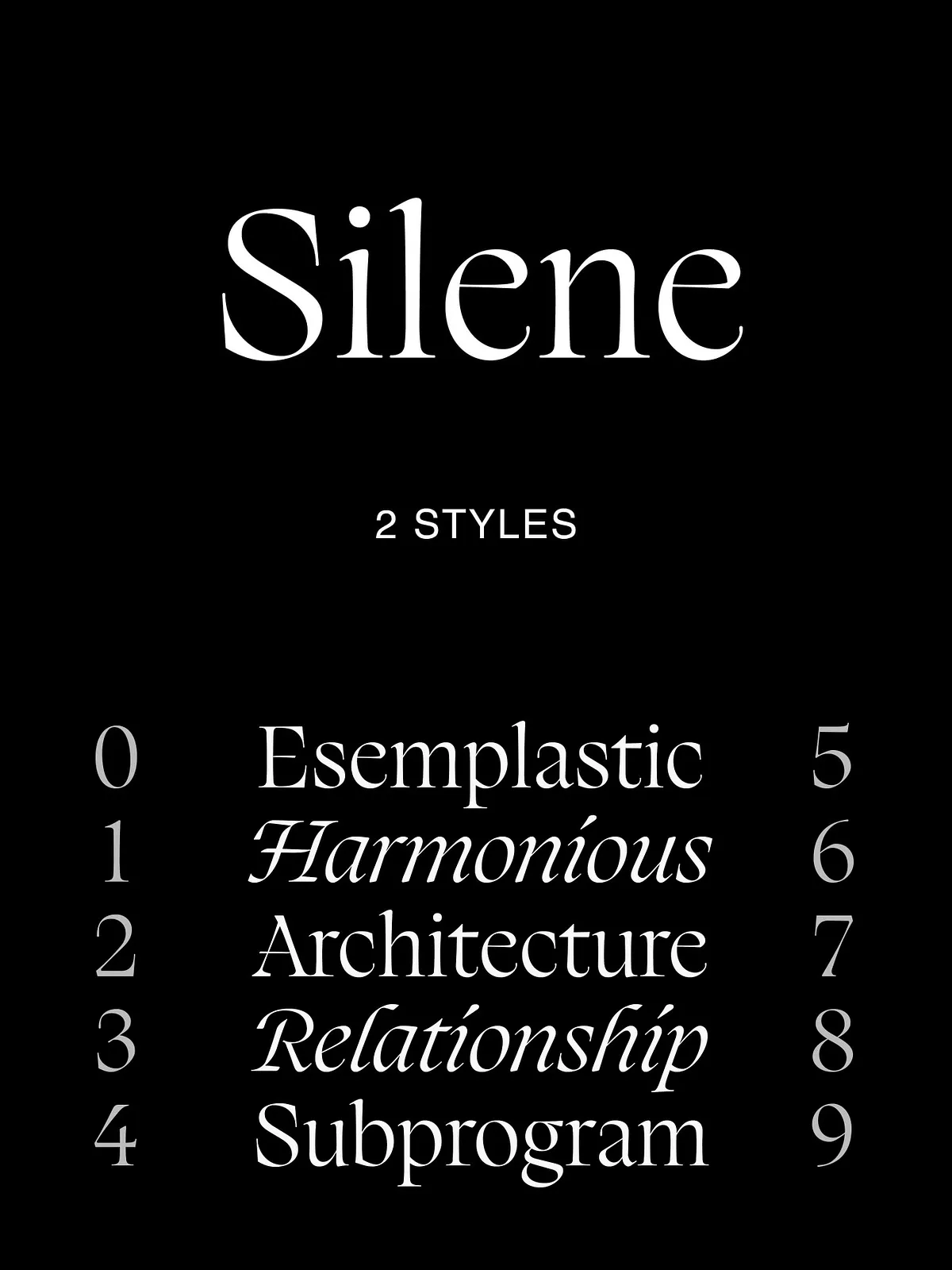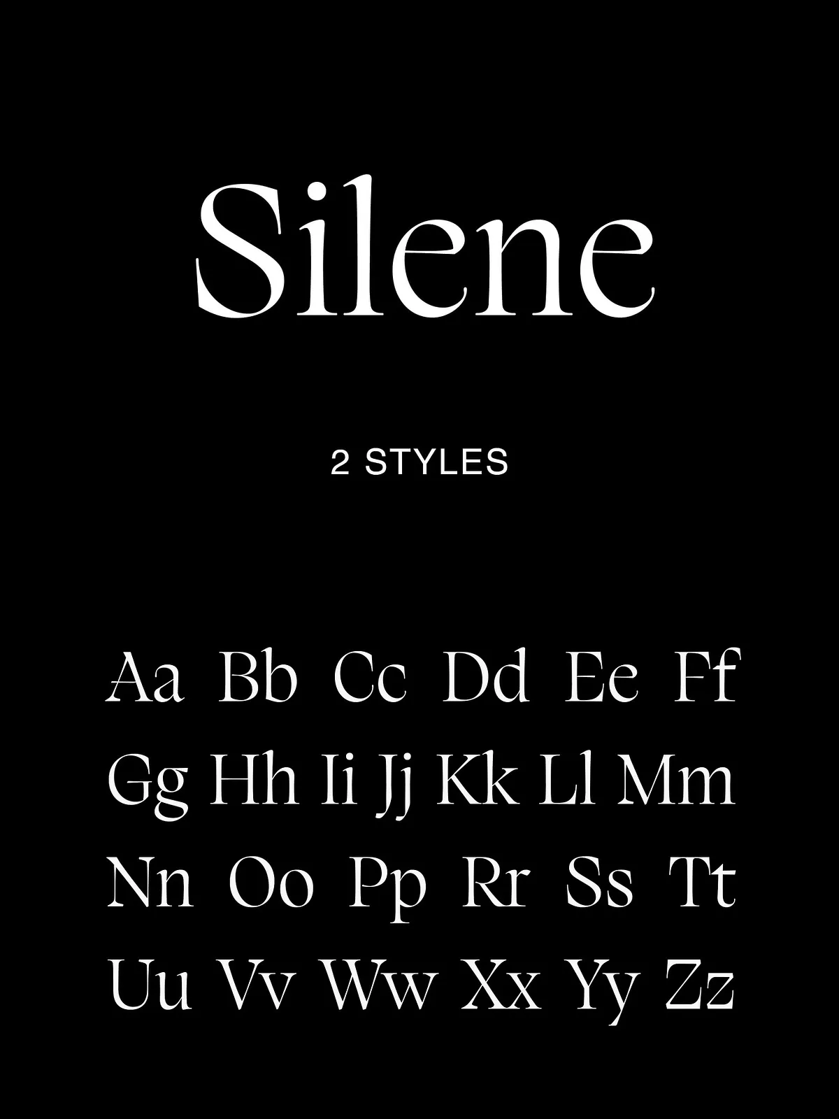Transform your creative projects with Silene, a refined and expressive serif typeface that captures the grace of 20th-century calligraphy and the precision of transitional design. With its commanding presence, delicate details, and modern proportions, Silene delivers timeless elegance for branding, editorial design, packaging, and visual storytelling.