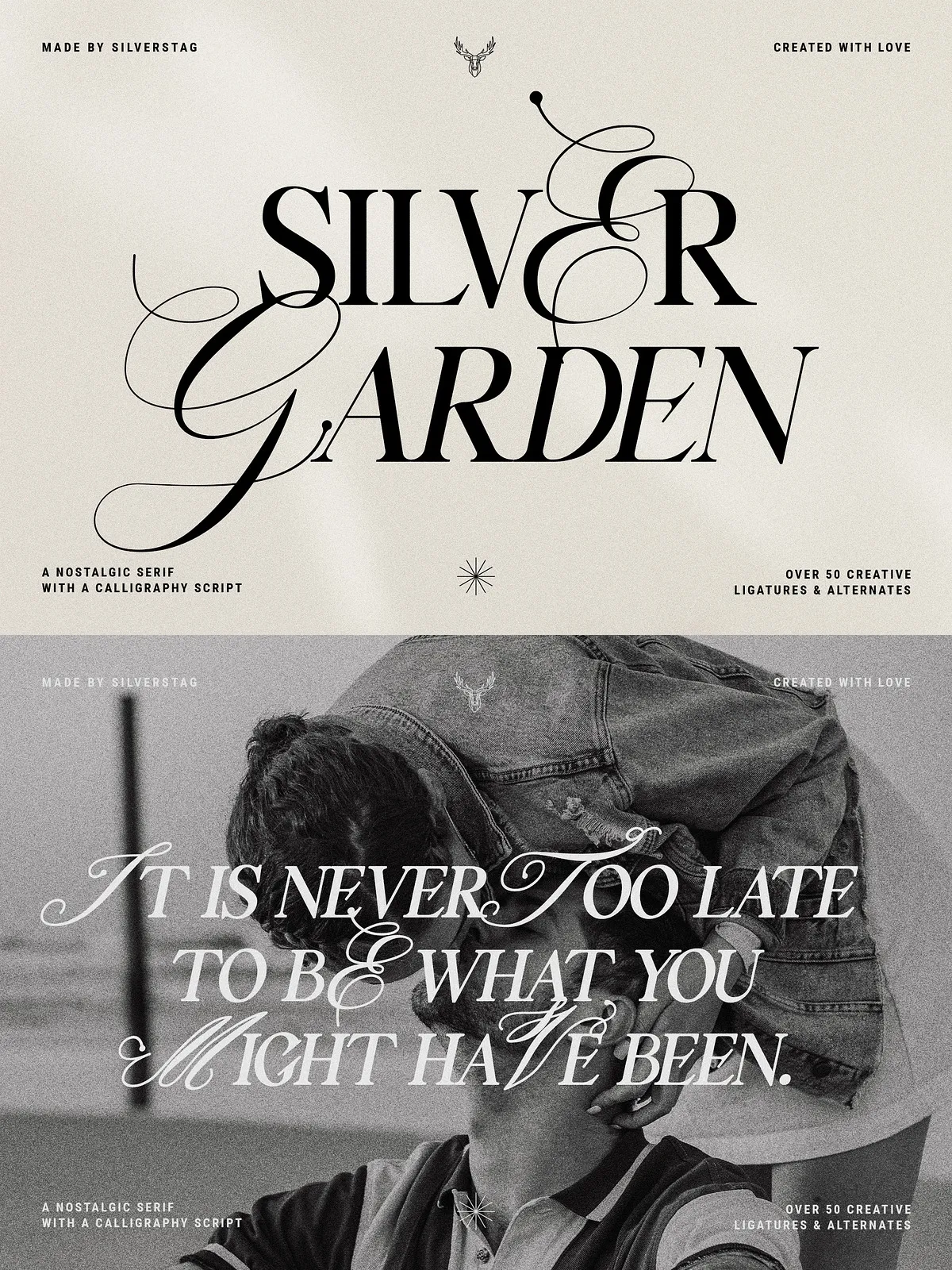 Silver Garden wasn’t created just to be used—it was created to be felt. Every curve, every ligature, every alternate letter reflects a vision of design that celebrates the past while embracing the future. It’s not just a tool. It’s a companion for creative minds who believe that type has meaning.