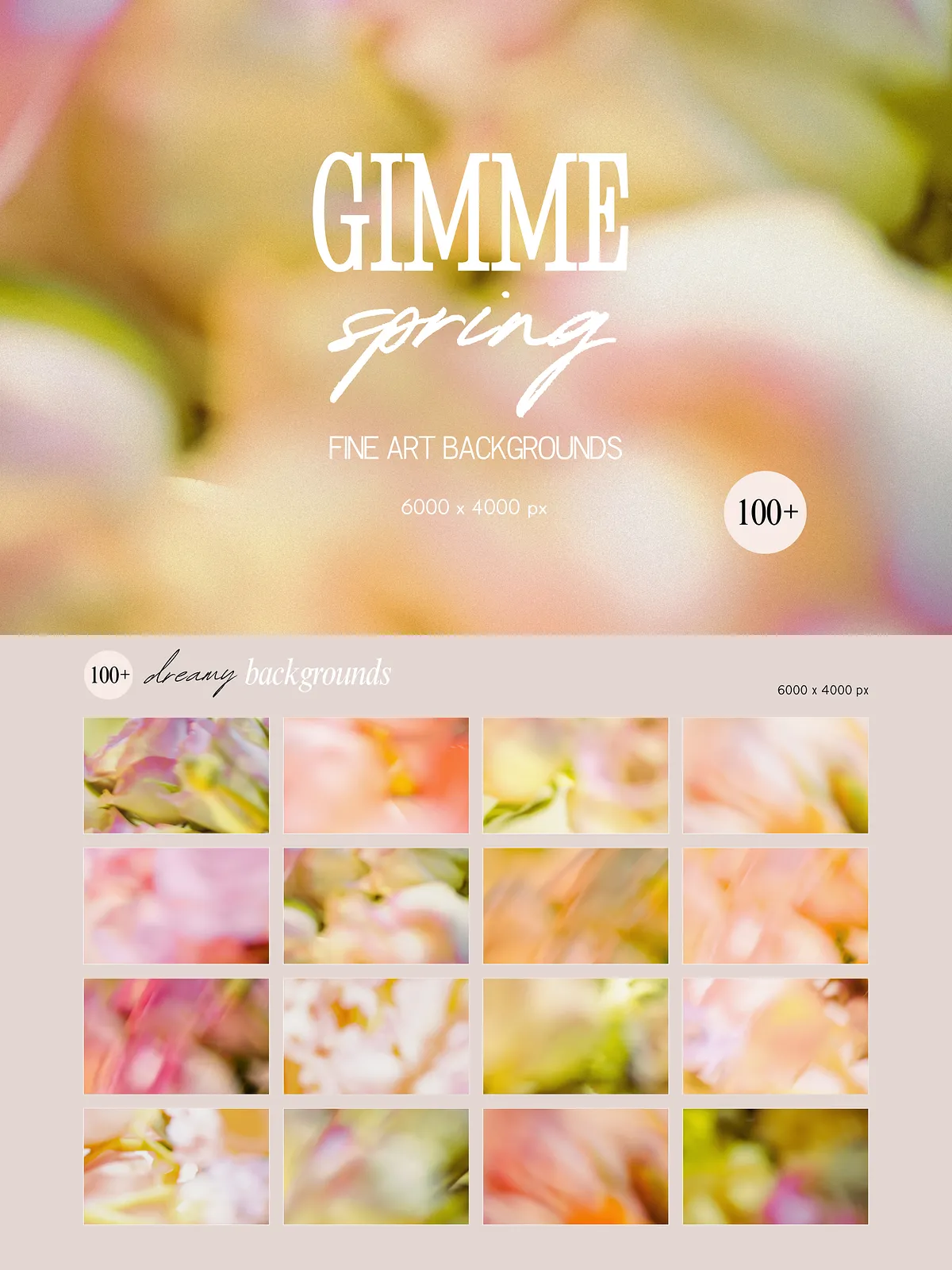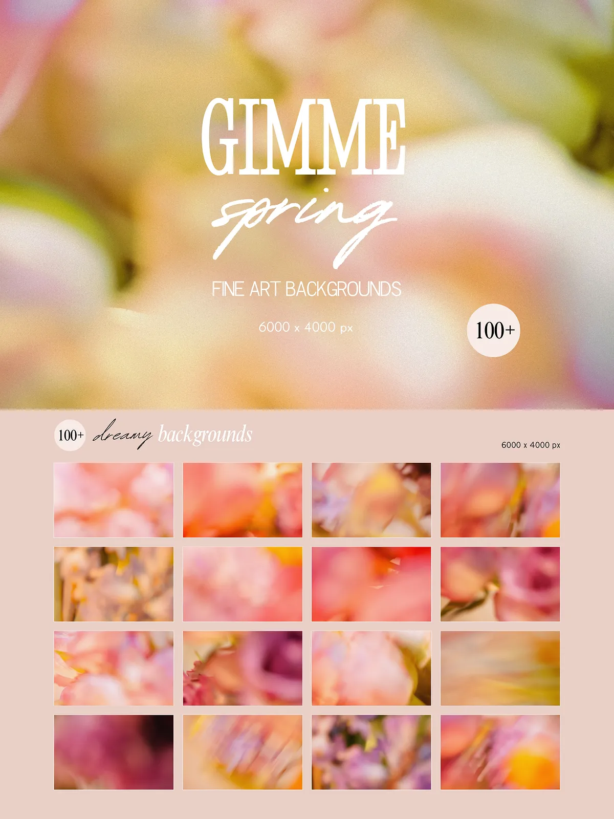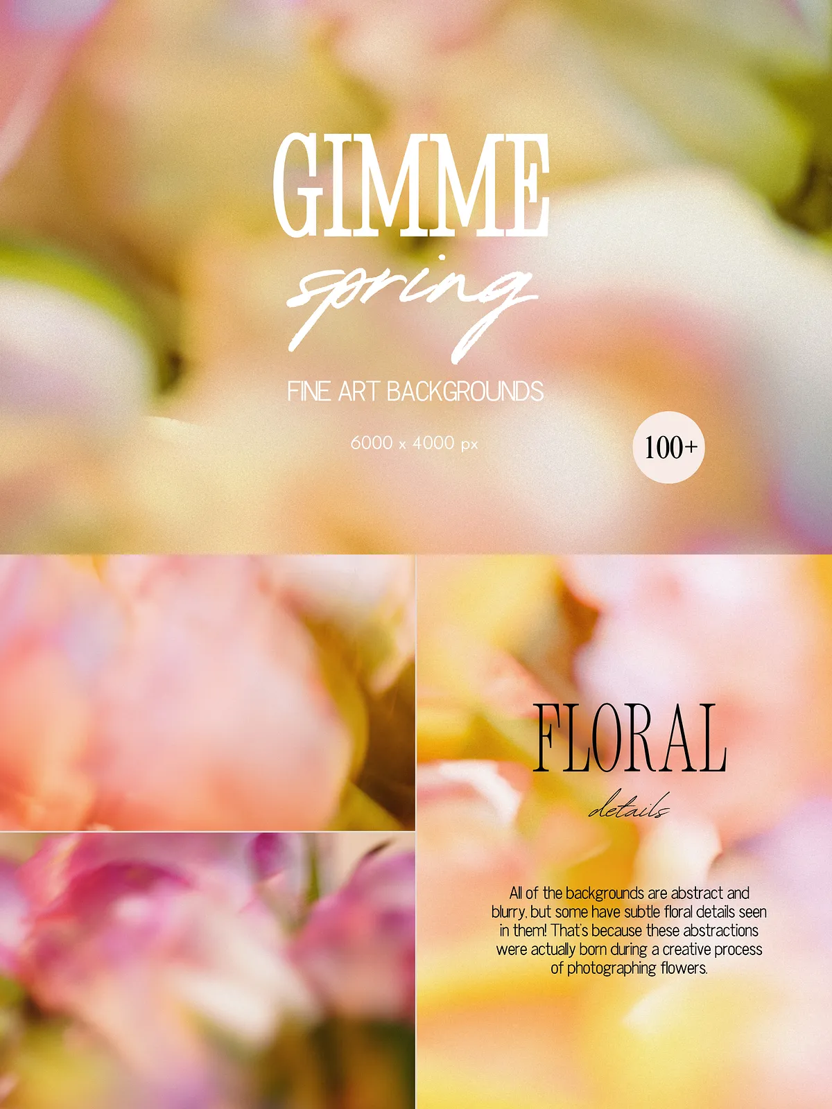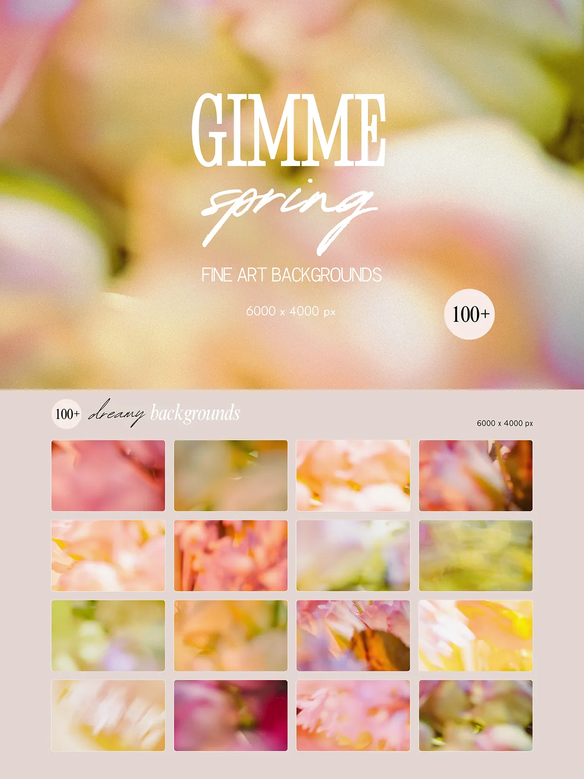 Let the gentle whisper of blossoms and dappled sunlight inspire your next creative masterpiece with **Gimme Spring: Blurred Dreamy Gradient Backgrounds** — a thoughtfully crafted collection of 49 high-resolution, naturally inspired backgrounds. Born from real flower photography and a heartfelt creative journey, these textures blend soft blur, rich color transitions, and subtle organic details like delicate petal edges and faint pollen streaks. The result? Backgrounds that feel alive — not flat, not digital cliché, but deeply expressive pieces that evoke calm, romance, and renewal.