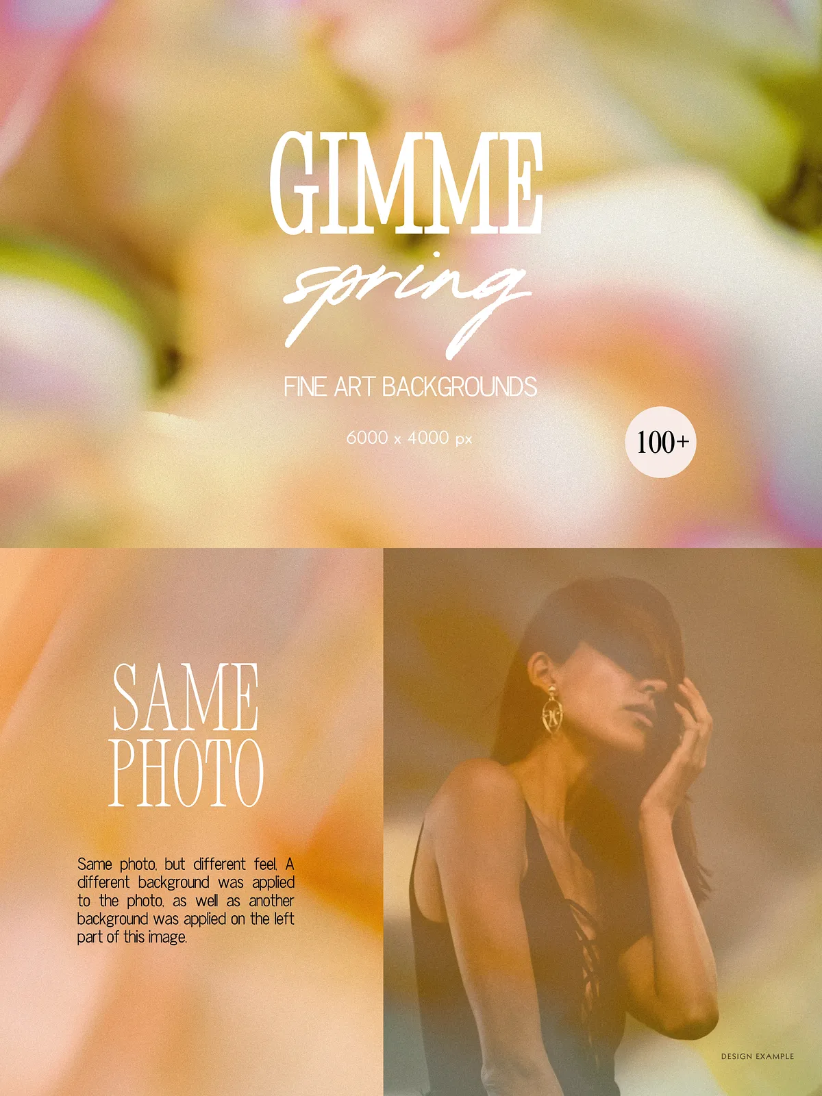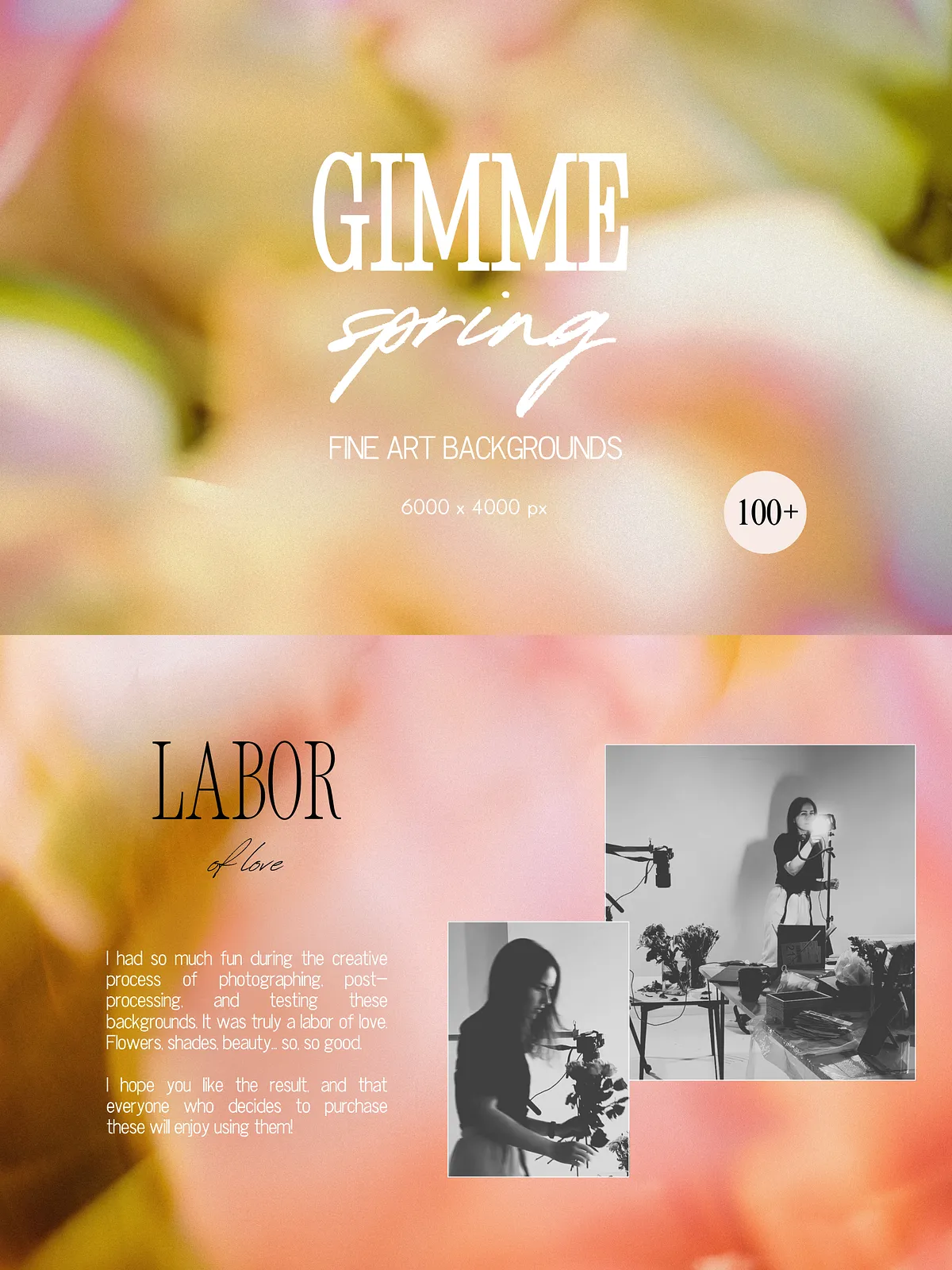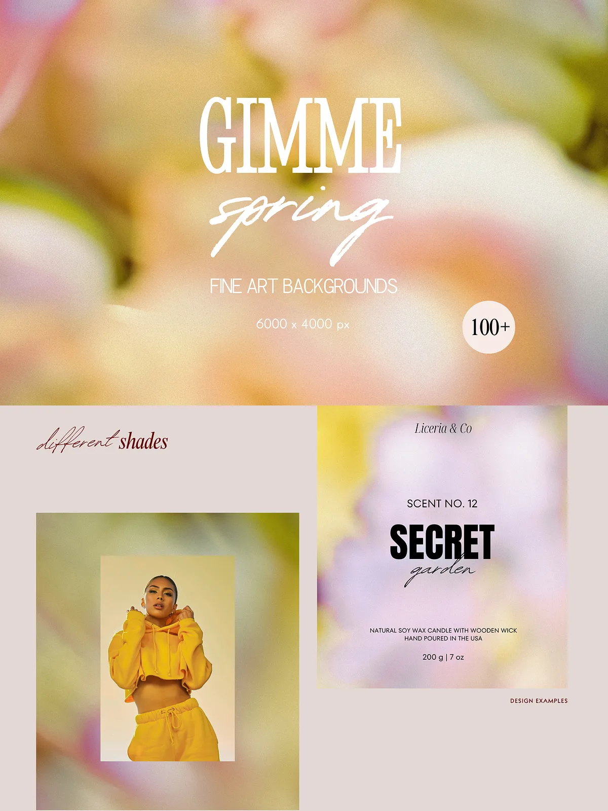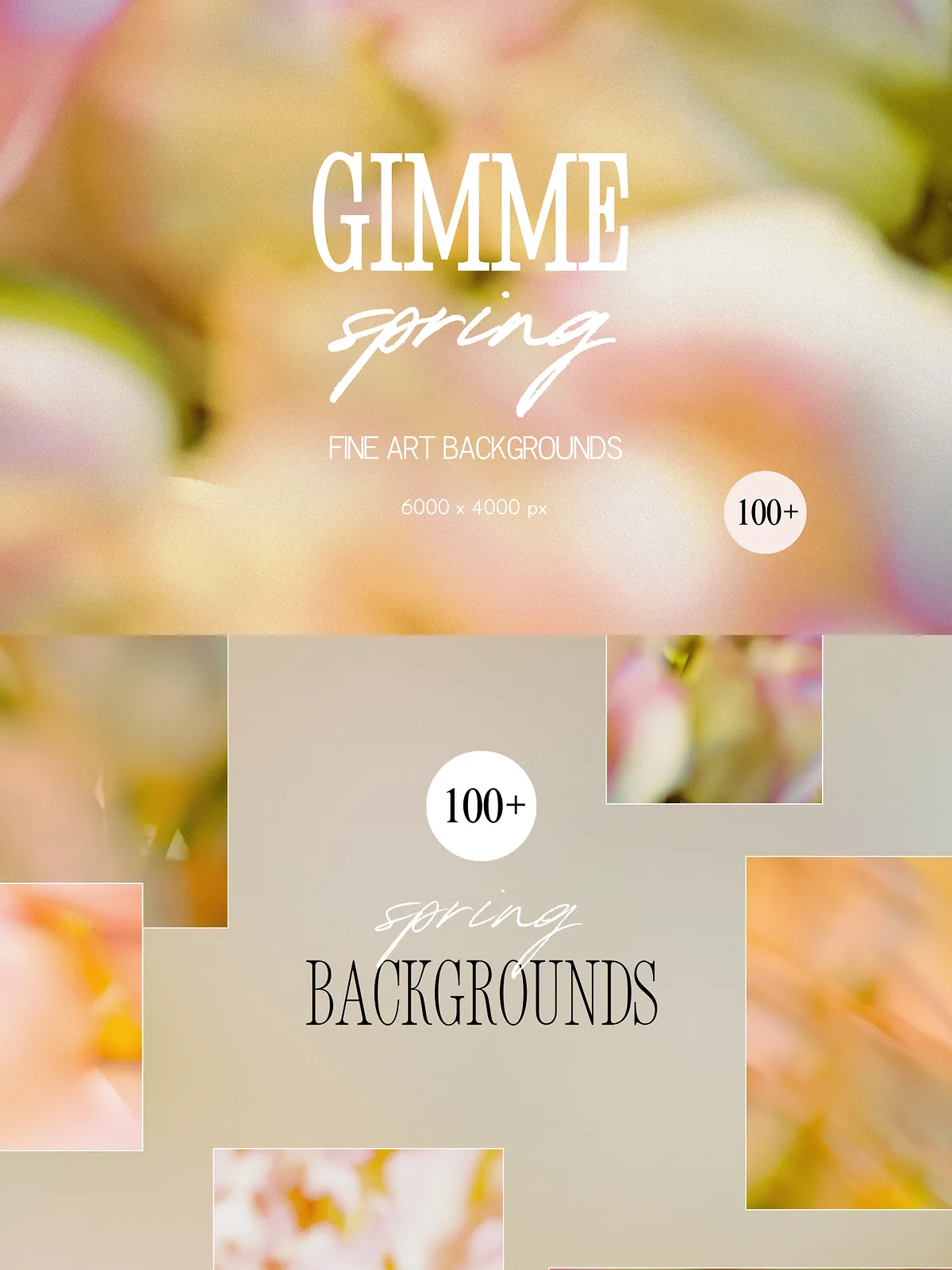 Let the gentle whisper of blossoms and dappled sunlight inspire your next creative masterpiece with **Gimme Spring: Blurred Dreamy Gradient Backgrounds** — a thoughtfully crafted collection of 49 high-resolution, naturally inspired backgrounds. Born from real flower photography and a heartfelt creative journey, these textures blend soft blur, rich color transitions, and subtle organic details like delicate petal edges and faint pollen streaks. The result? Backgrounds that feel alive — not flat, not digital cliché, but deeply expressive pieces that evoke calm, romance, and renewal.