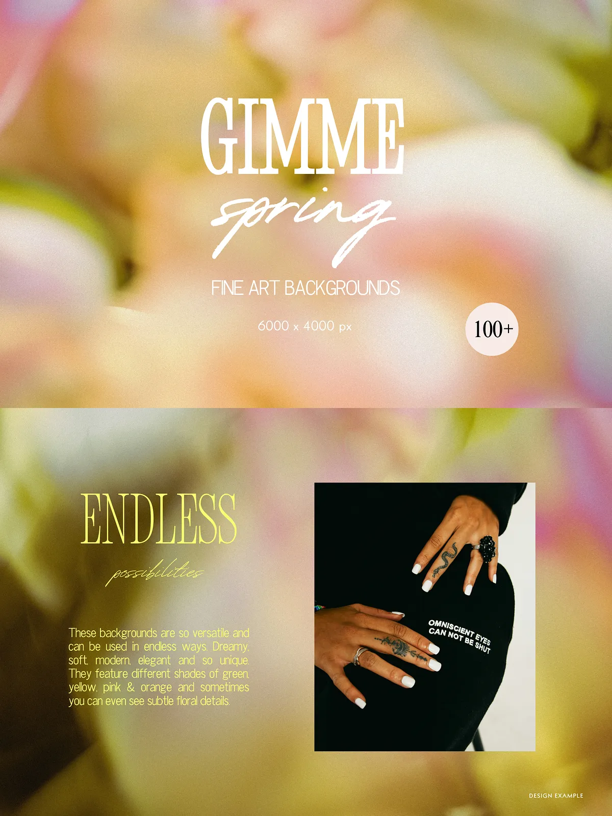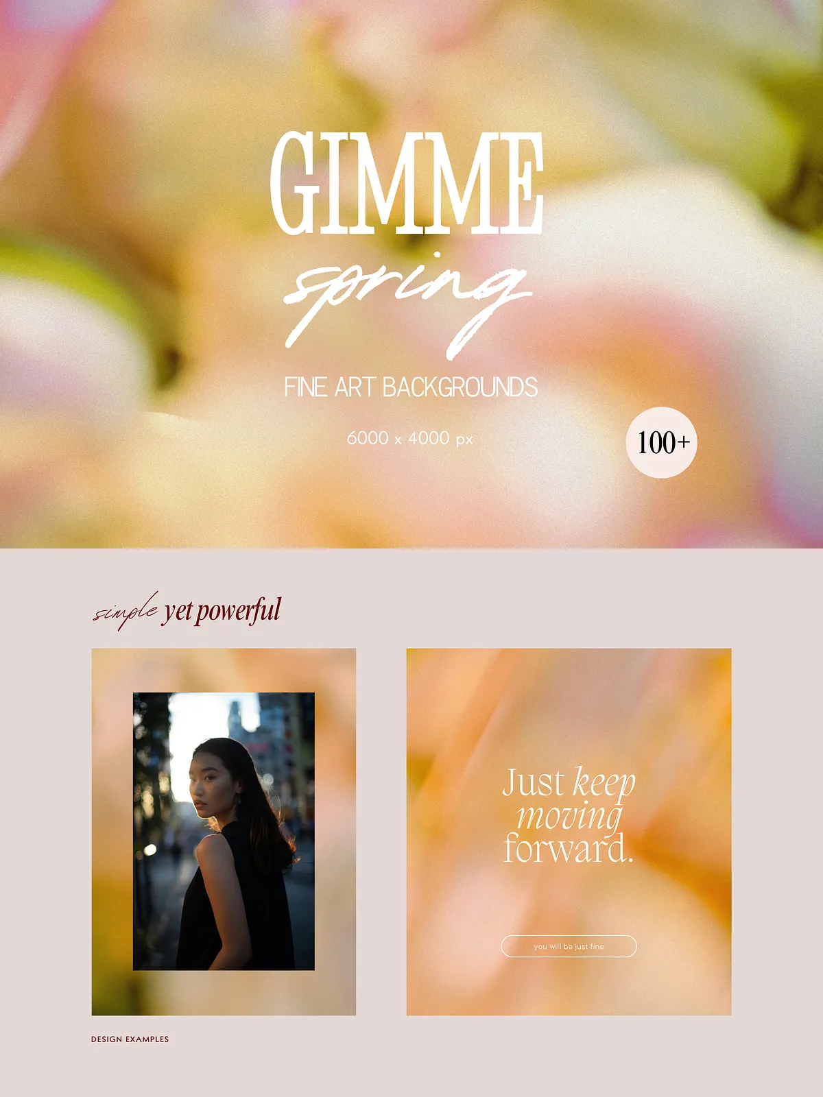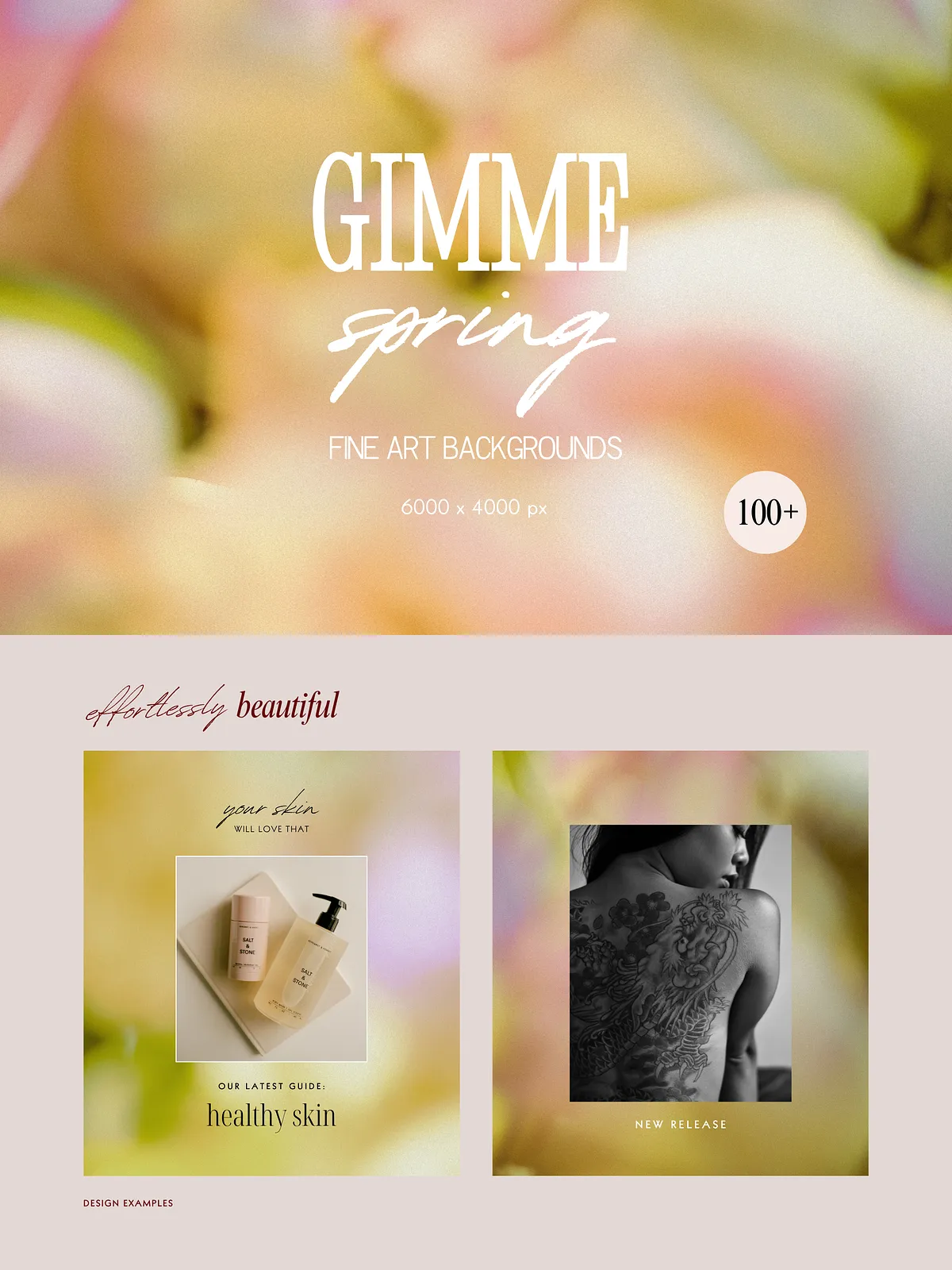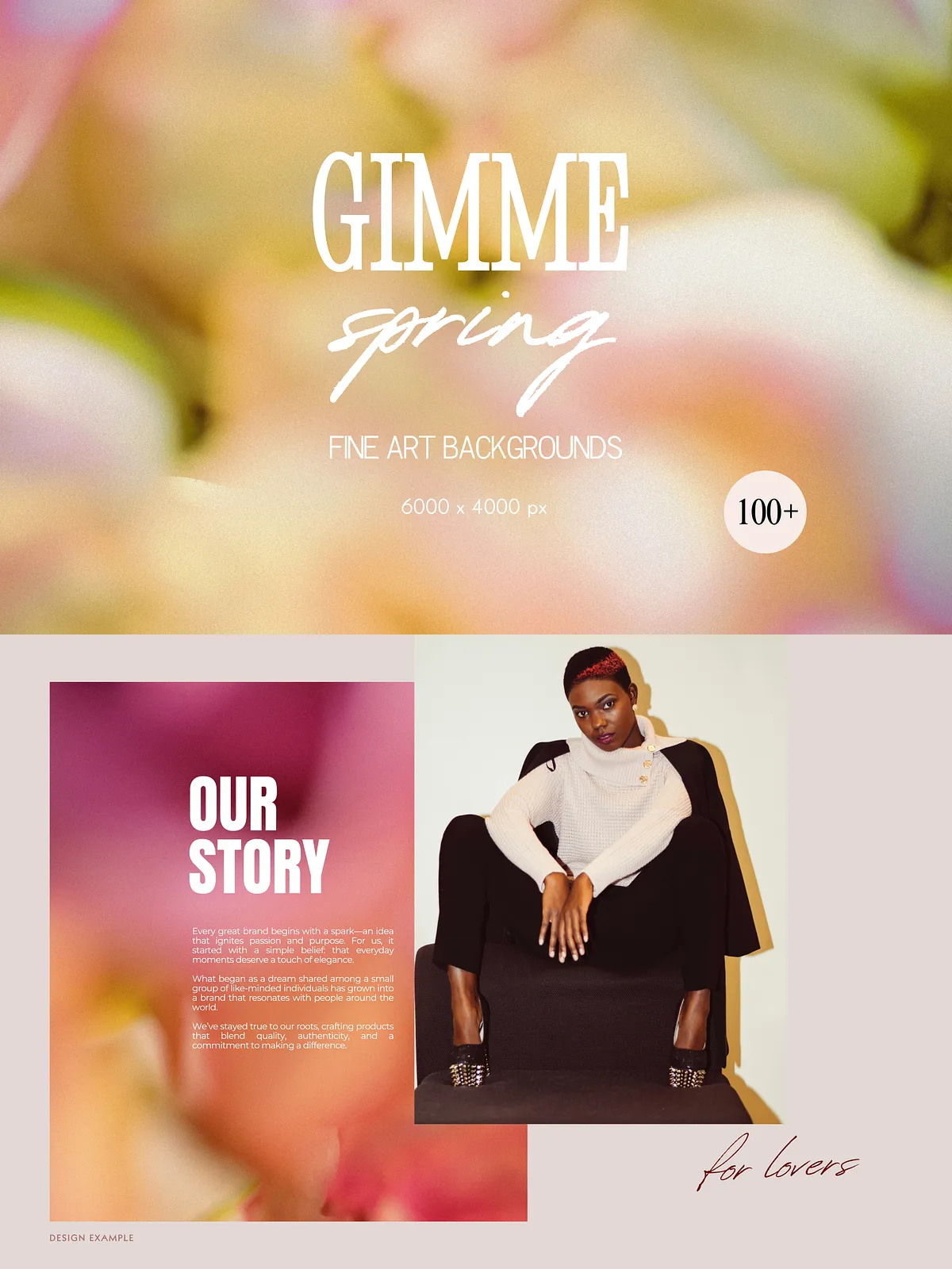 Let the gentle whisper of blossoms and dappled sunlight inspire your next creative masterpiece with **Gimme Spring: Blurred Dreamy Gradient Backgrounds** — a thoughtfully crafted collection of 49 high-resolution, naturally inspired backgrounds. Born from real flower photography and a heartfelt creative journey, these textures blend soft blur, rich color transitions, and subtle organic details like delicate petal edges and faint pollen streaks. The result? Backgrounds that feel alive — not flat, not digital cliché, but deeply expressive pieces that evoke calm, romance, and renewal.