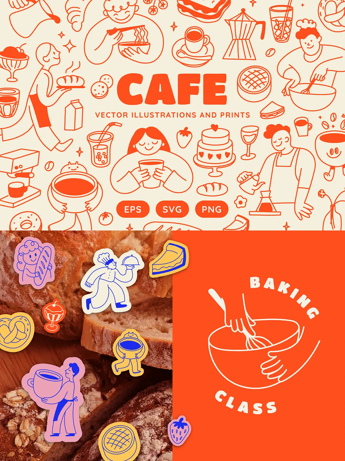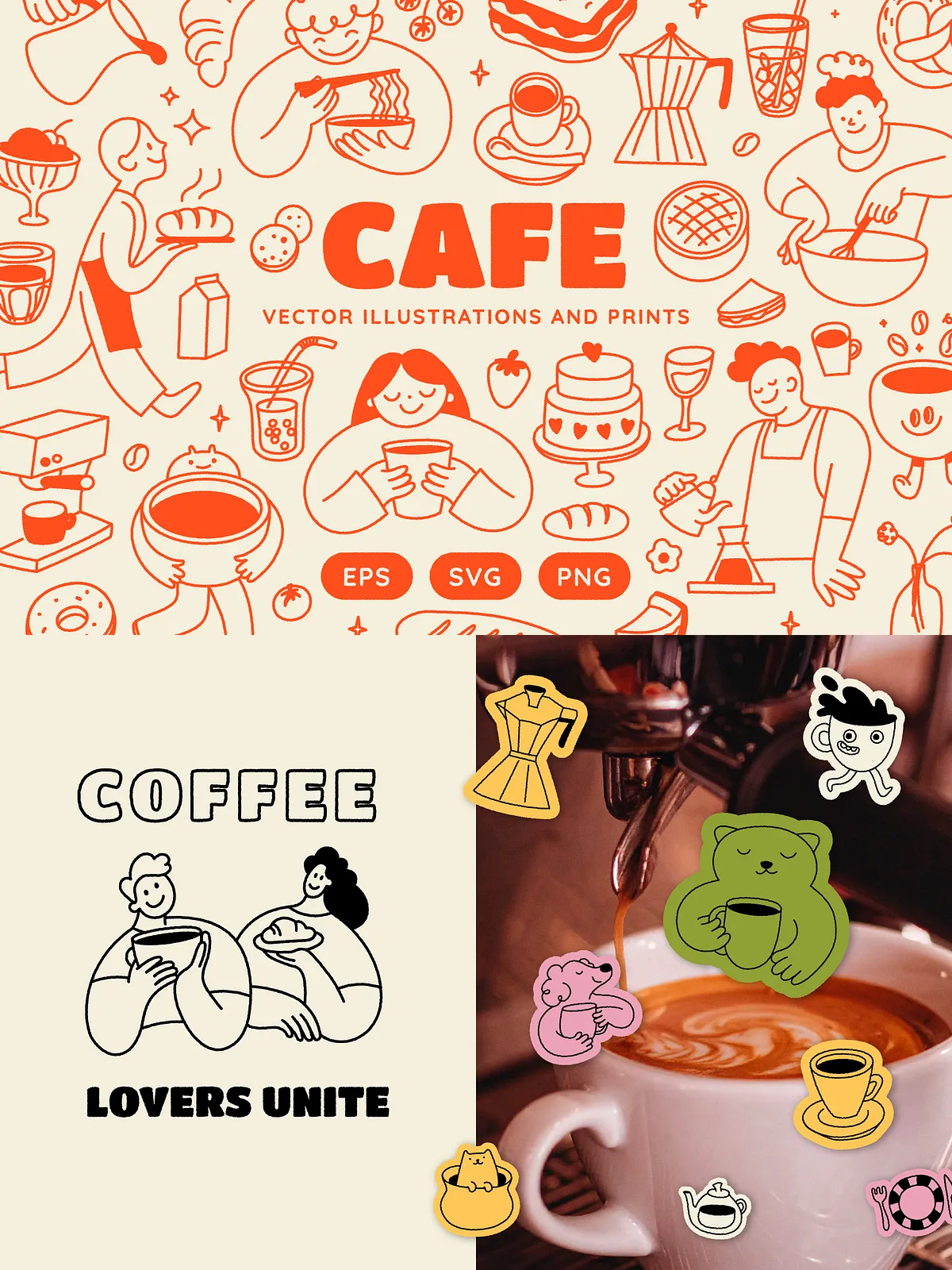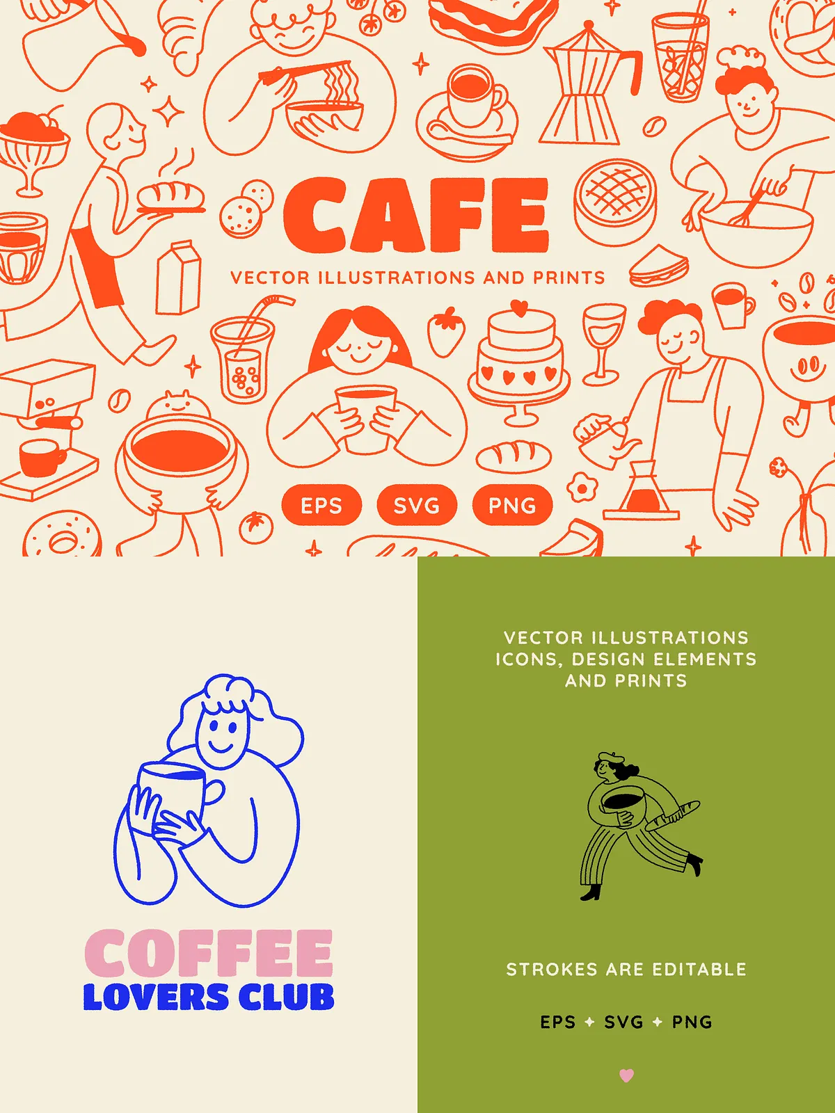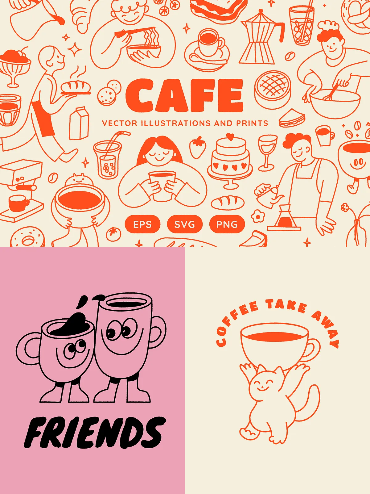 • Brand Identity & Logo Design: Use standalone illustrations or combine elements for custom logo templates that reflect your café’s personality — whether whimsical, rustic, or modern.