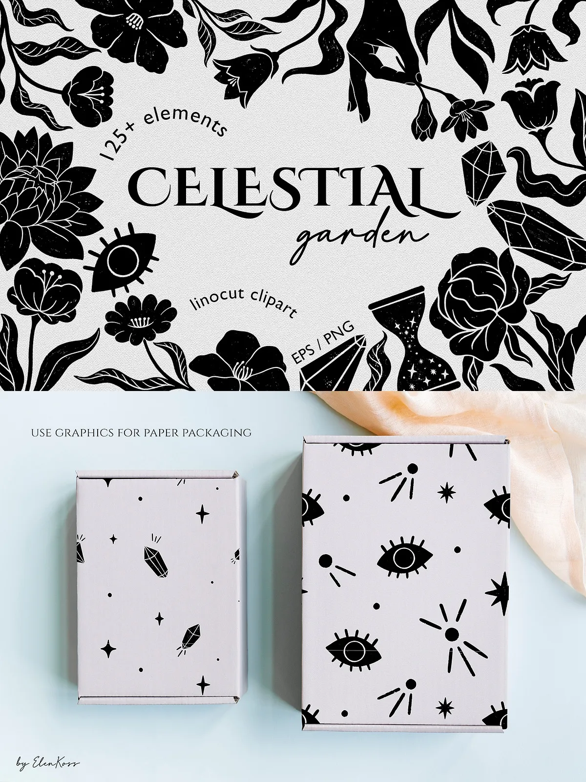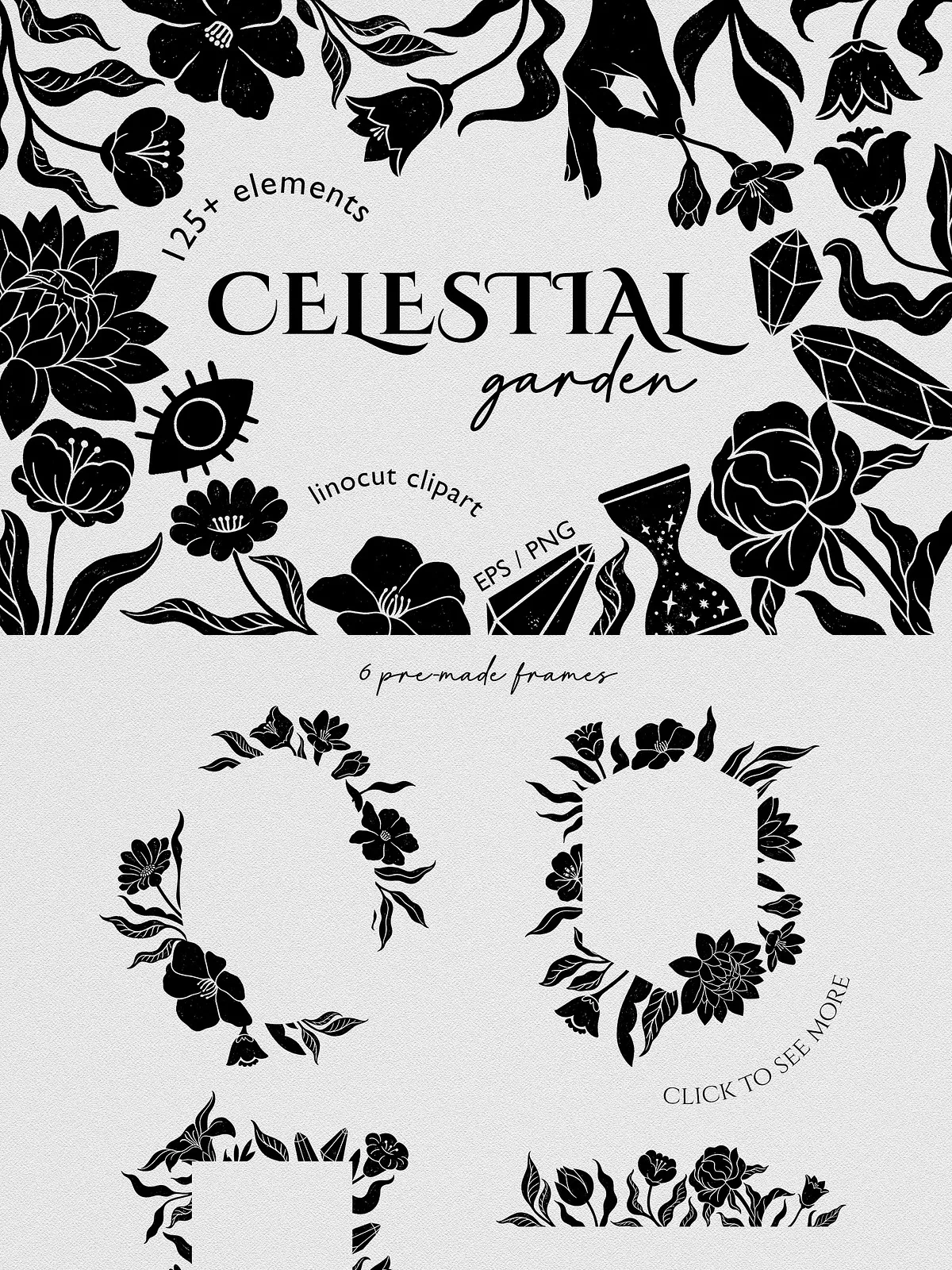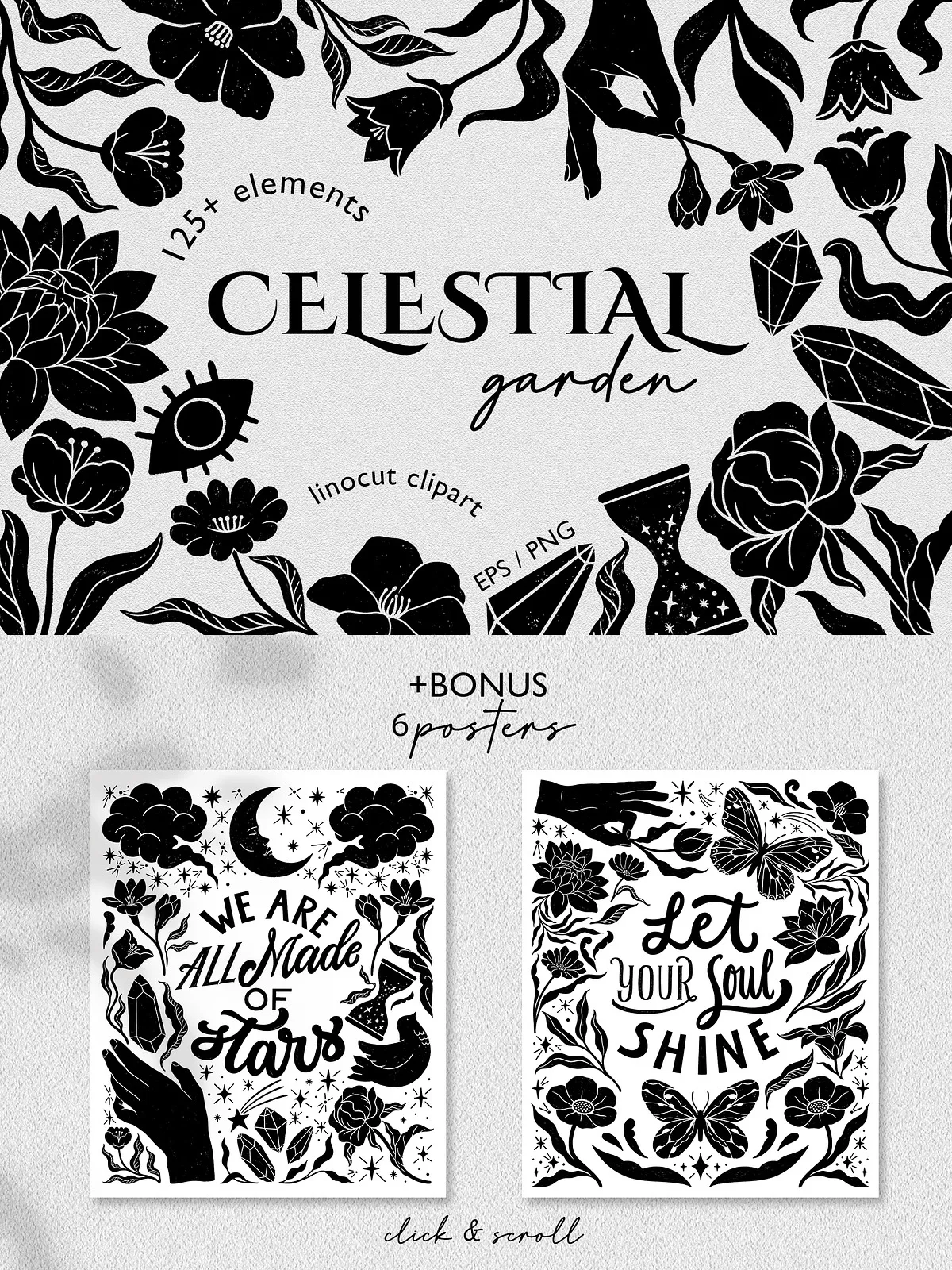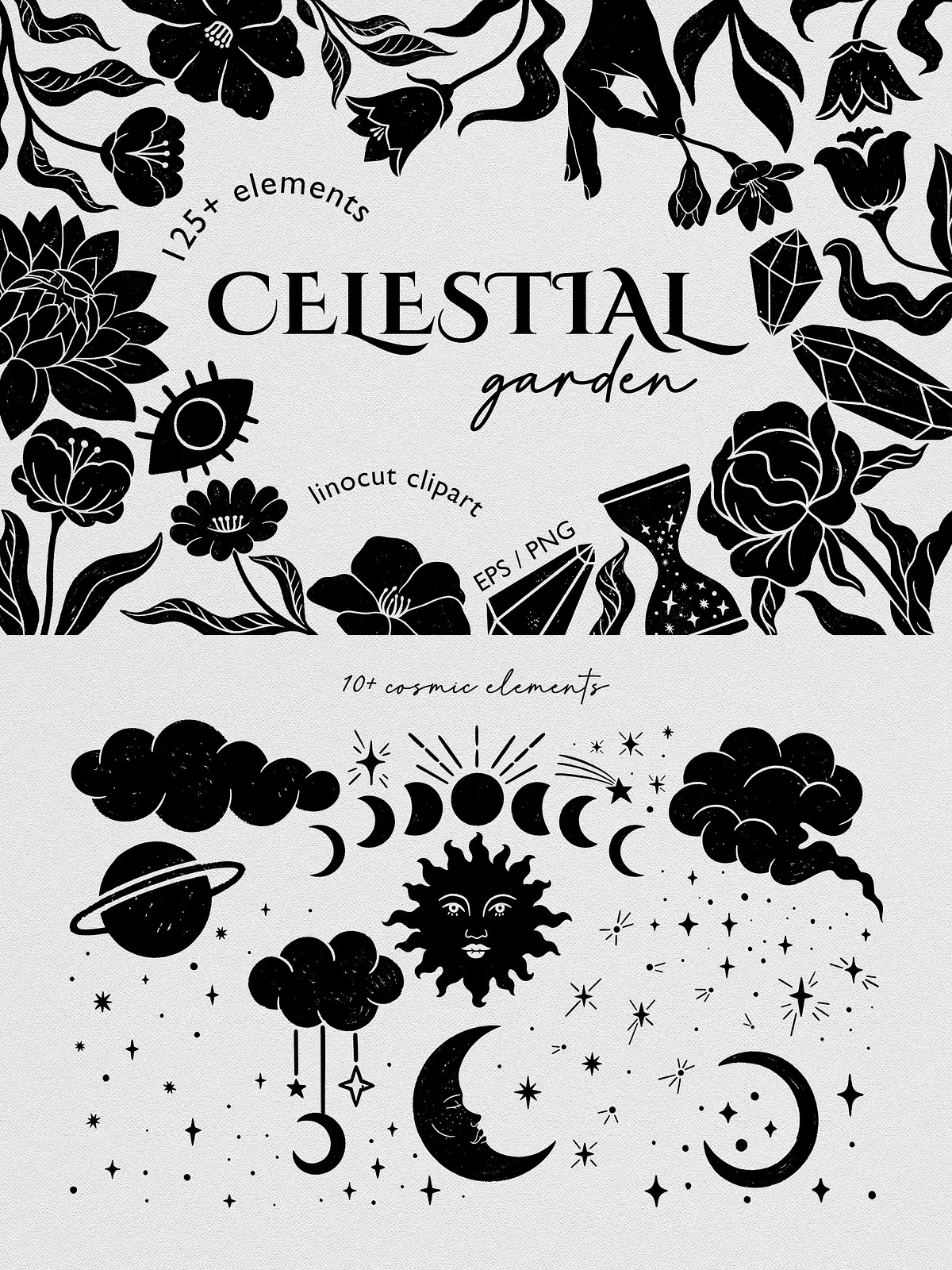 Unlock your creative potential with this versatile and elegant collection. Whether you want to design stunning packaging, craft unique posters, or enhance your digital artwork with cosmic floral elements, the Celestial Garden Collection provides all the tools you need to bring your vision to life. Download now and elevate your designs with timeless beauty and cosmic charm.