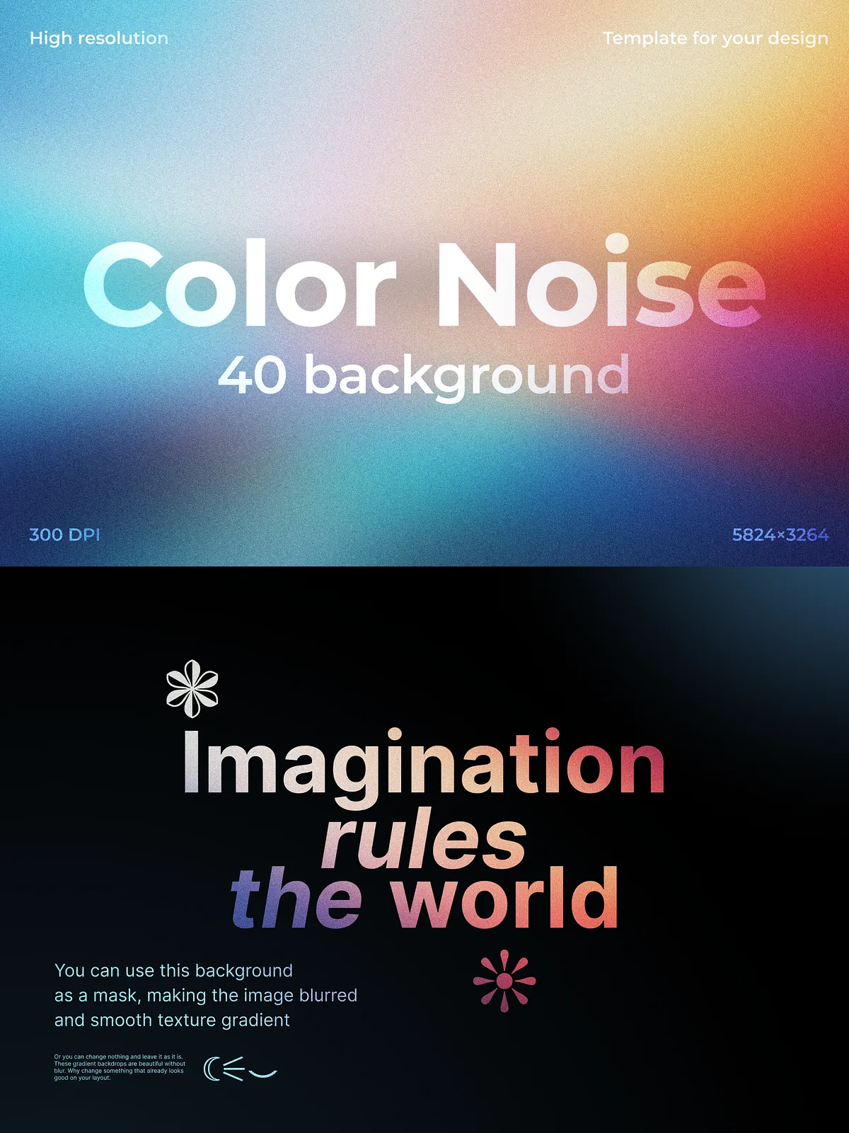 Stop blending into the noise. With the Color Noise 40 Background Bundle, you don’t just choose a background — you choose a bold new visual identity. Make your designs not just seen, but felt. Make your content unforgettable.