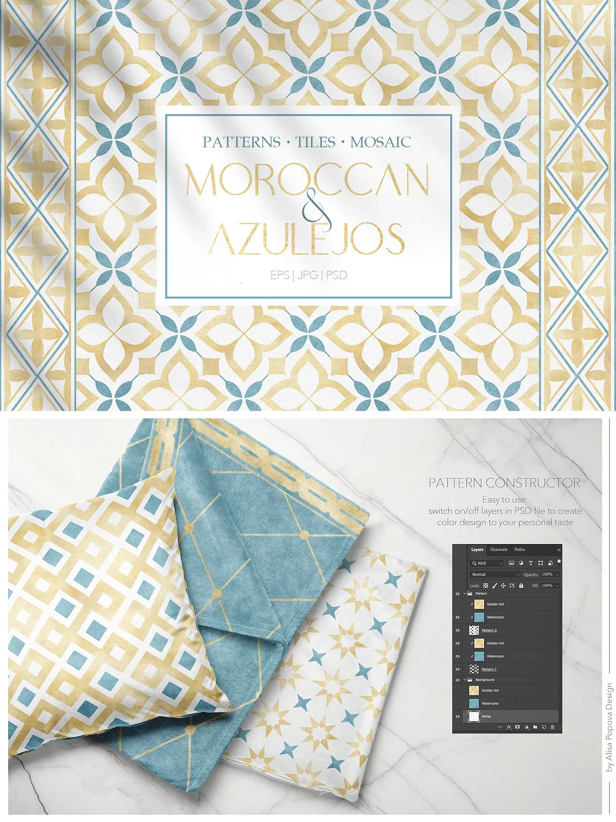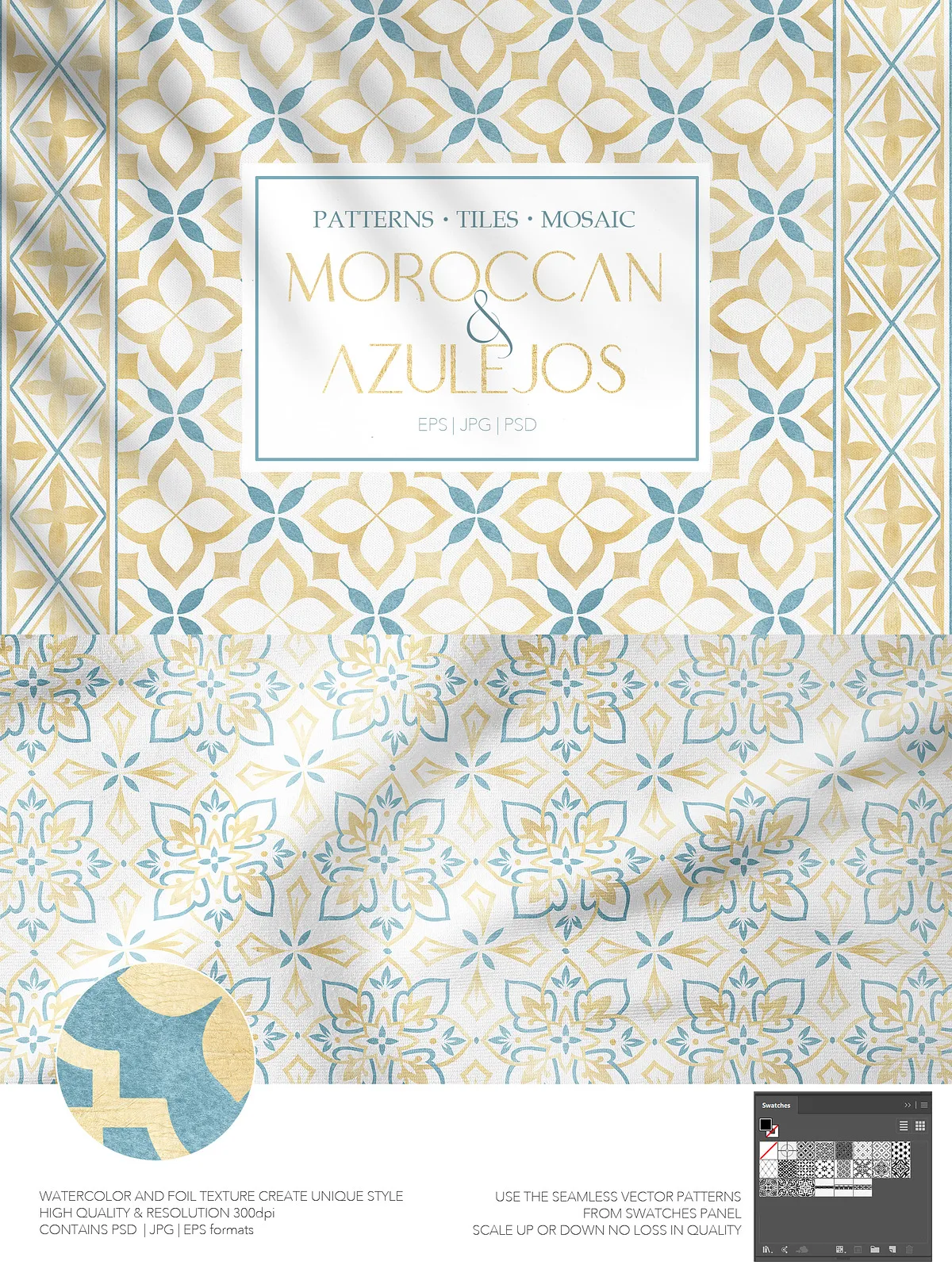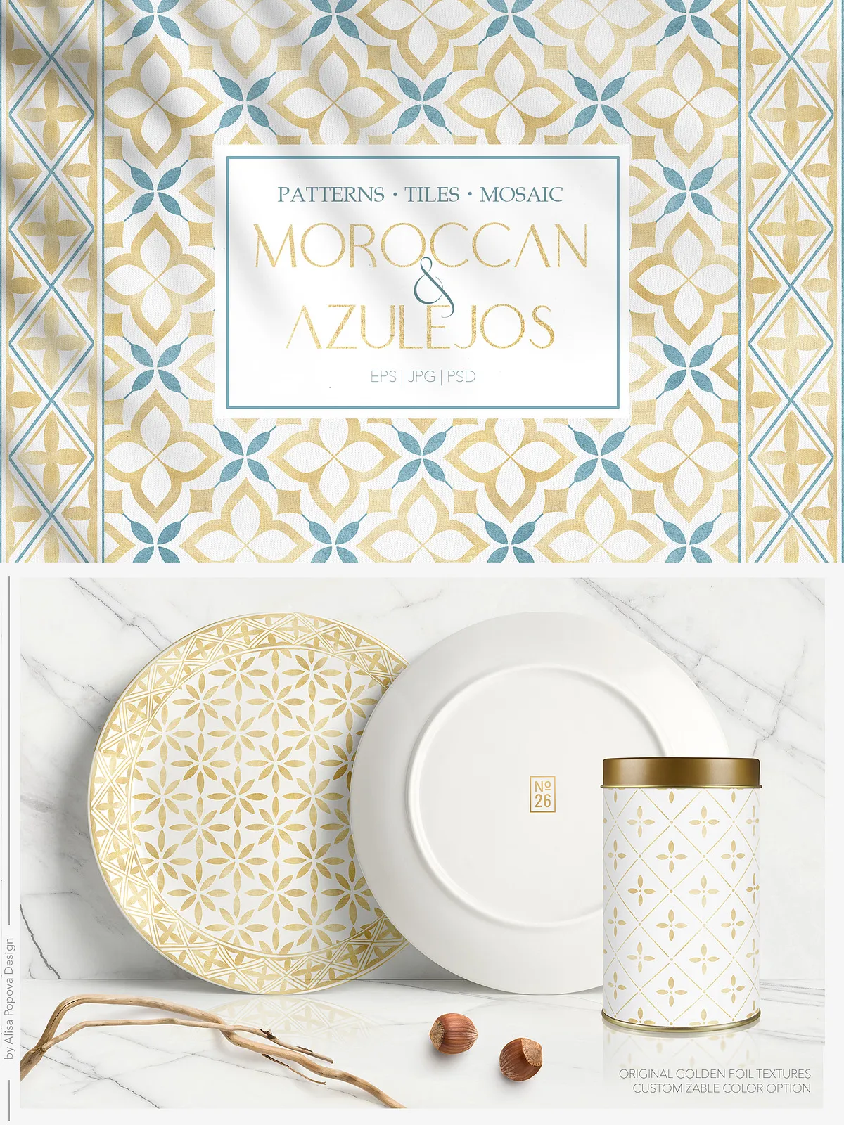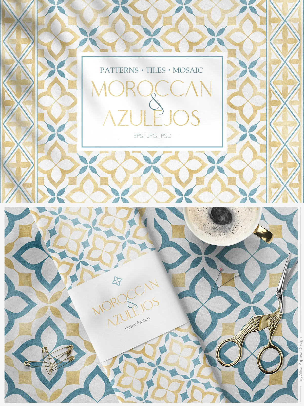 Step into a world rich with centuries-old craftsmanship with our meticulously hand-drawn Islamic Moroccan & Azulejos seamless pattern collection. Inspired by the intricate geometry of Arab tilework and the vibrant storytelling of Portuguese azulejos, this collection fuses cultural elegance with modern design flair. Every pattern tells a story of symmetry, balance, and beauty—reimagined for today’s creative visionaries.