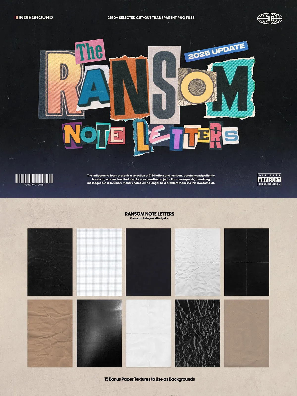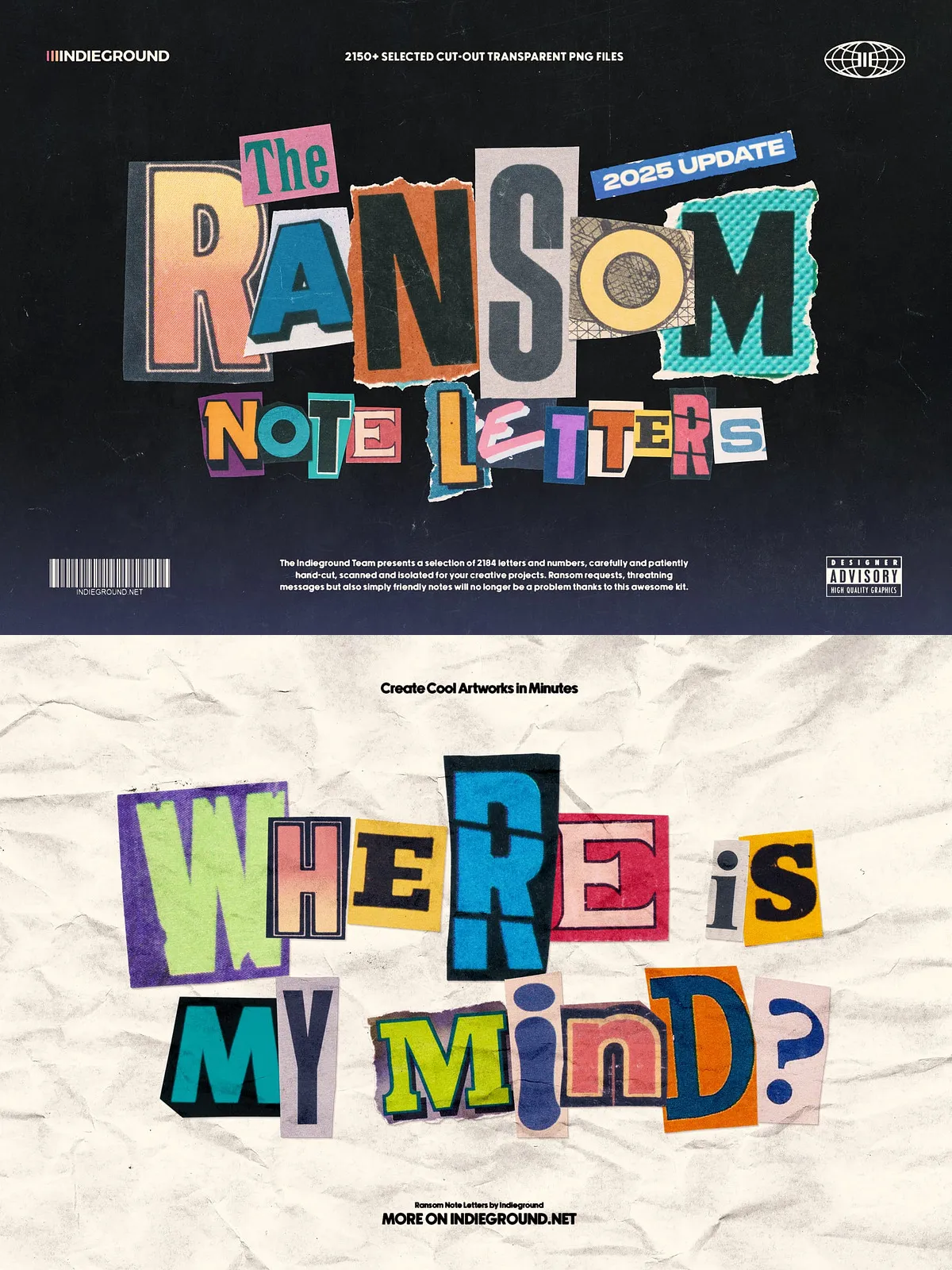 This collection is ideal for artists and creatives who want to channel the iconic ransom note style popularized by movies and pop culture while adding their personal touch. The high-resolution PNG letters and textures enable you to: