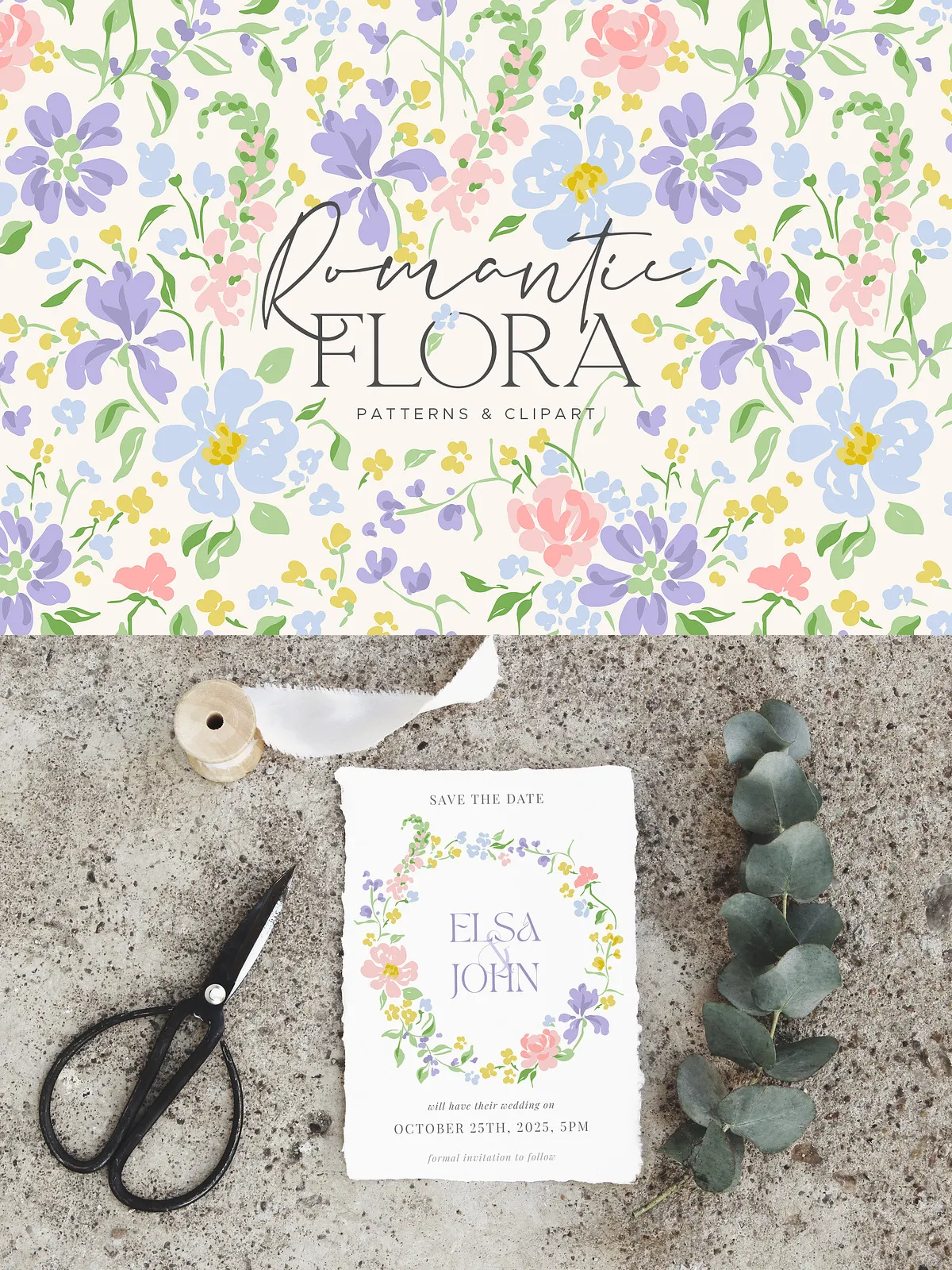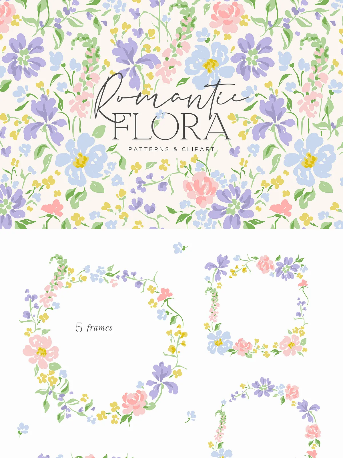 The Romantic Flora Collection contains several essential components for your design toolkit: