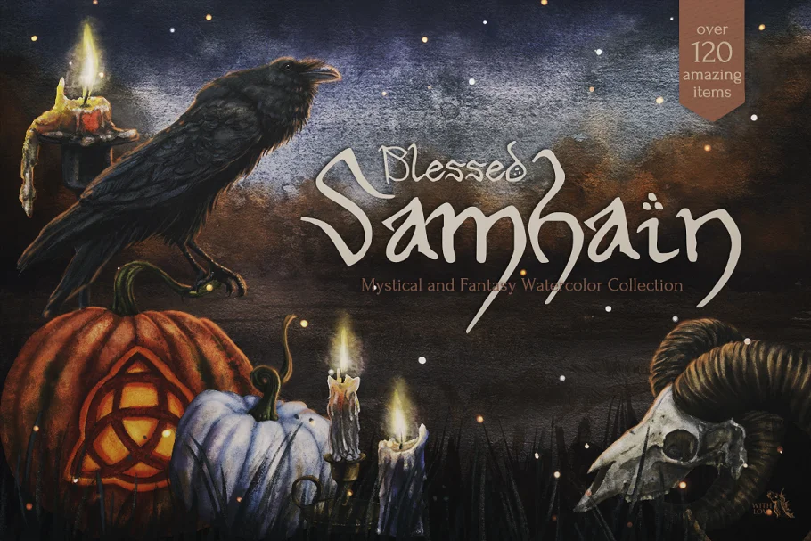Introducing “Blessed Samhain” Watercolor Collection! Here is everything a coven needs to meet the beginning of the darker half of the year.
