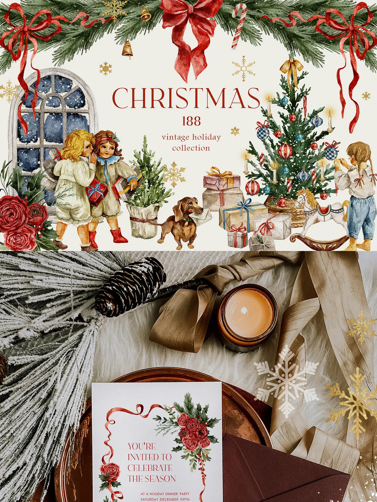 Step into the magic of the winter season with our exclusive Christmas illustration collection, a thoughtfully assembled set of 188 hand-drawn, vintage-inspired elements that capture the quiet joy, cozy elegance, and timeless spirit of the holidays. Every line was drawn with intention, every detail nurtured by hand — not just to decorate, but to *tell a story*.