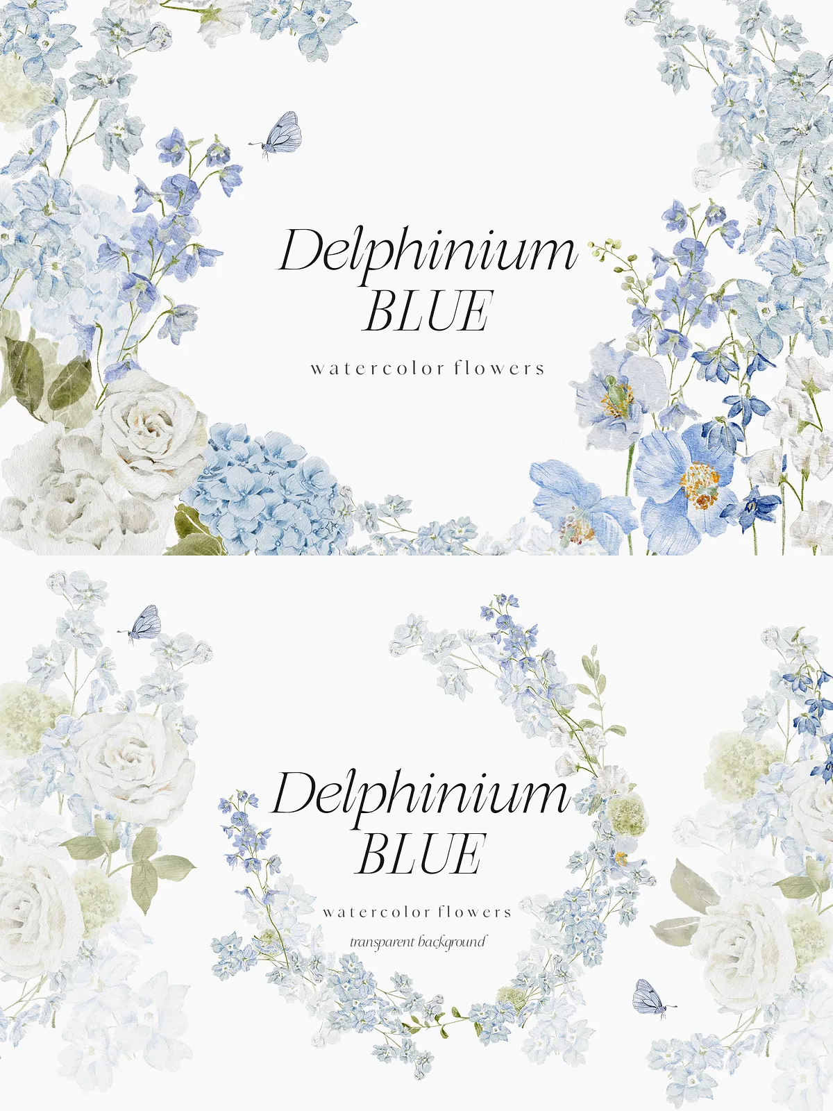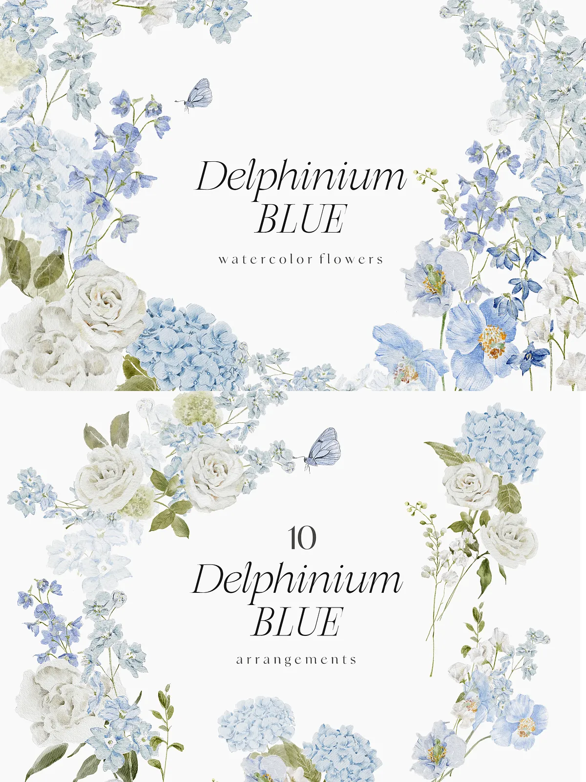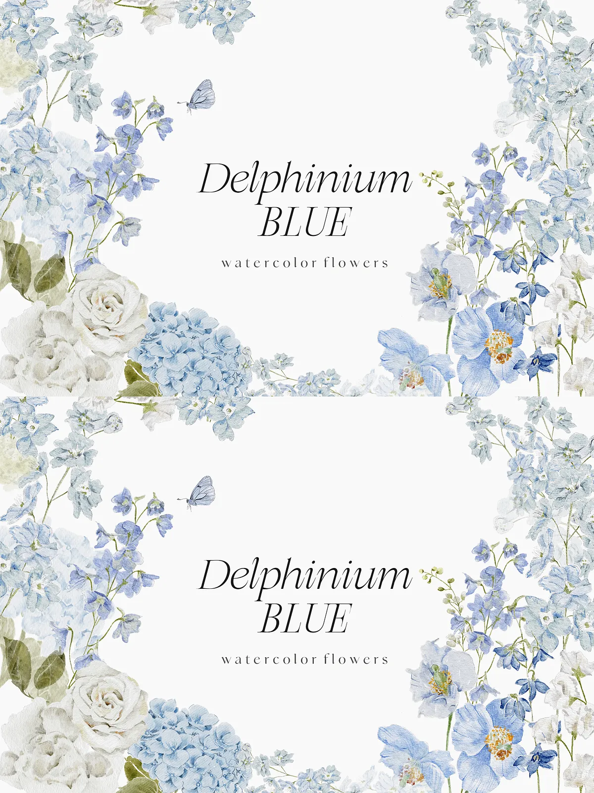 Experience the magic of nature’s palette with our **updated and expanded Delphinium Blue Watercolor Collection** – a captivating set of hand-crafted, high-resolution illustrations painted on premium watercolor paper, then meticulously scanned and cleaned for crystal-clear digital use. This isn’t just a set of images – it’s a creative sanctuary for designers, artists, and brands searching for timeless, organic beauty.
