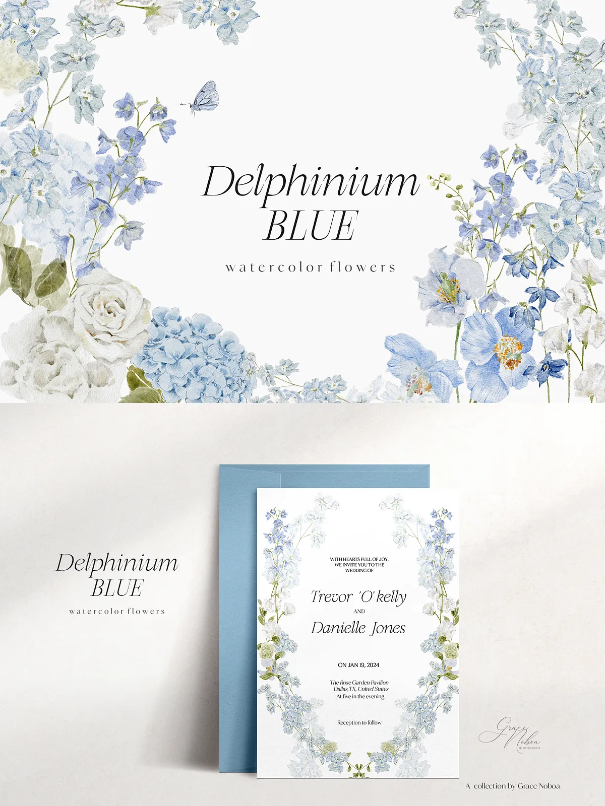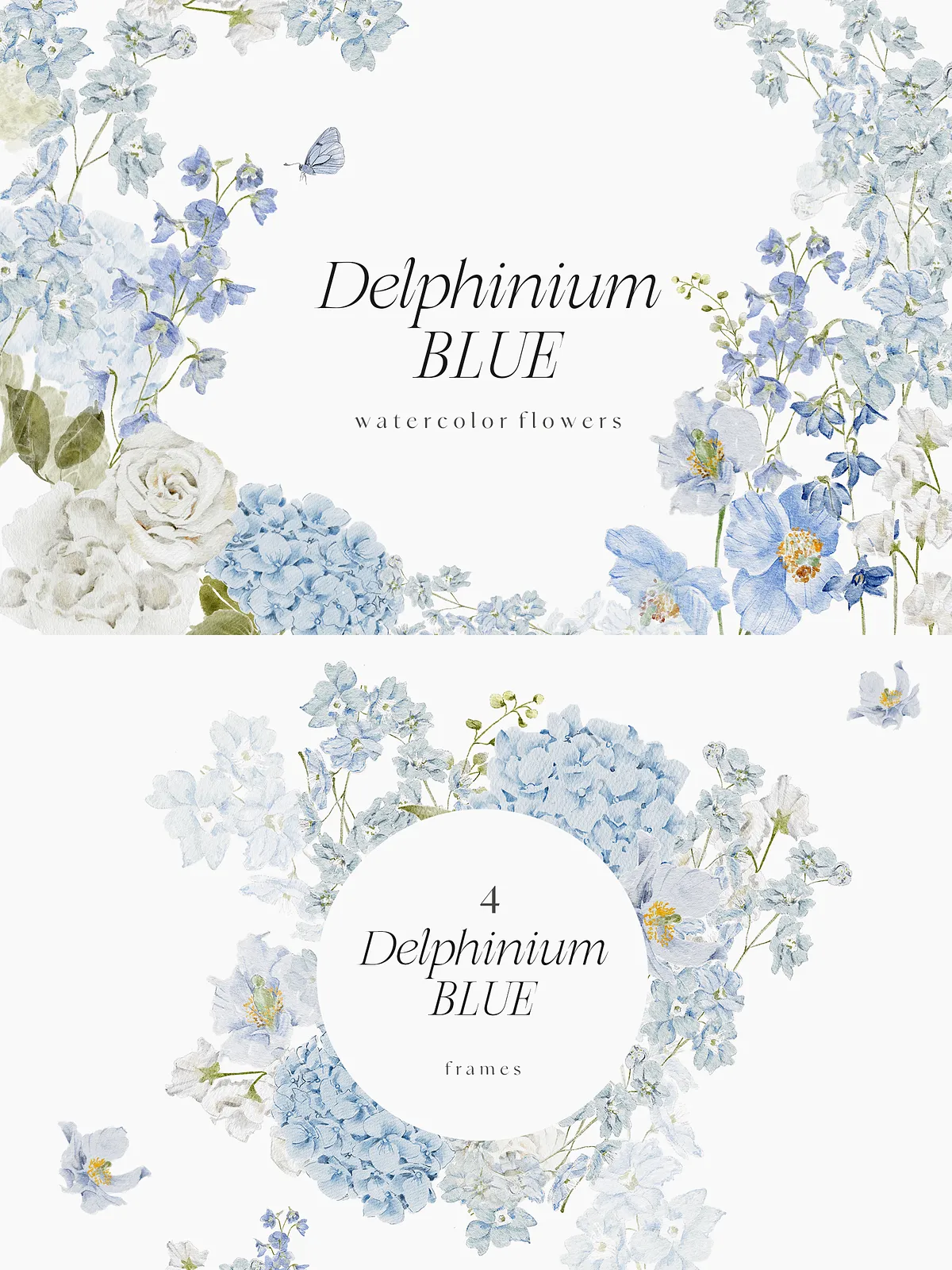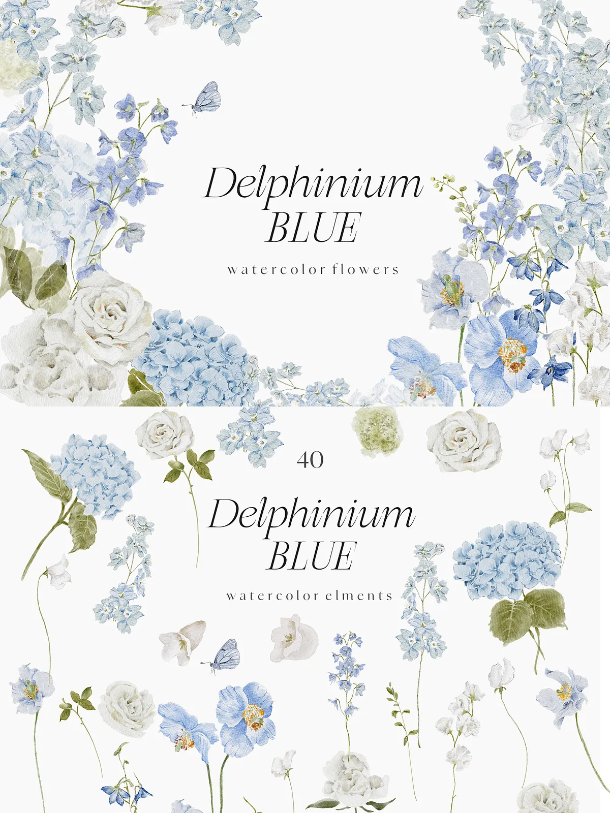 Experience the magic of nature’s palette with our **updated and expanded Delphinium Blue Watercolor Collection** – a captivating set of hand-crafted, high-resolution illustrations painted on premium watercolor paper, then meticulously scanned and cleaned for crystal-clear digital use. This isn’t just a set of images – it’s a creative sanctuary for designers, artists, and brands searching for timeless, organic beauty.
