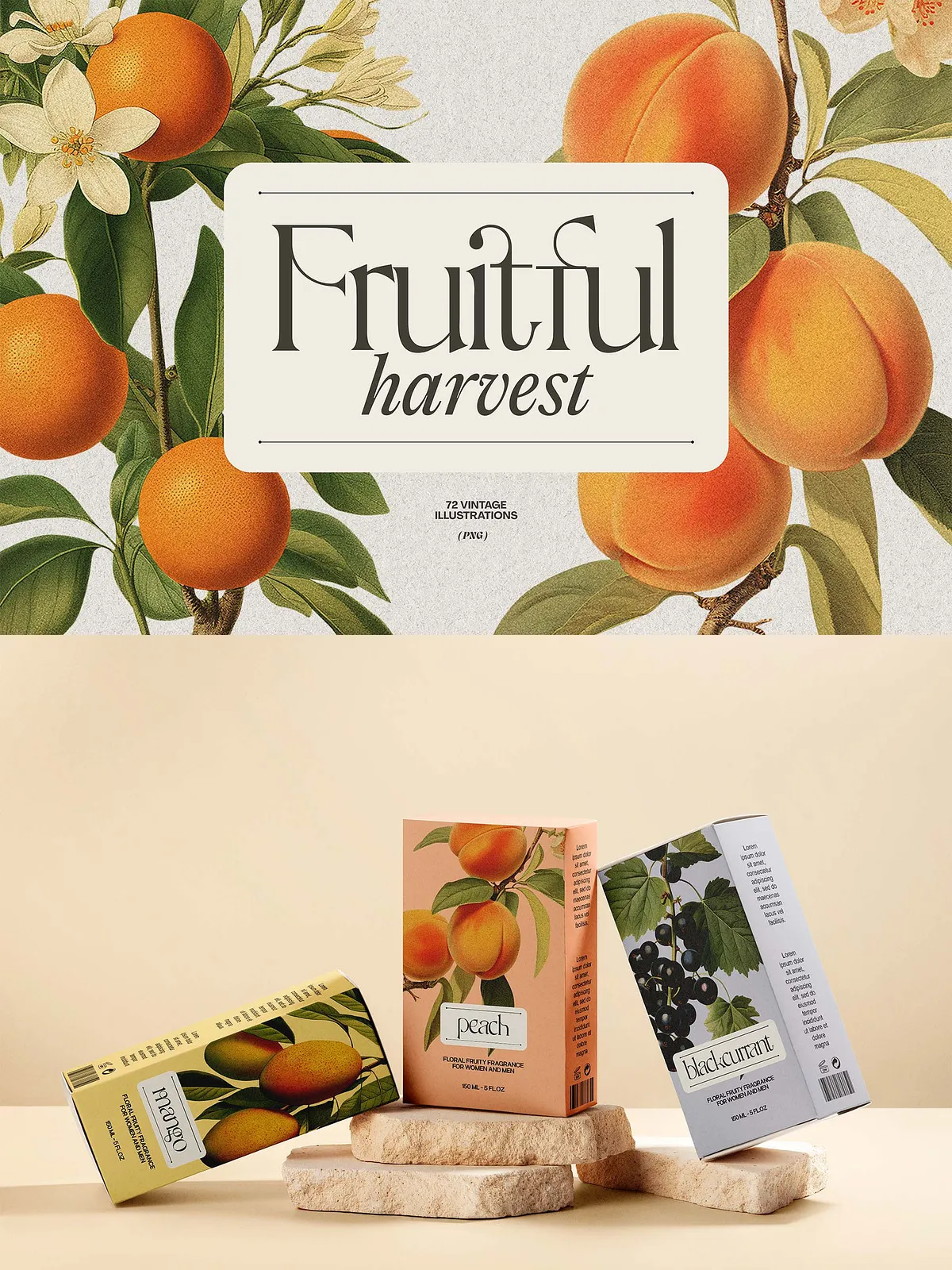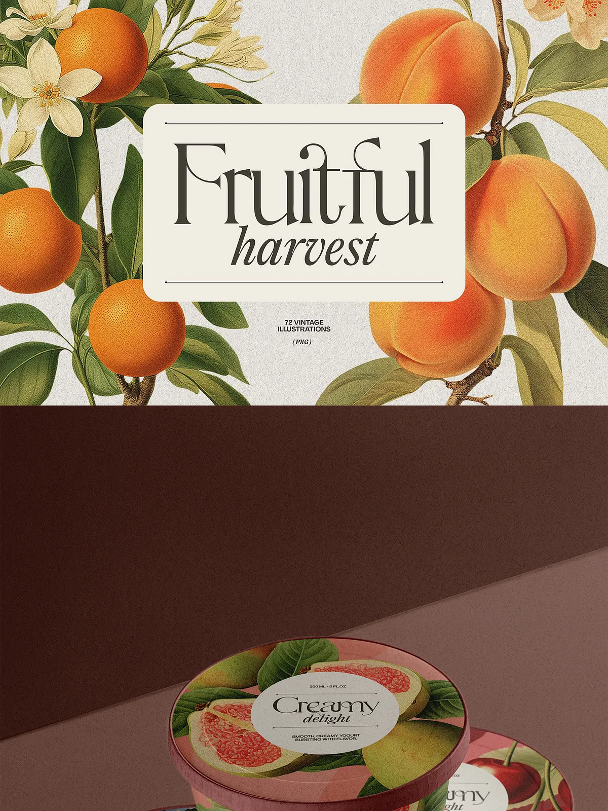 - Branding & Packaging — Apply vintage fruit elements to labels, product boxes, or business cards for a premium, artisanal look that tells a story.