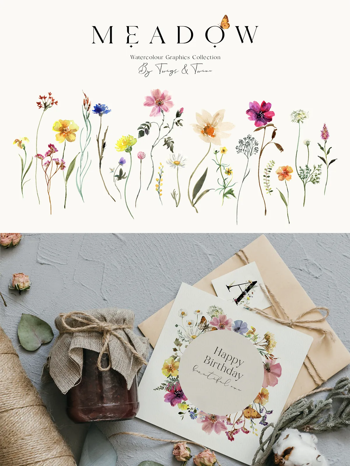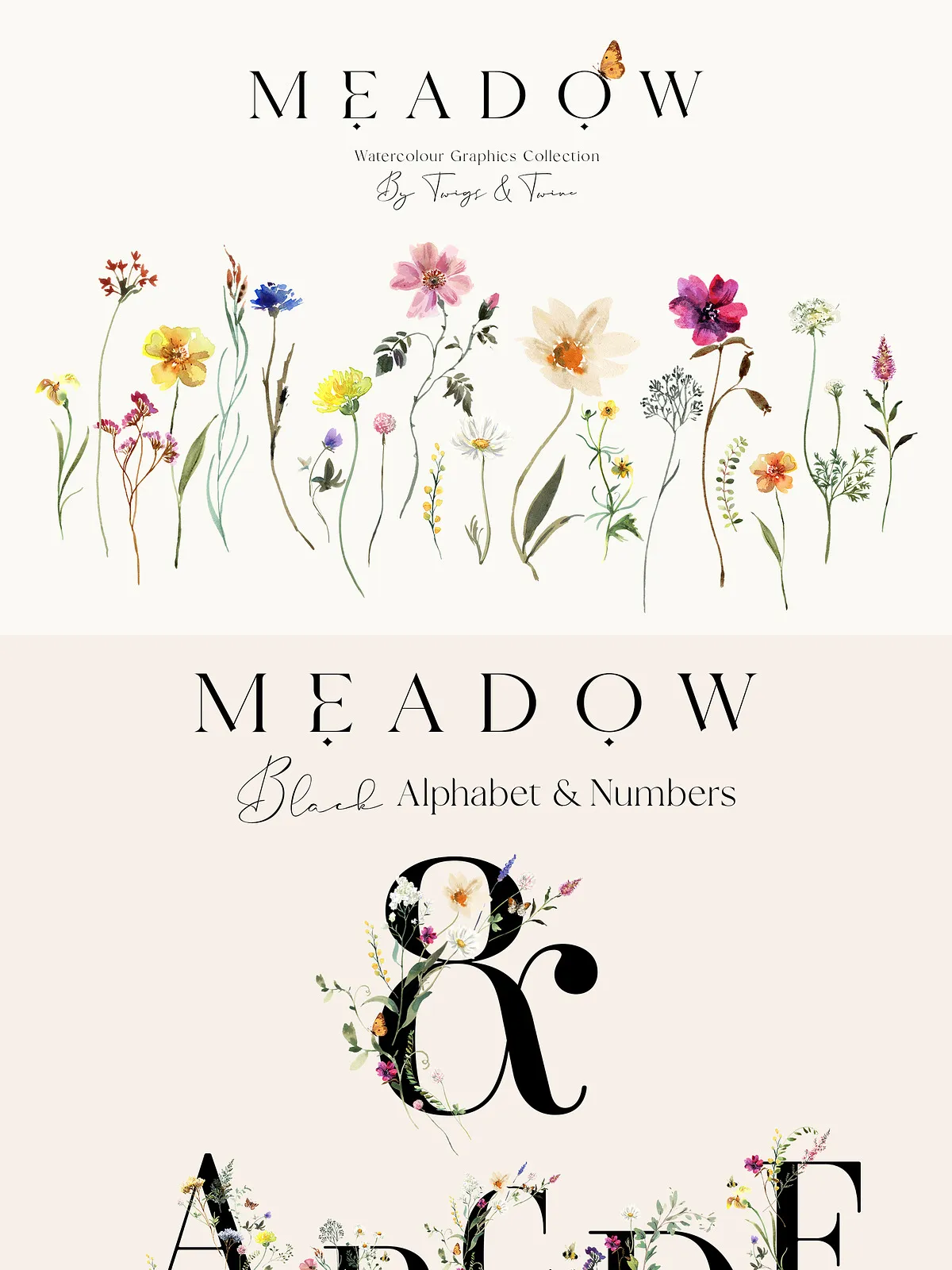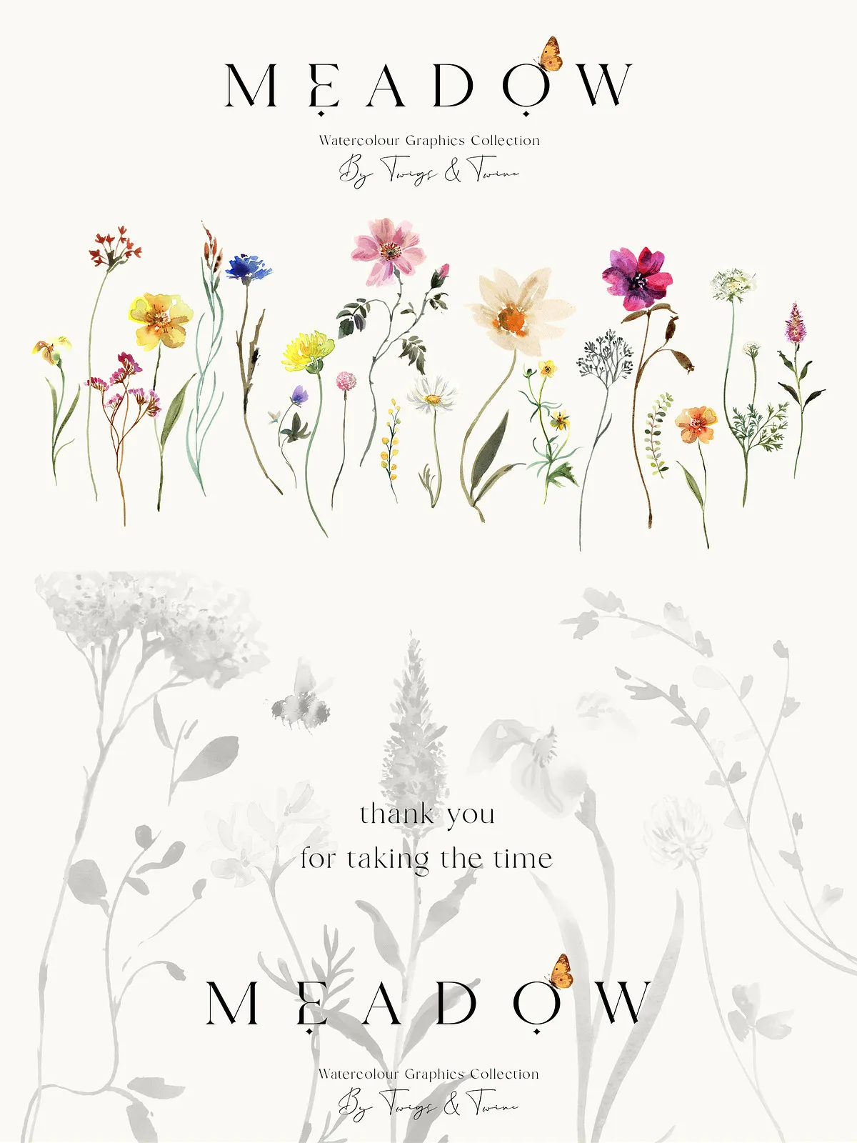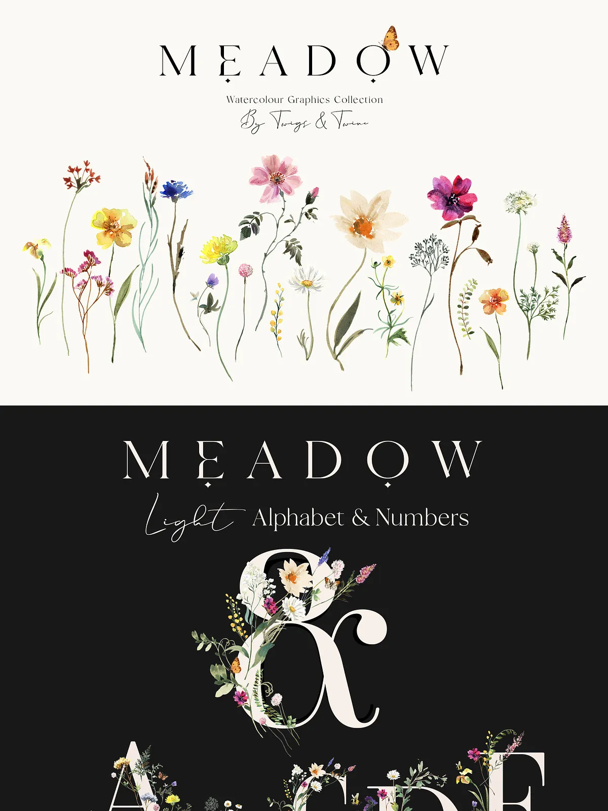 - 5 Meadow Compositions – Full scene illustrations capturing the spirit of a wild meadow — perfect for backgrounds, large-format prints, and immersive design atmospheres.