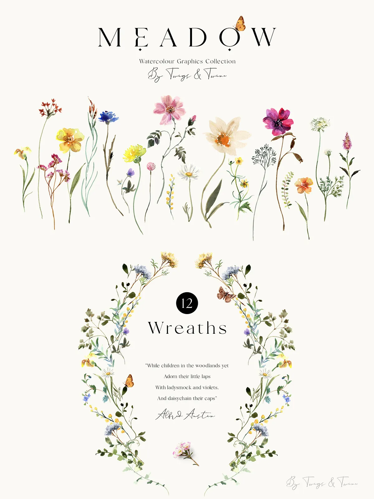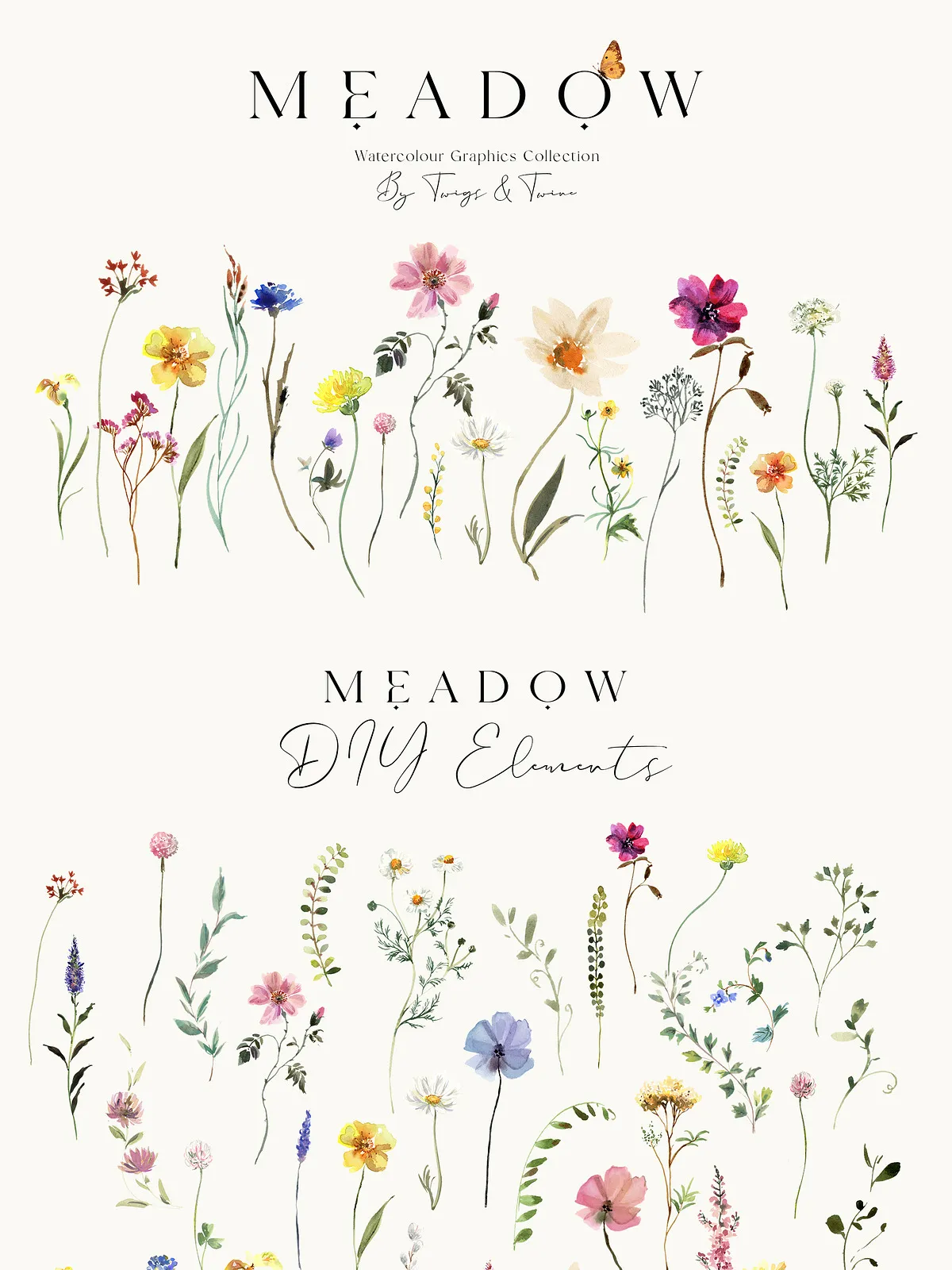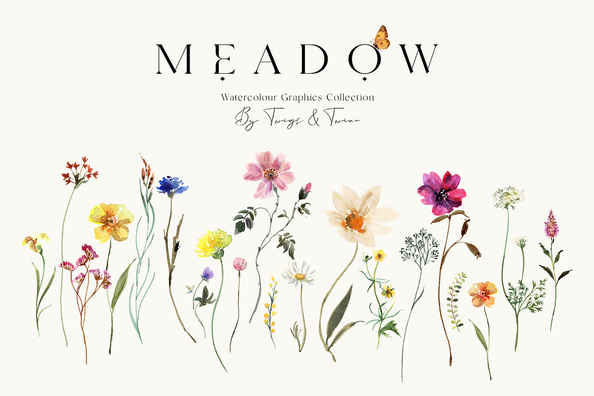 Step into a sunlit meadow with the **Meadow Wildflower Graphics Collection** – a breathtaking digital archive of 54 meticulously hand-painted watercolor illustrations. Each bloom, leaf, and delicate creature is captured with authentic brushwork, high-quality materials, and precise scanning to preserve the organic texture of paper and paint. With transparent backgrounds and 300dpi resolution, these PNGs are engineered for instant, seamless integration into your creative projects.