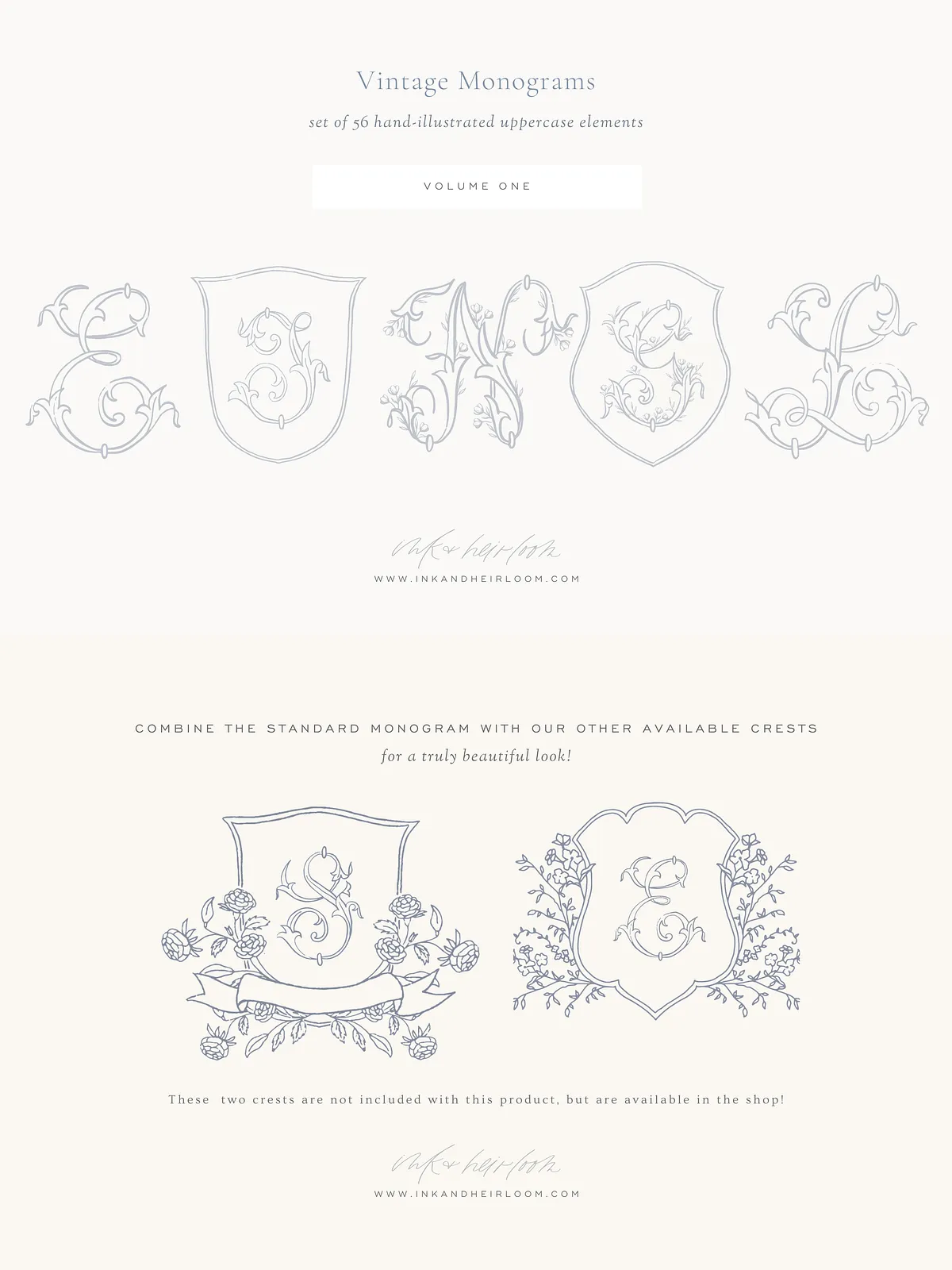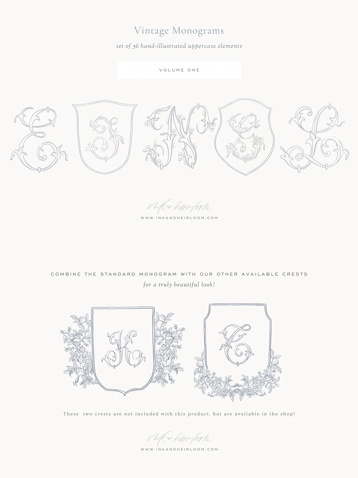 Remember: The graphics must be **integrated into a greater, original design** (e.g., a full invitation suite, a custom logo, a wedding motif). You may not distribute the monograms or crests as standalone products, such as selling them on mugs or as digital downloads.