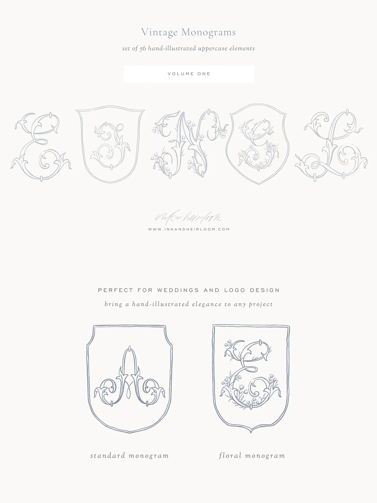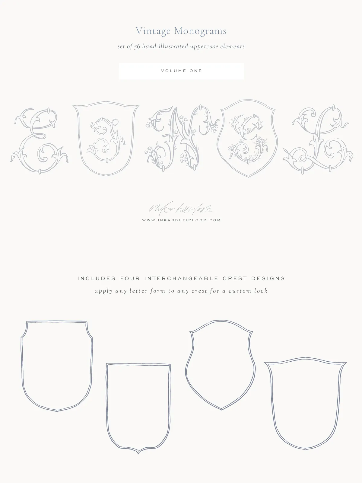 Complement your monogram with **4 distinct hand-illustrated crest elements**, designed for seamless mix-and-match versatility. Use them to frame initials, decorate invitations, or enhance signage with timeless detail. Each element combines artistic precision with symbolic depth — ideal for couples who want every piece of their wedding aesthetic to reflect their story.
