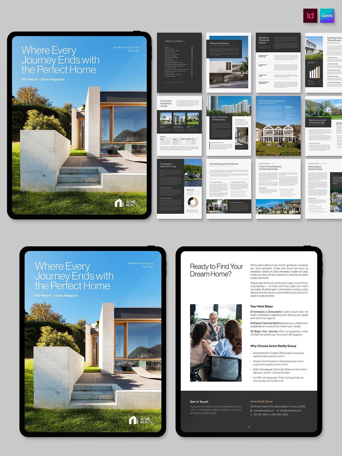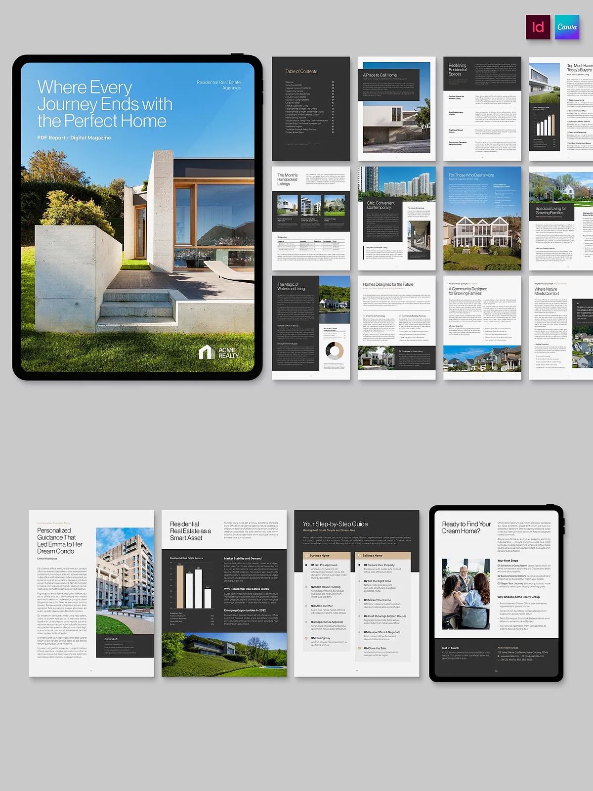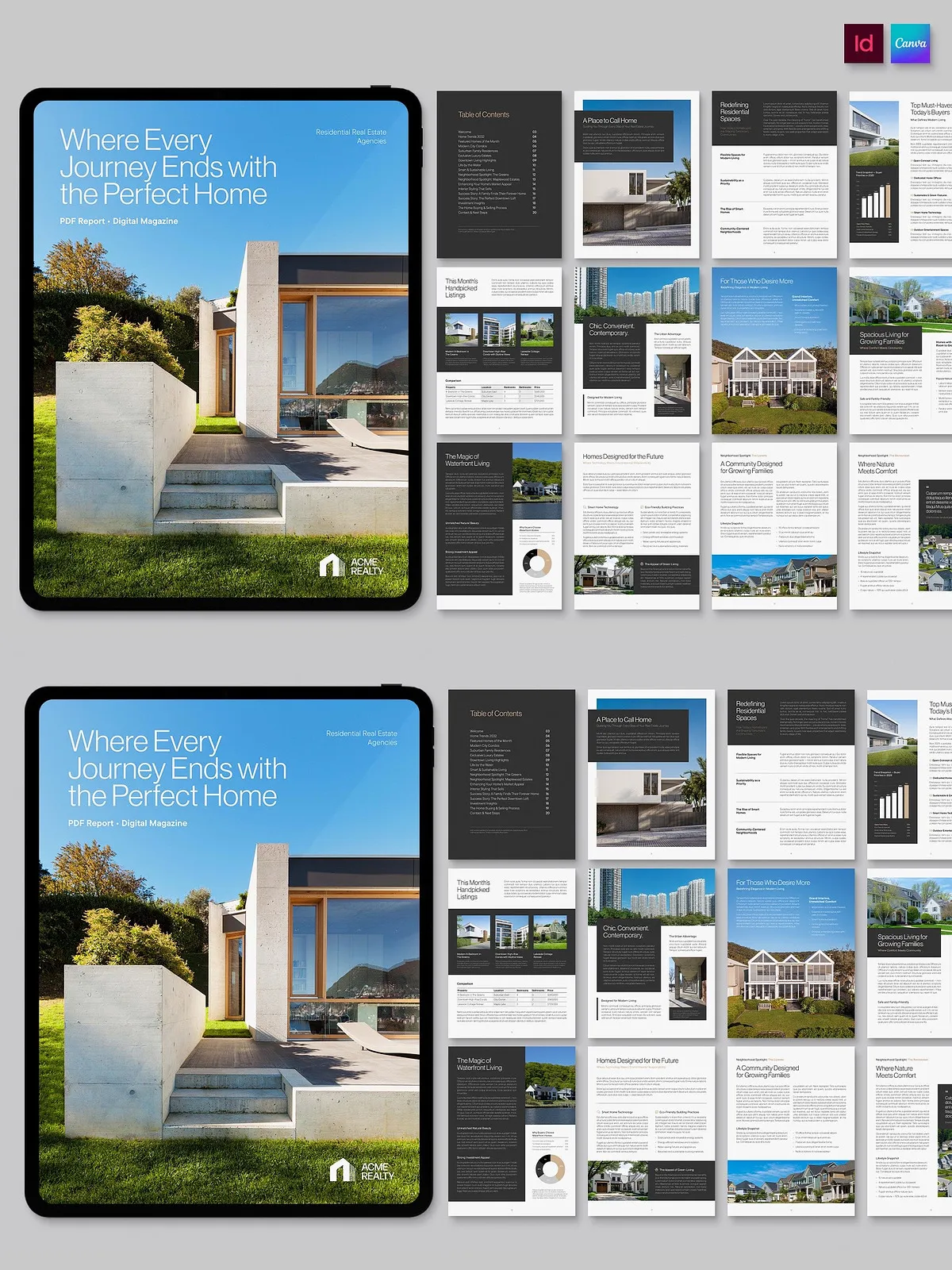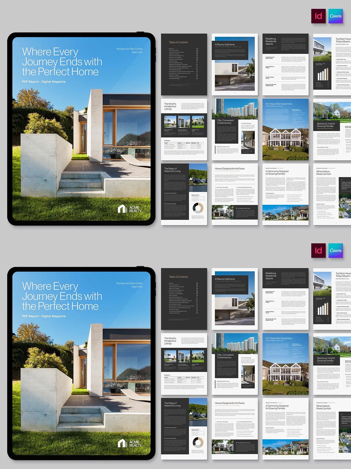 - Flexible Grid Systems: Dynamic layouts that reorganize content effortlessly, allowing you to rearrange photos, text blocks, and infographics for every unique listing.