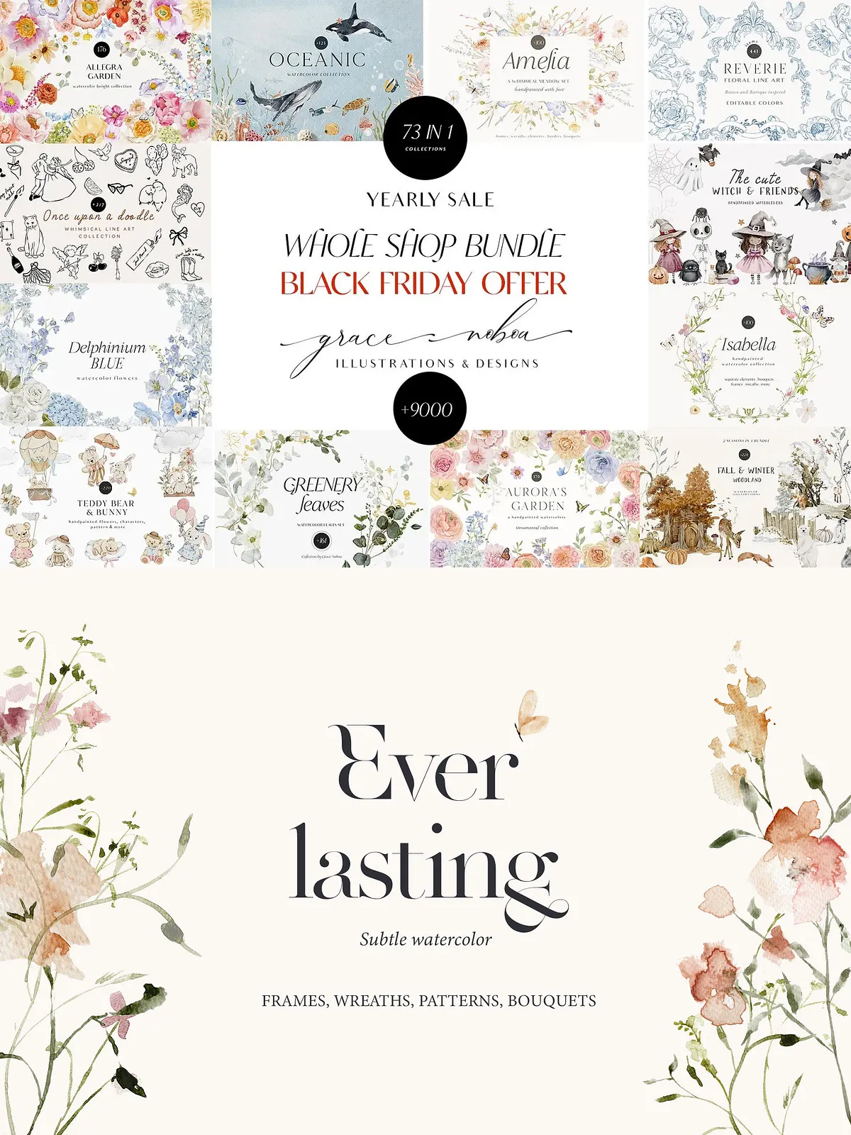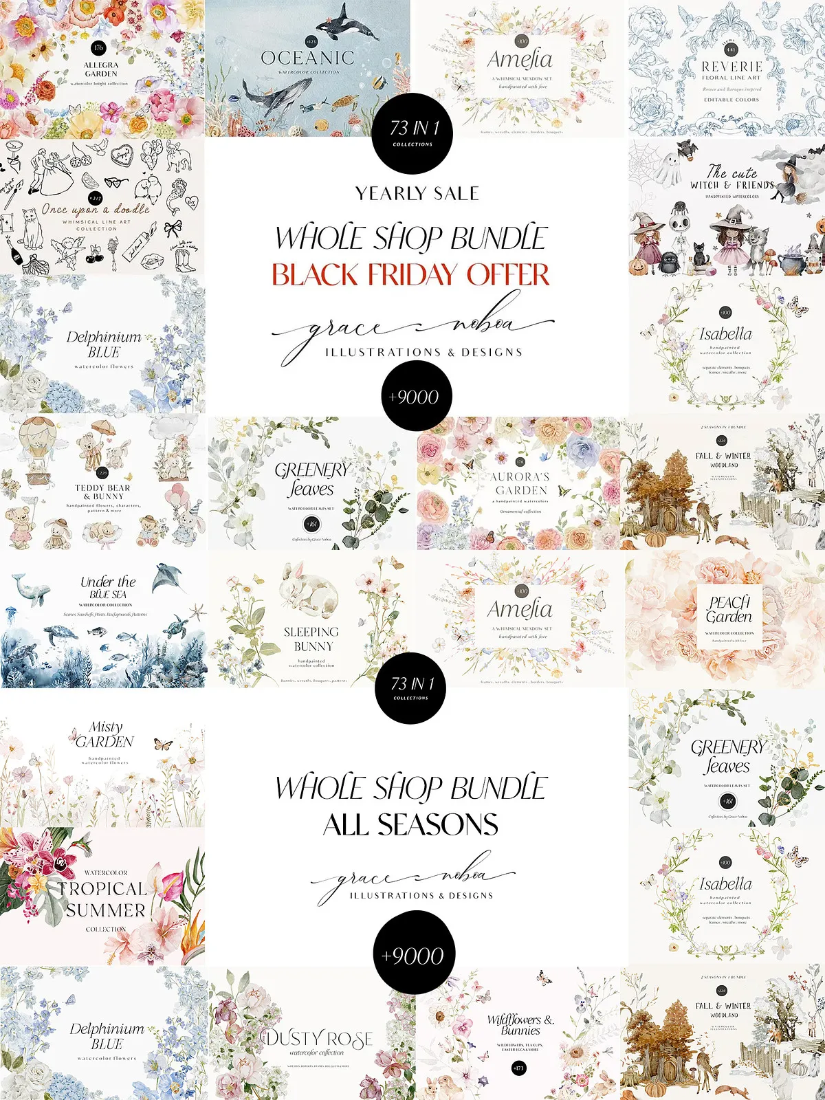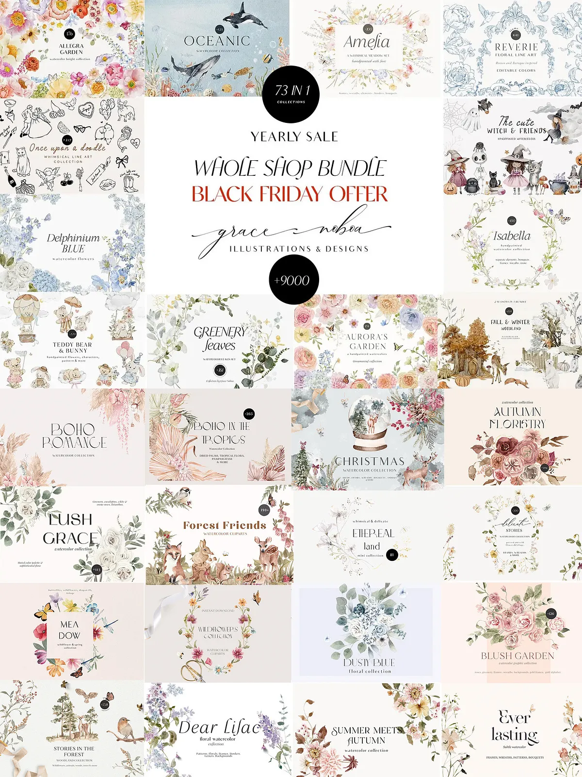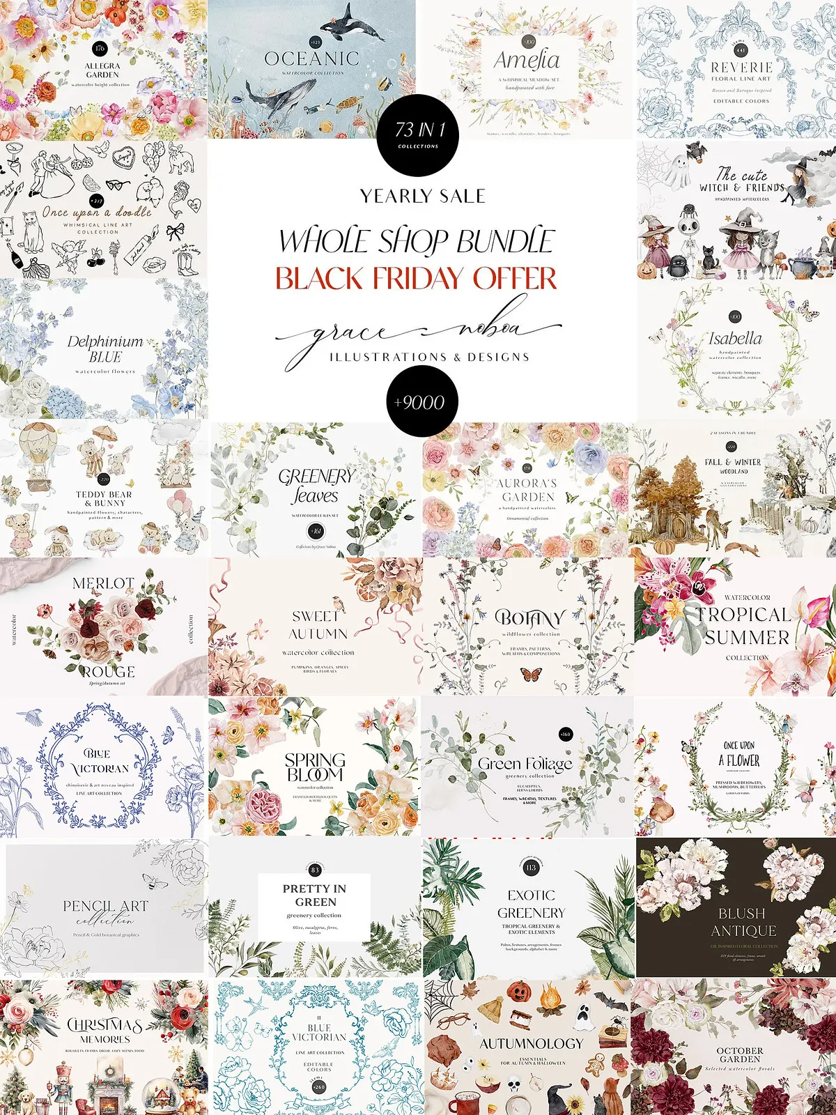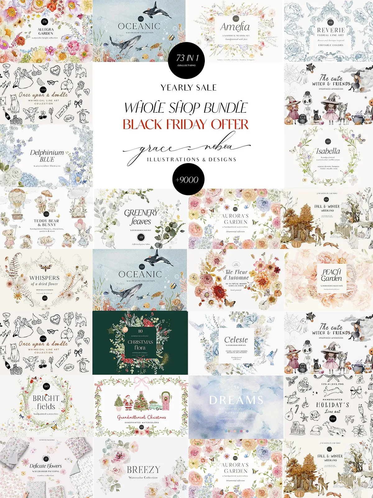 Get ready to transform your creative workflow with the **73-Collection Seasonal Bundle** — a meticulously curated, all-in-one digital art vault bringing together every season-inspired collection I’ve created from December 2021 to December 2022. This isn’t just a bundle — it’s a complete design ecosystem packed with watercolor elements, vector illustrations, seamless patterns, decorative motifs, and more. Whether you’re building seasonal branding, crafting digital invitations, designing textiles, or creating social media content, this collection gives you everything you need to stand out with style, depth, and emotional resonance.