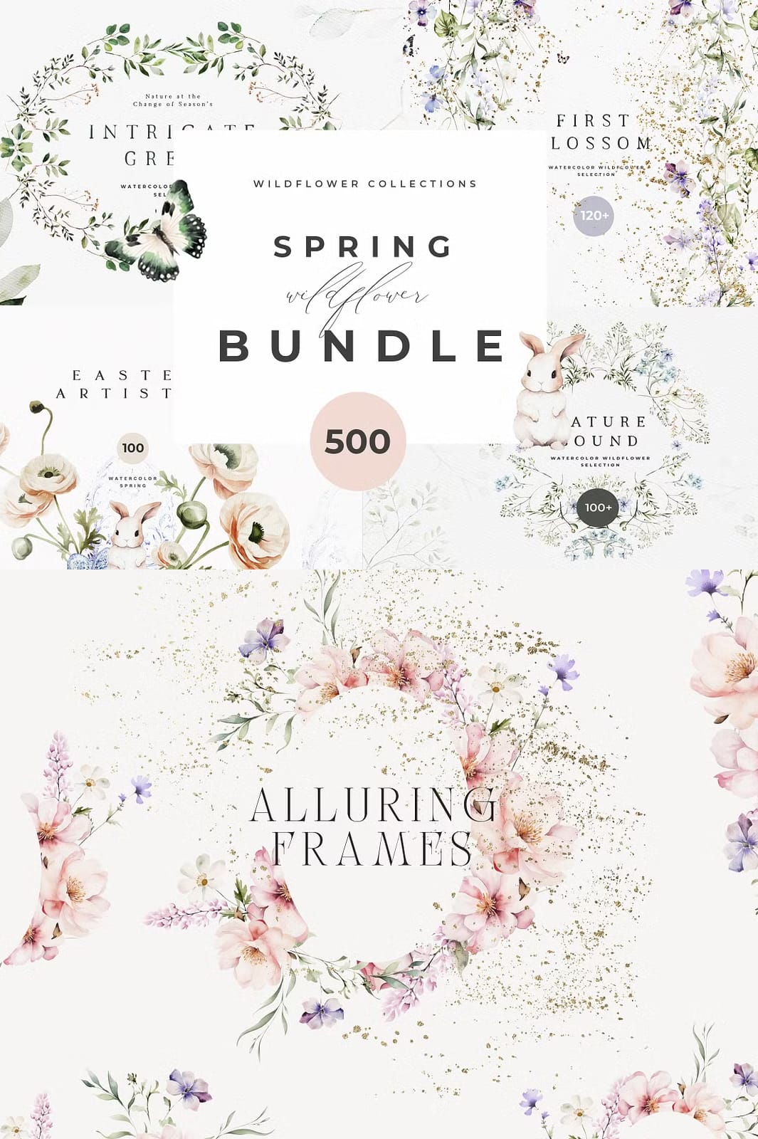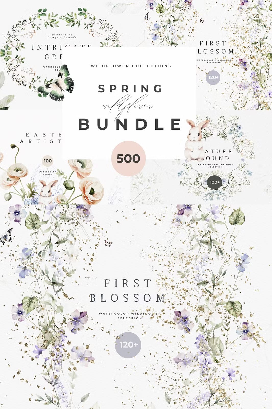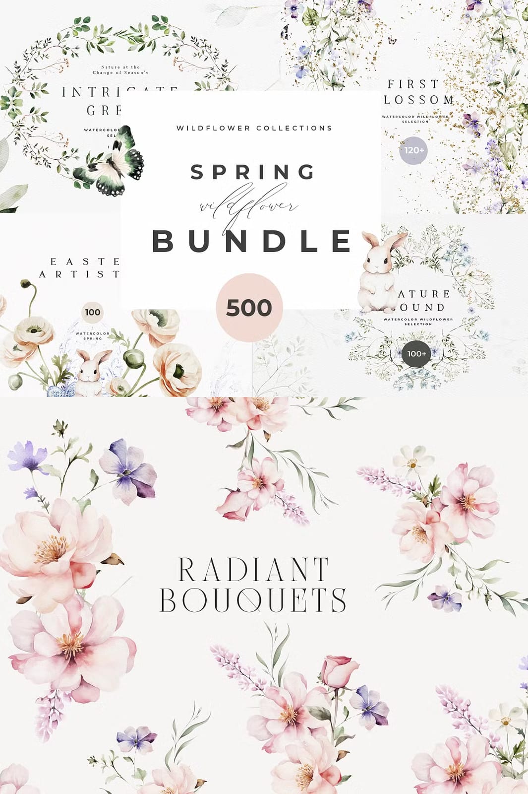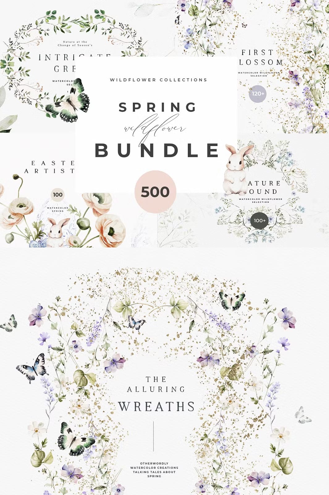 Welcome a value-packed Spring library, including everything you need for joyful Spring creations. Discover a comprehensive range of creative goodness: Watercolor wreaths and Spring greenery, various arrangements, Easter watercolor and Easter bunnies, wild flower watercolor, natural greenery, premade compositions and so much more!