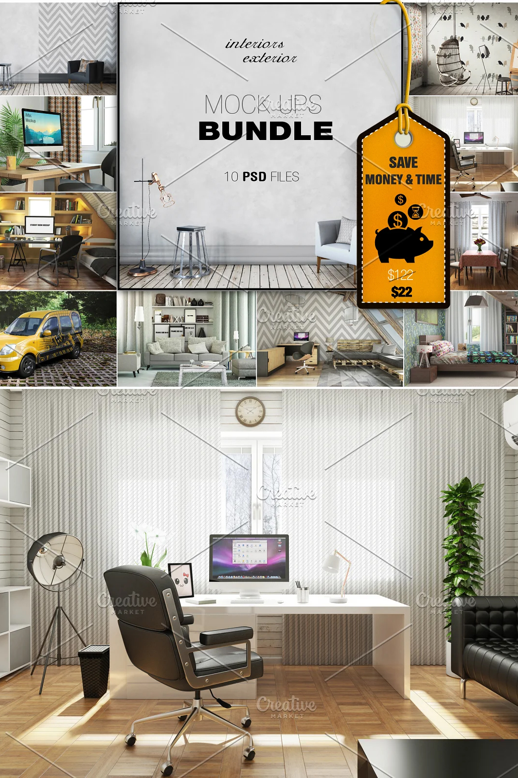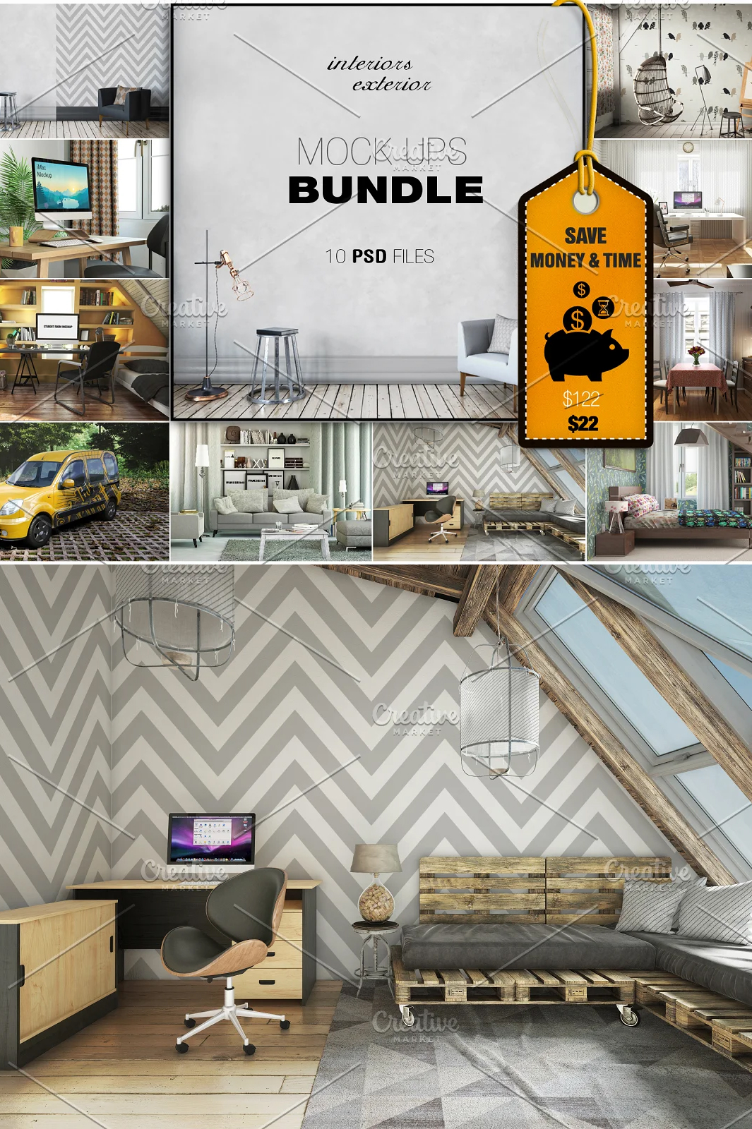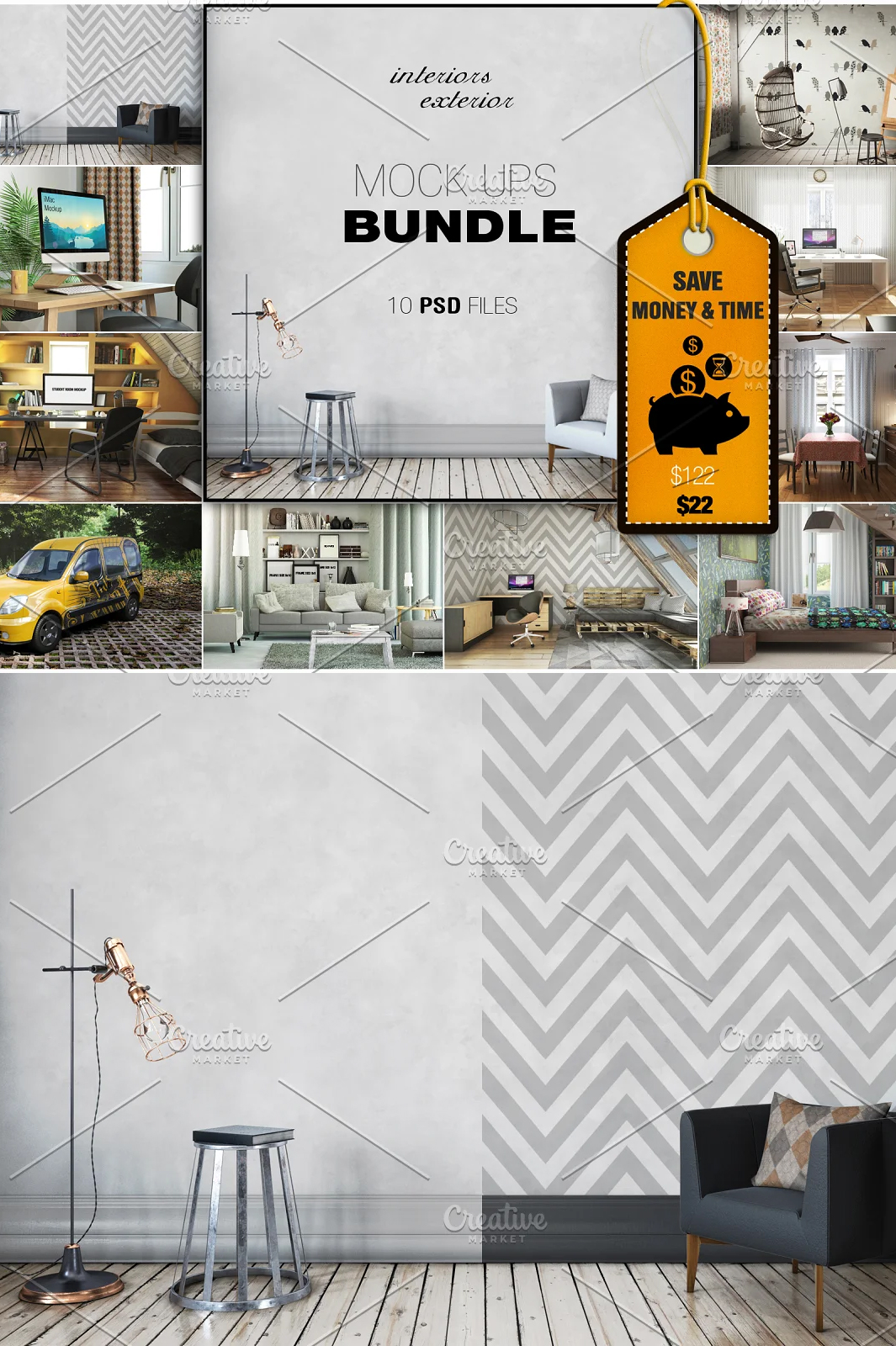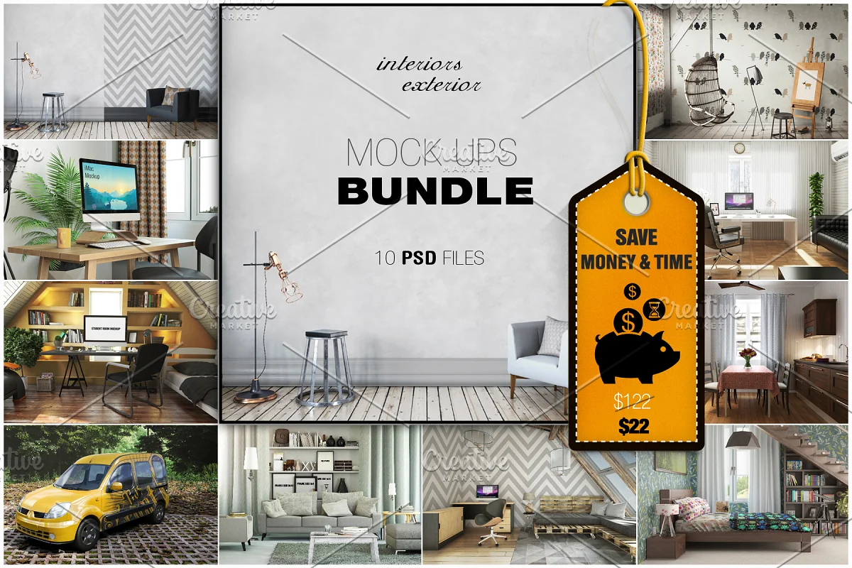 10 Interior & Exterior Mockups Bundle is to display your work and web project design.