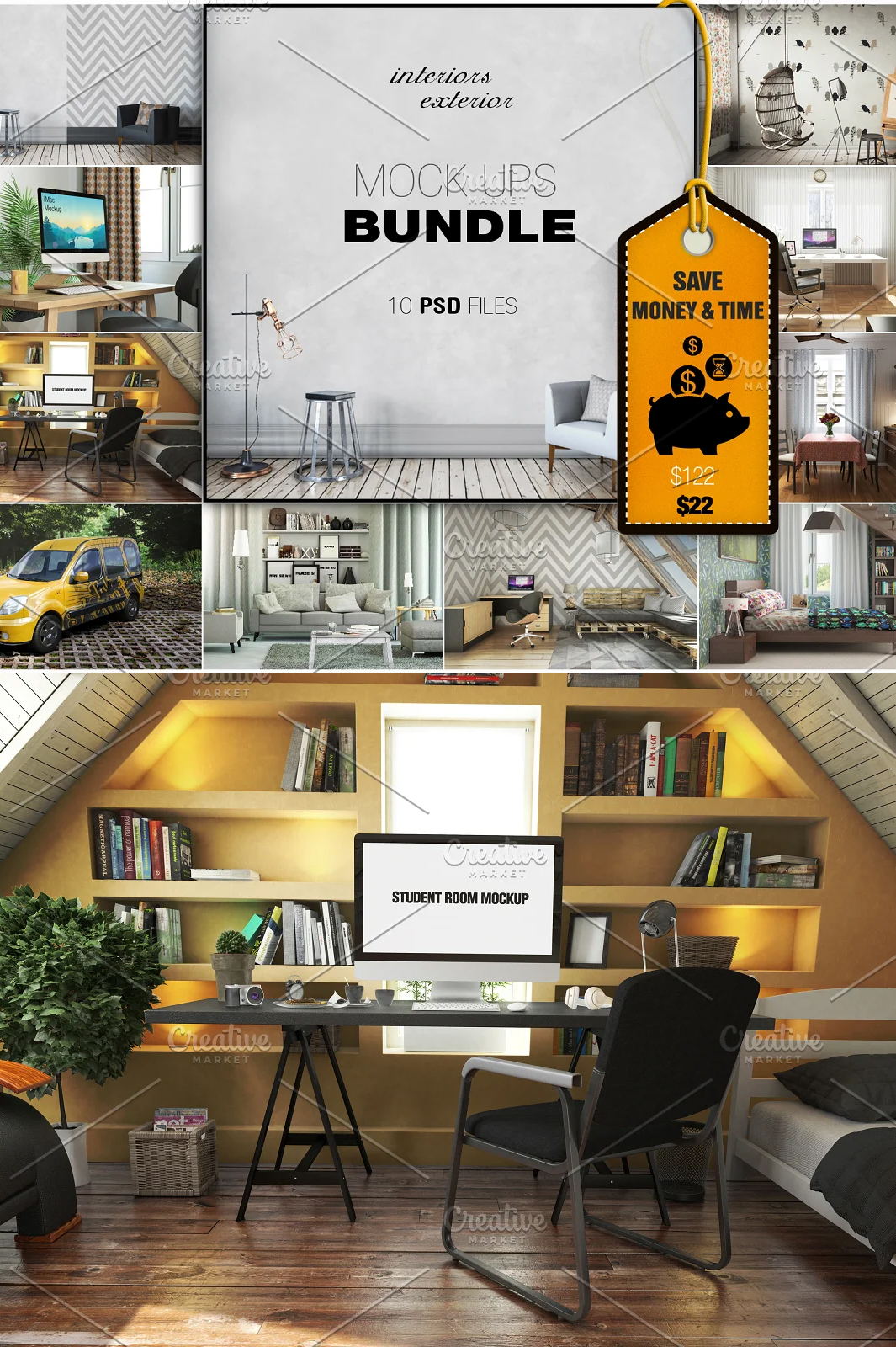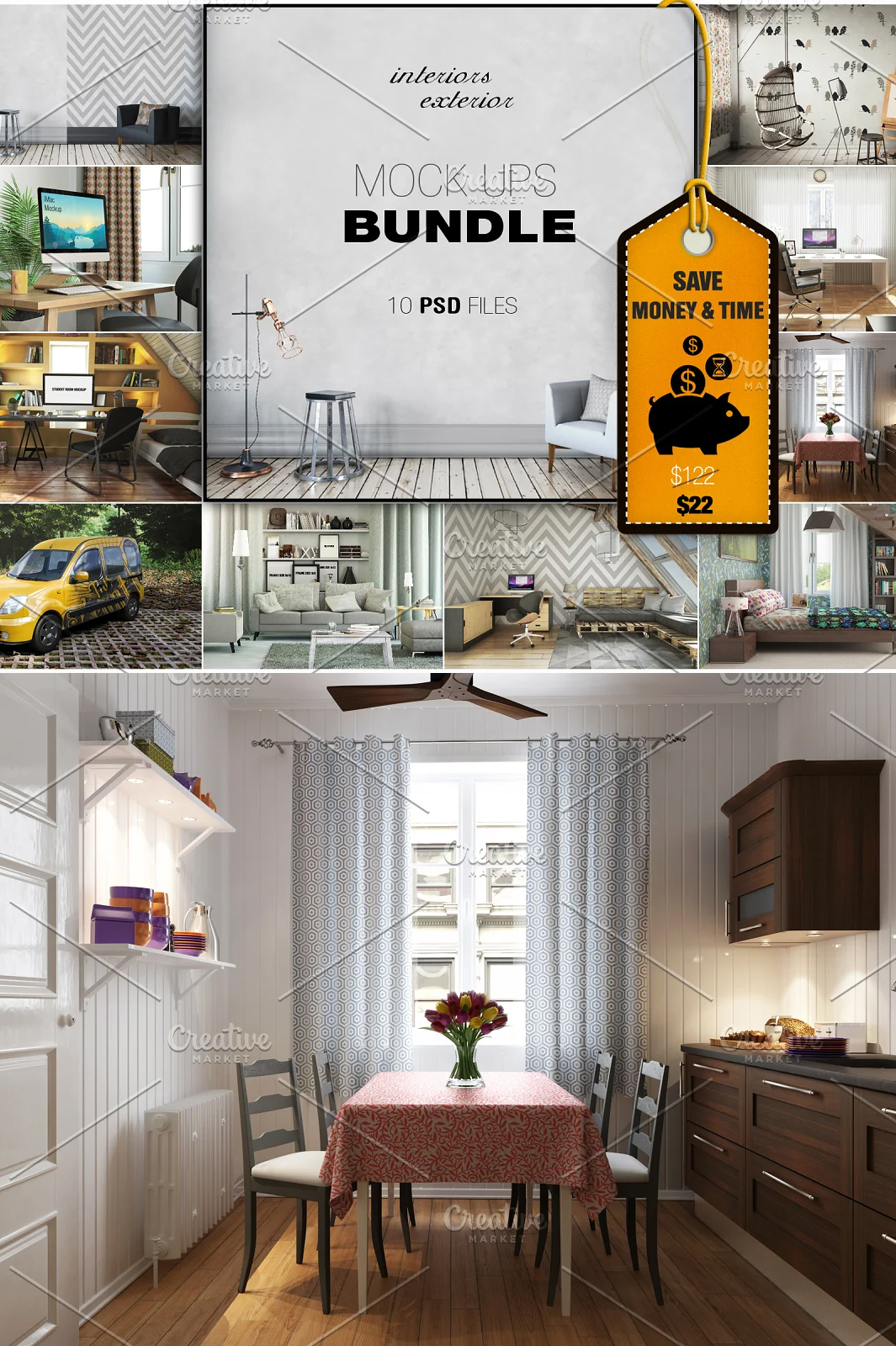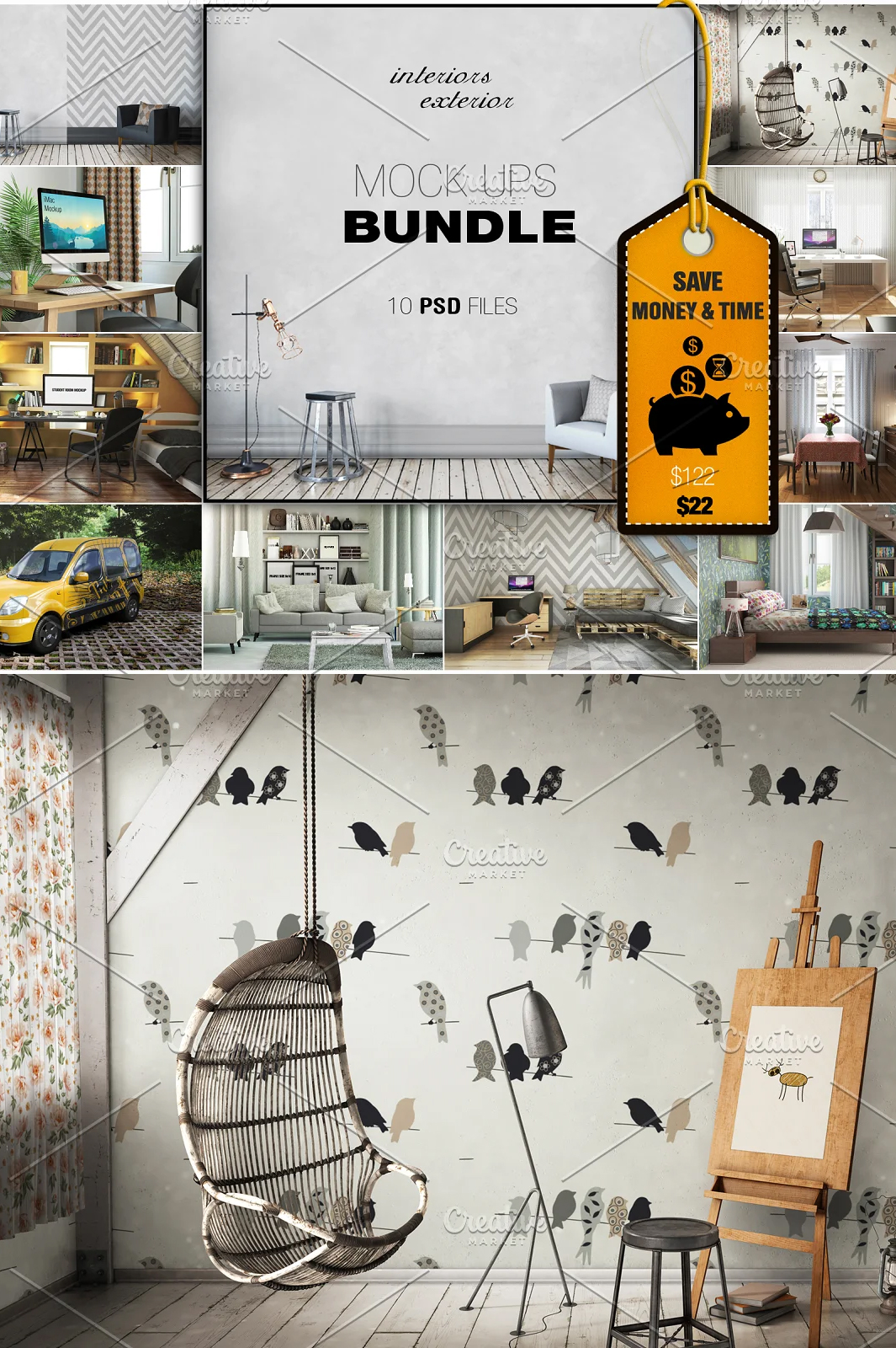 10 Interior & Exterior Mockups Bundle is to display your work and web project design.