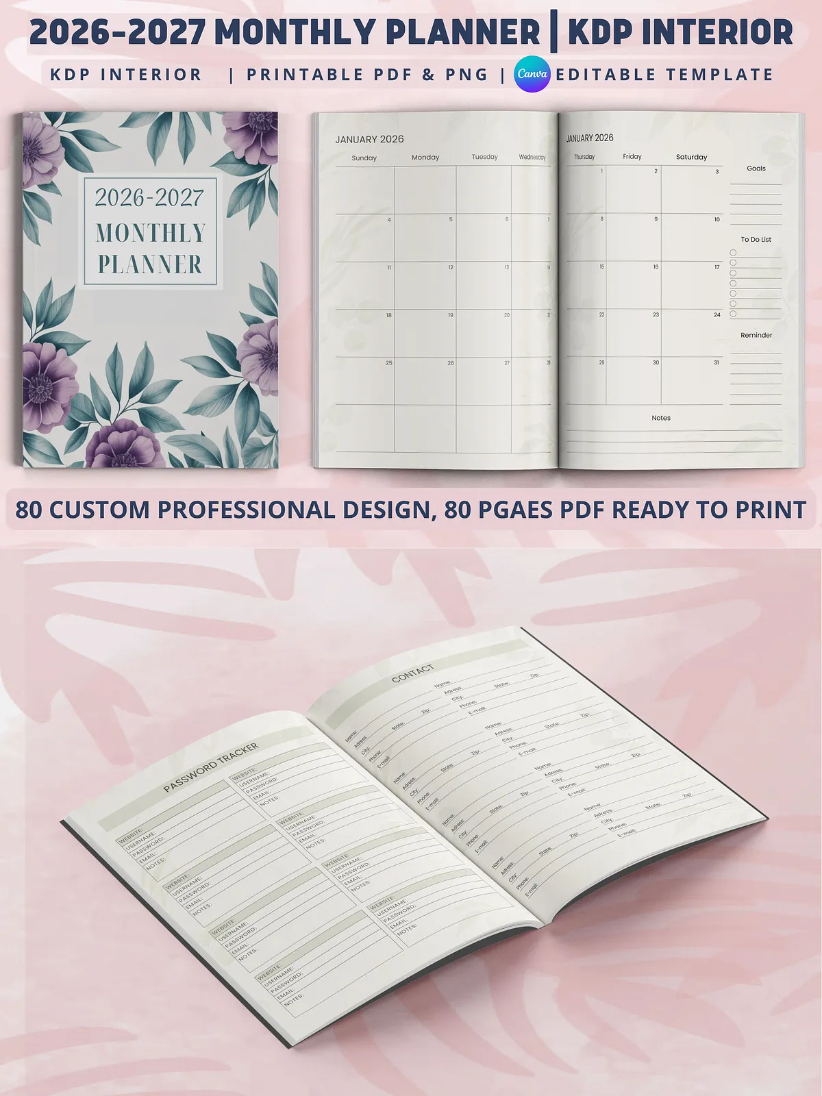 Take full control of your time, goals, and priorities with the 2026–2027 Monthly Planner, a powerful, beautifully designed, all-in-one planning solution built for ambition and clarity. Whether you’re a student mapping out exams, a professional managing client projects, or someone aiming to organize personal dreams and habits, this planner helps you plan ahead, stay motivated, and achieve more—every month, every week, every day.