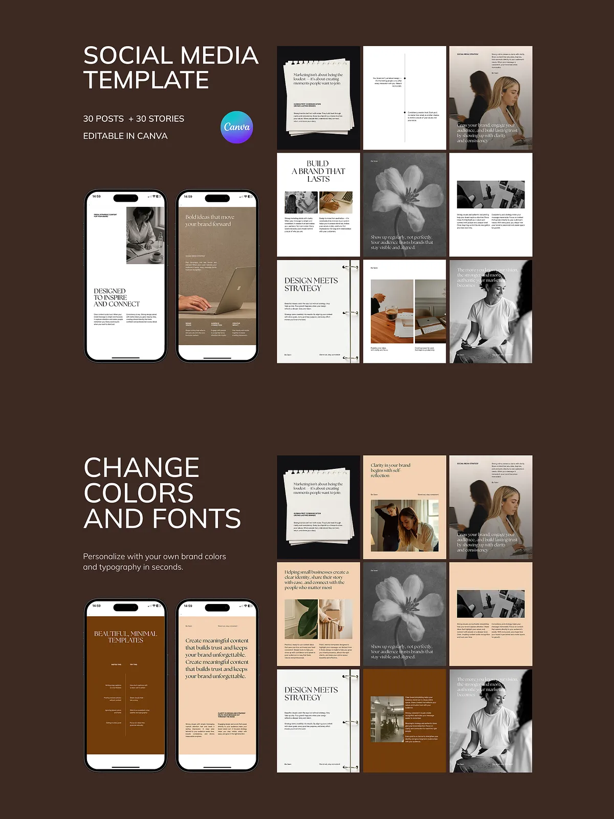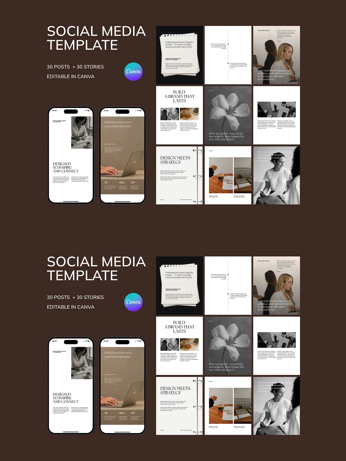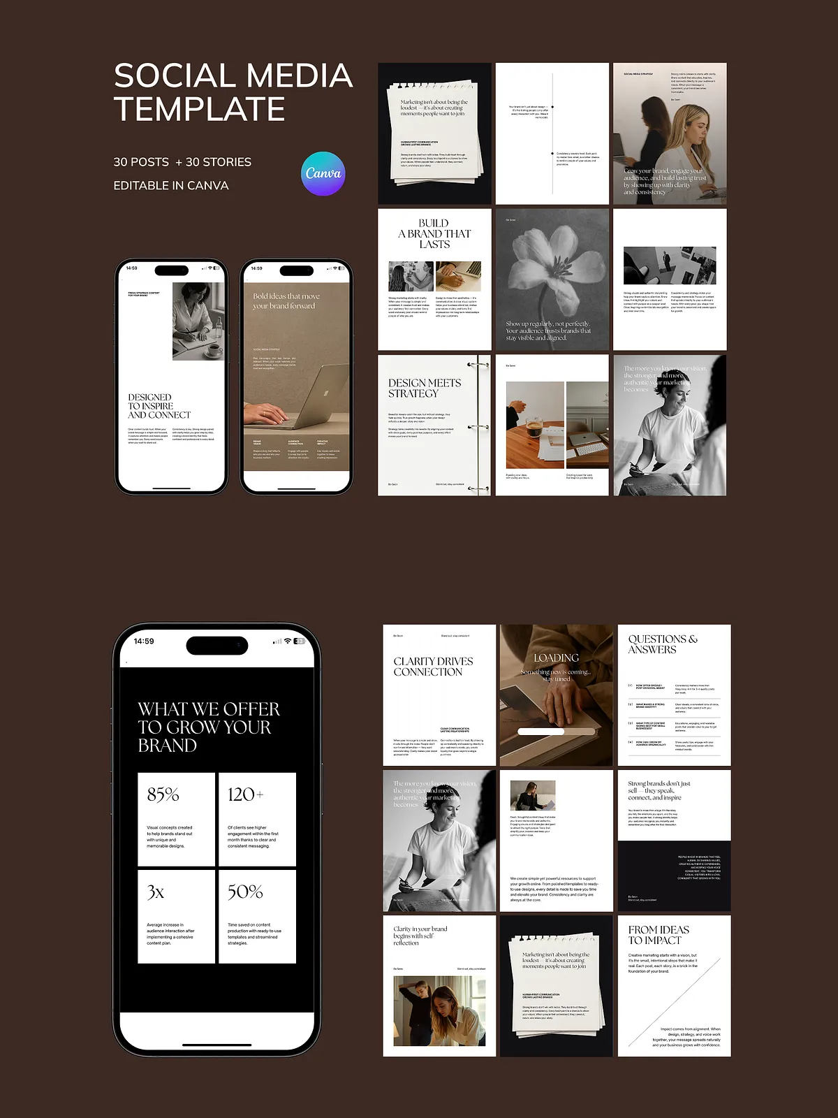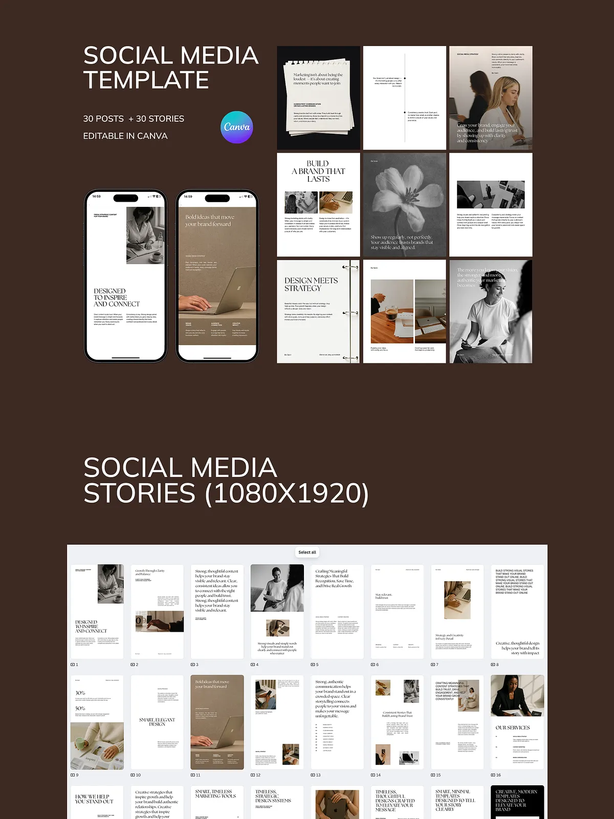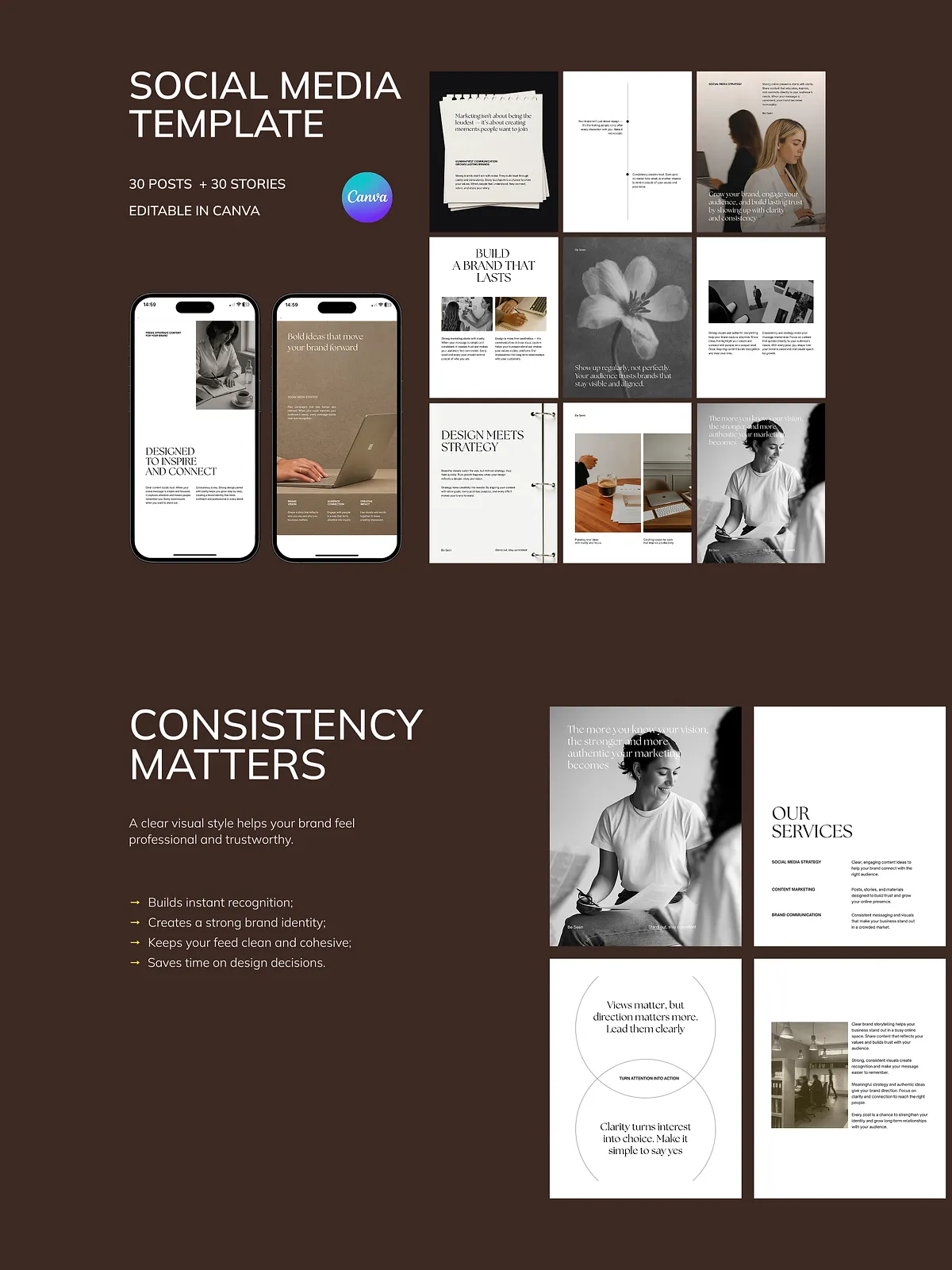 - 30 Professional Instagram Post Templates (1080 x 1350 px): Perfect for brand storytelling, lead magnets, service promotions, and educational content that positions you as an expert.
