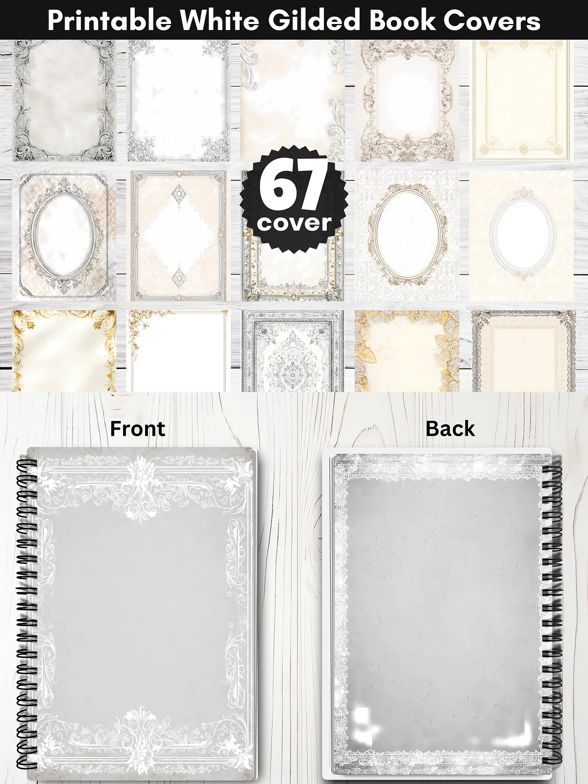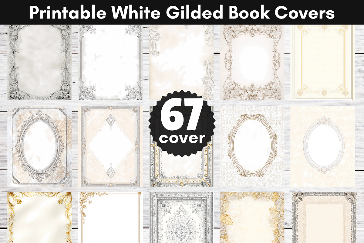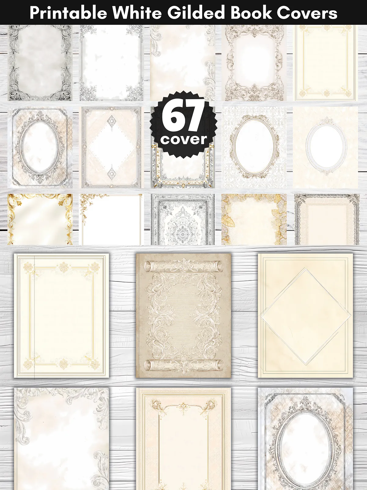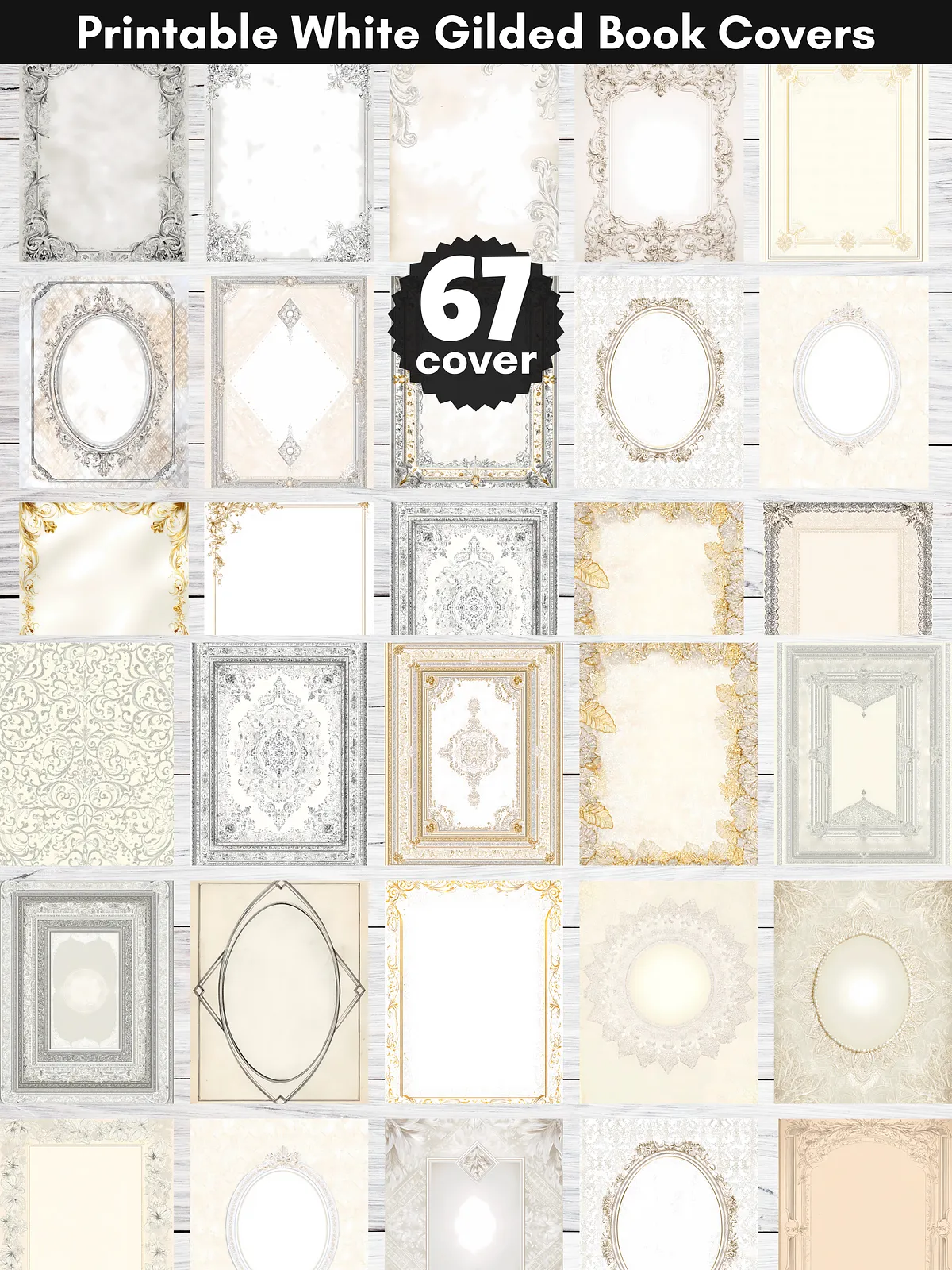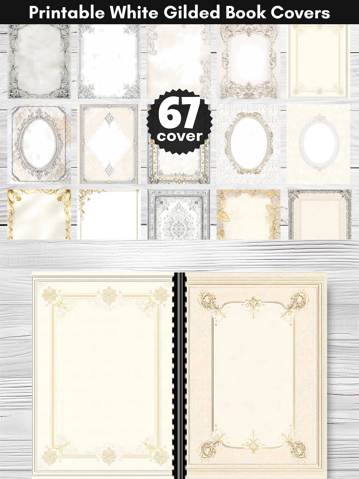 Stop settling for generic designs. With this comprehensive set of ornate white gilded book covers, your projects will stand out with authenticity, beauty, and purpose. Use them to: