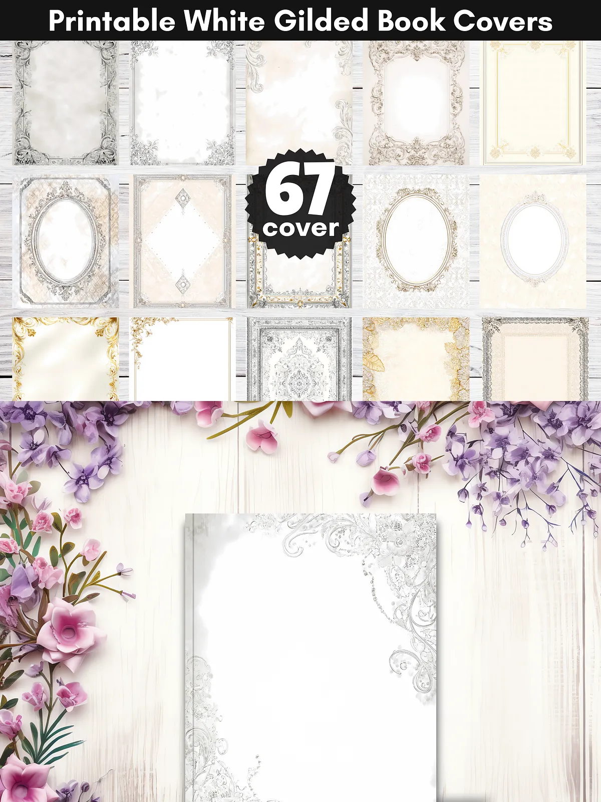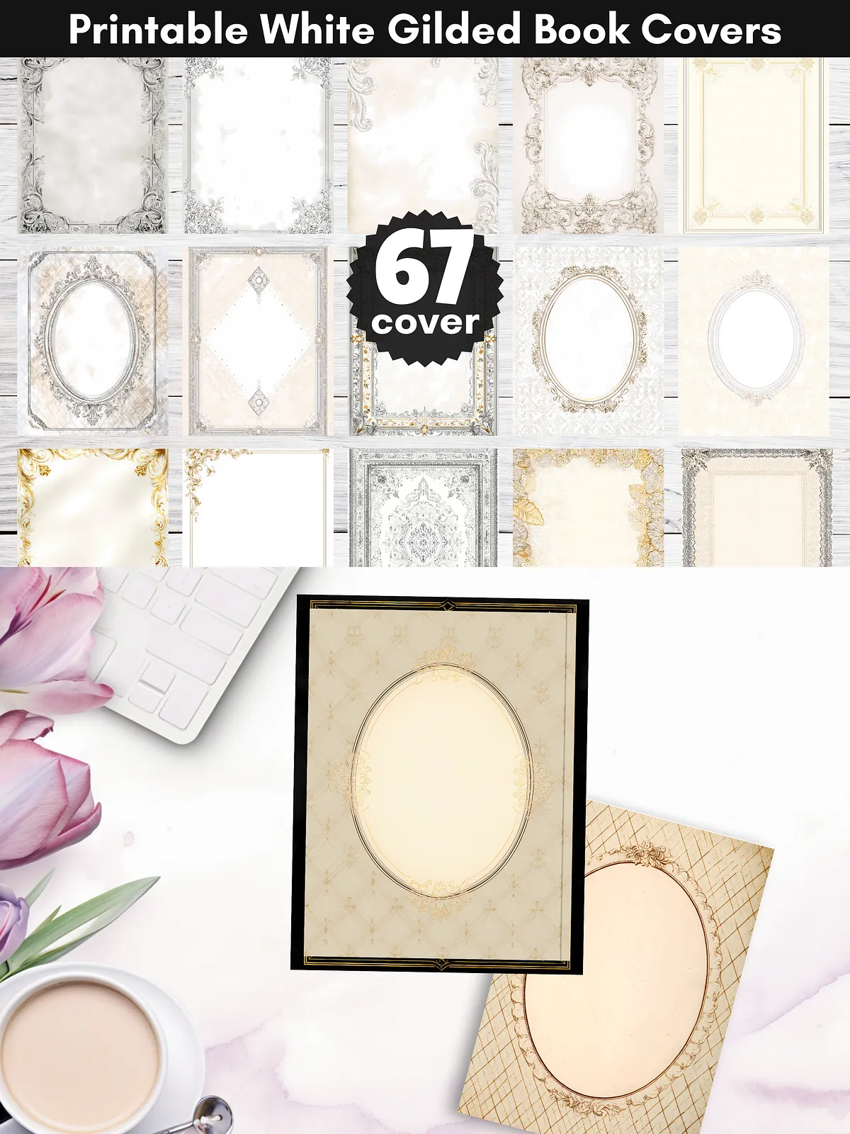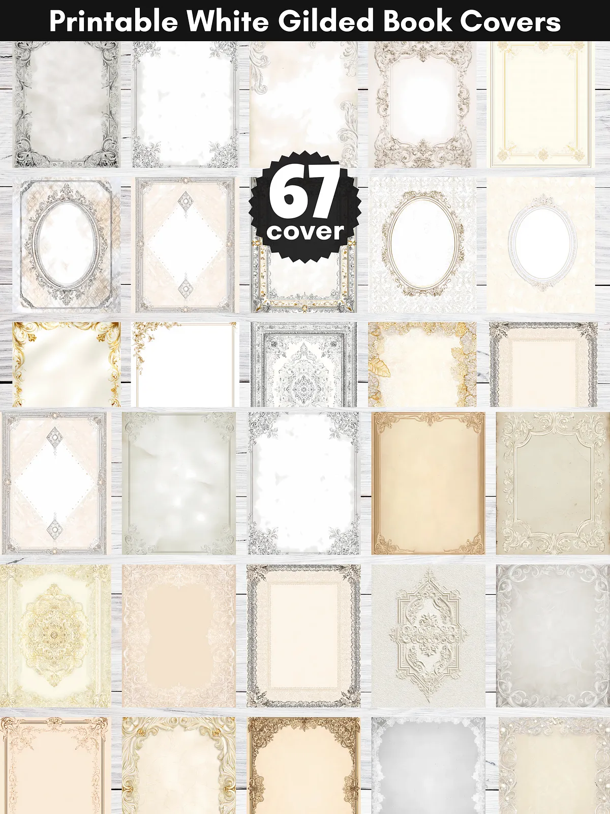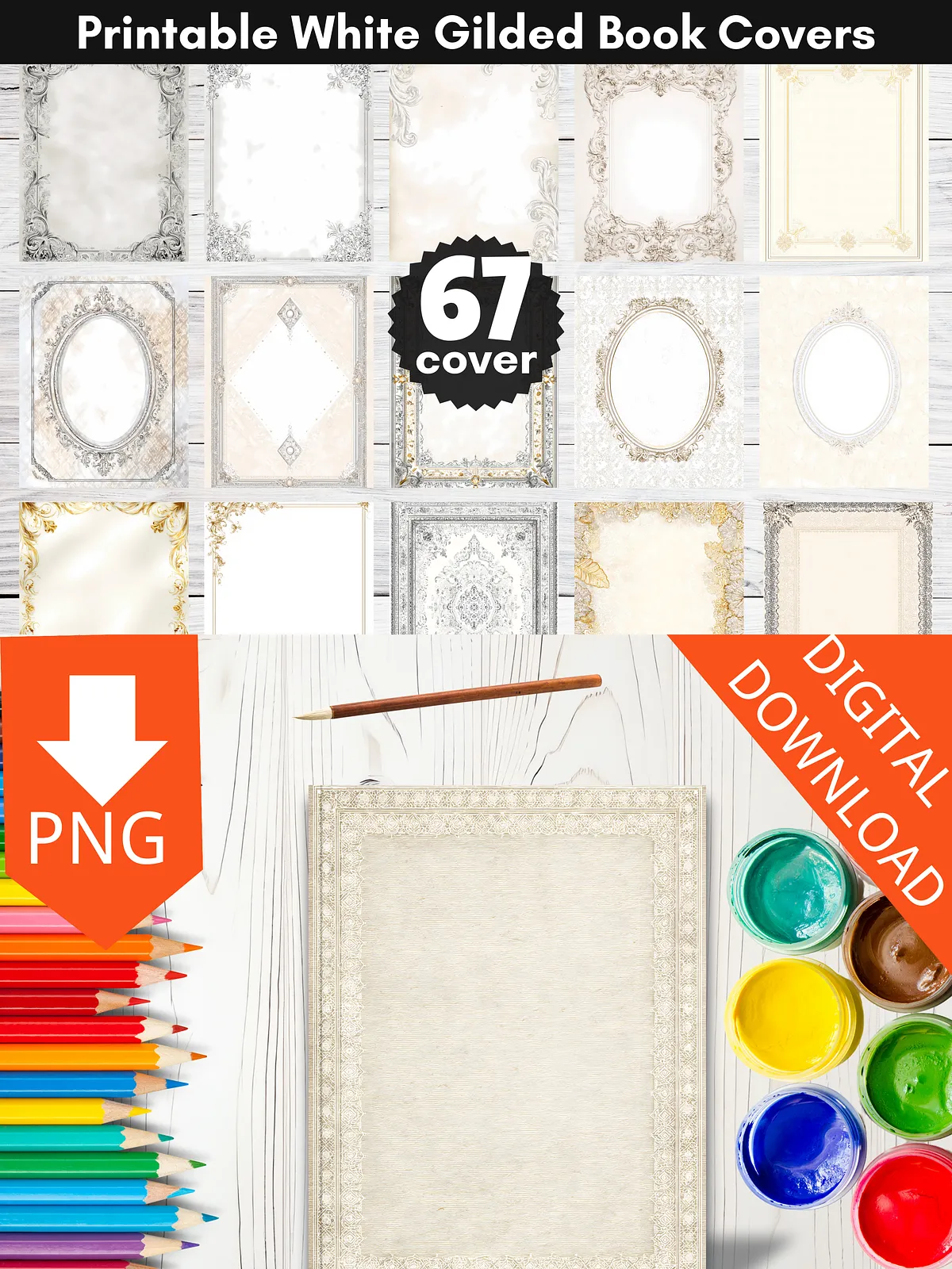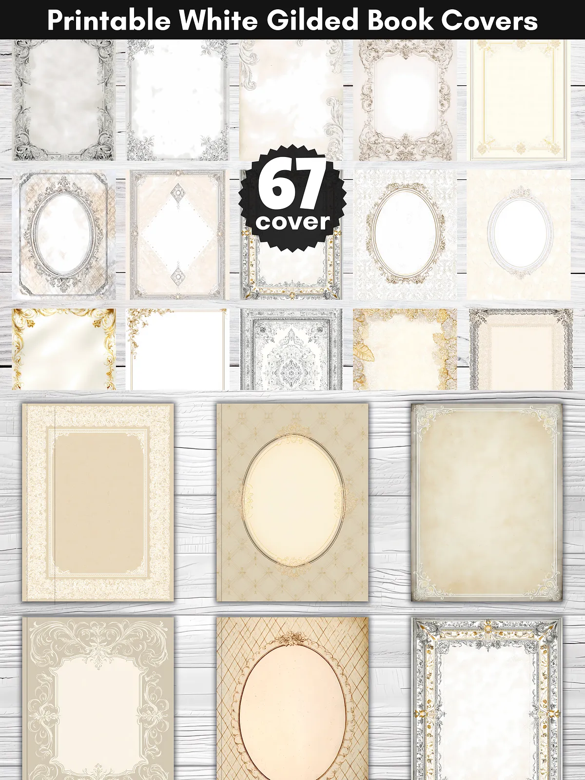 Stop settling for generic designs. With this comprehensive set of ornate white gilded book covers, your projects will stand out with authenticity, beauty, and purpose. Use them to: