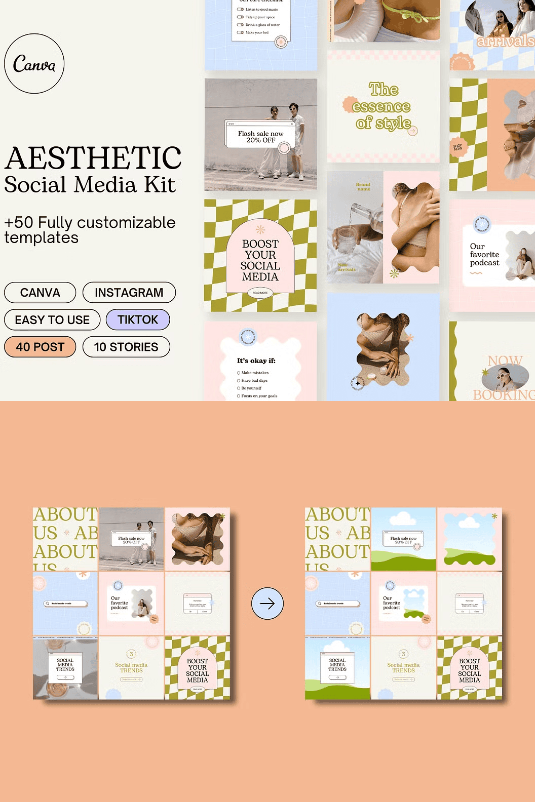 Aesthetic is a template to edit in Canva ideal to boost your engagement on social networks.