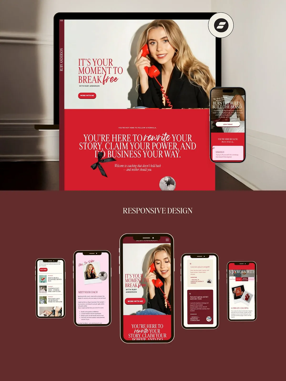 Bold Red Showit Template for Coaches