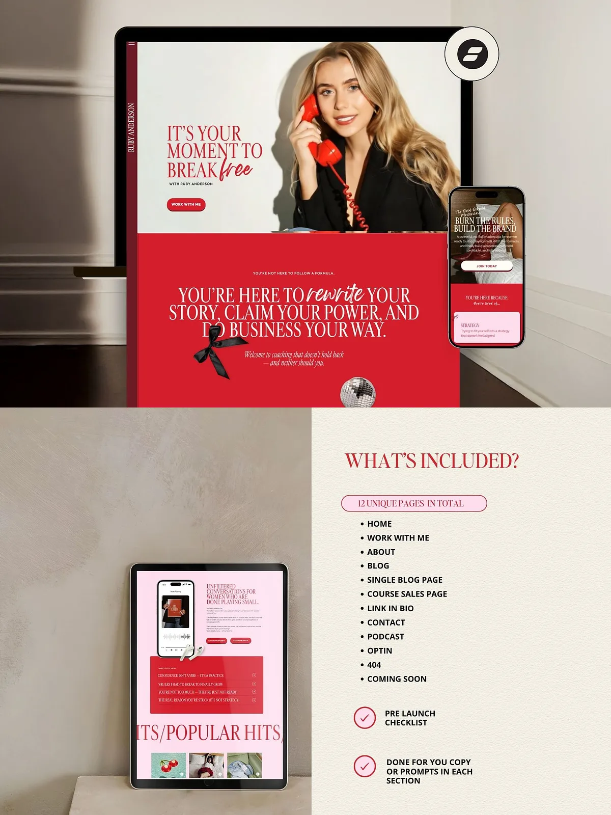 Stop compromising on your online presence. If you’re a coach, speaker, author, or service provider, it’s time to replace generic templates with a powerful, visually striking website that reflects your authority, personality, and mission. Introducing the Ruby Showit Template—a bold, modern, and fully scalable website solution designed specifically for high-impact personal brands.