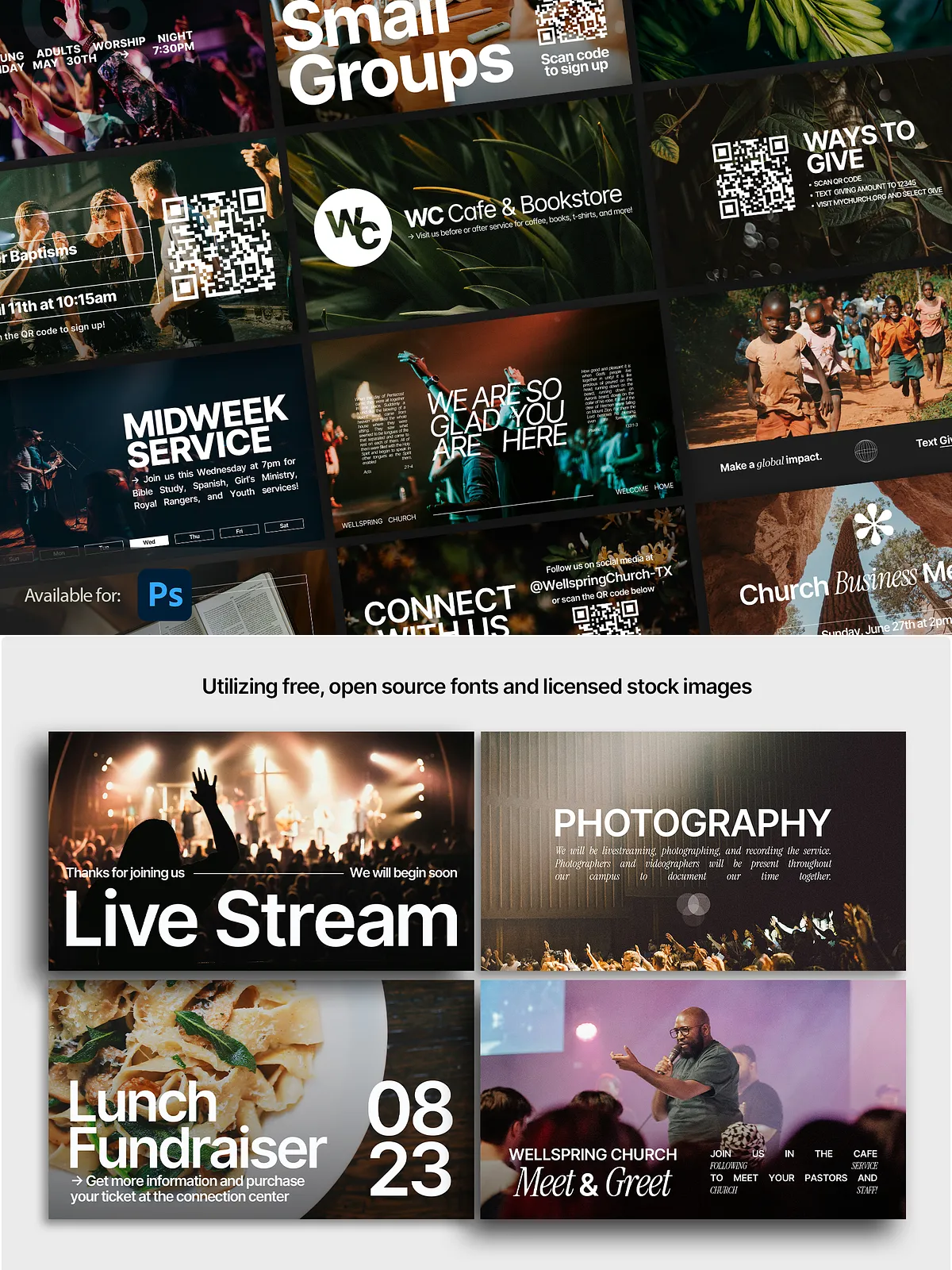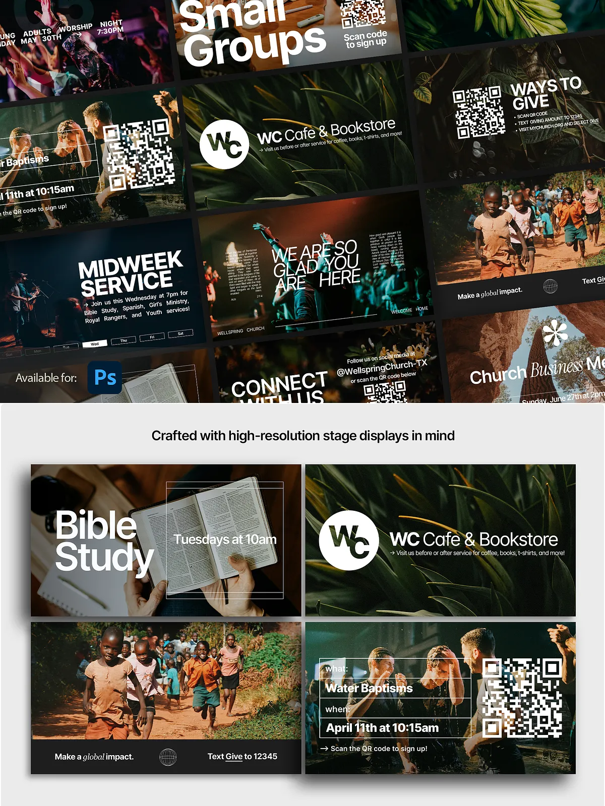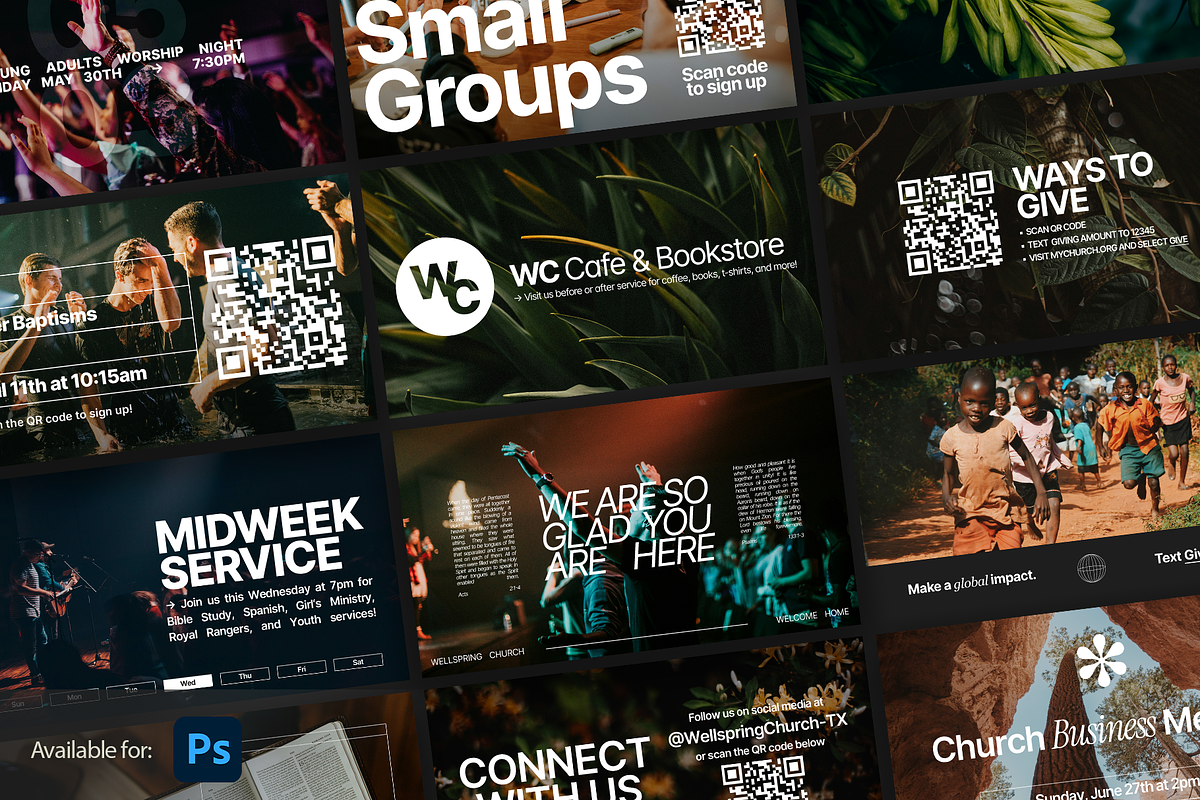 Stop relying on generic PowerPoint templates or messy layouts. Take control of your visual storytelling with a professional-grade, free, and ever-evolving PSD collection that’s crafted for church, by designers who care about ministry.