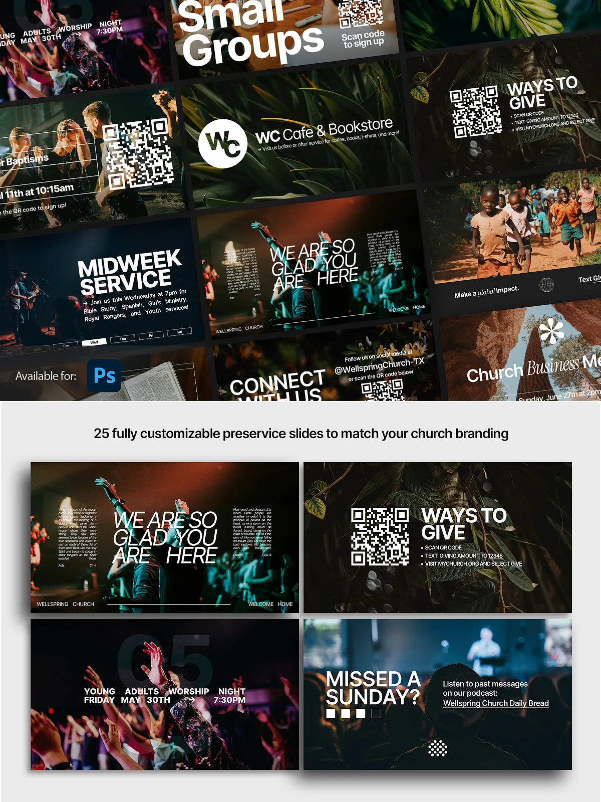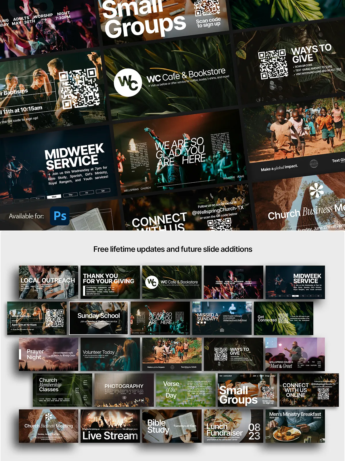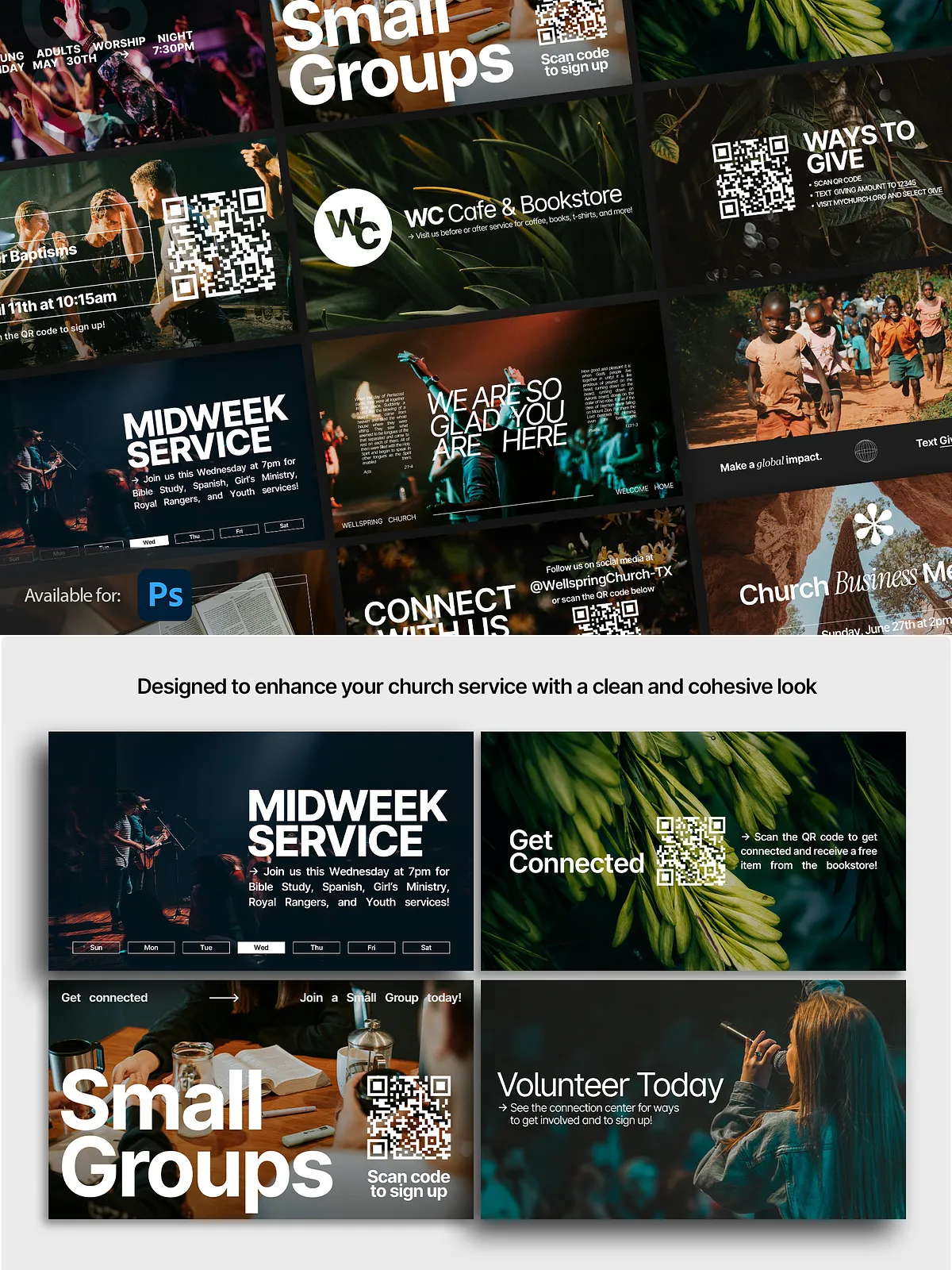 Stop relying on generic PowerPoint templates or messy layouts. Take control of your visual storytelling with a professional-grade, free, and ever-evolving PSD collection that’s crafted for church, by designers who care about ministry.