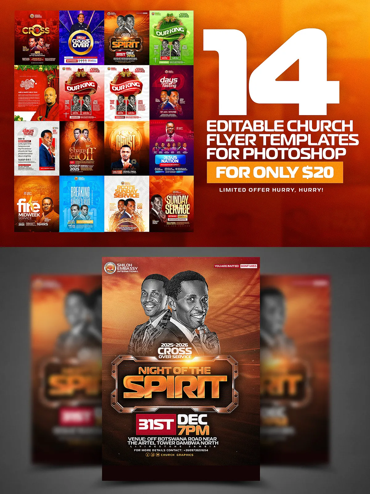 Whether you’re launching a Christmas outreach, planning a life-changing Crossover Night, leading a powerful week of Prayer & Fasting, or announcing your Sunday main service, this collection ensures your message is seen, understood, and felt.