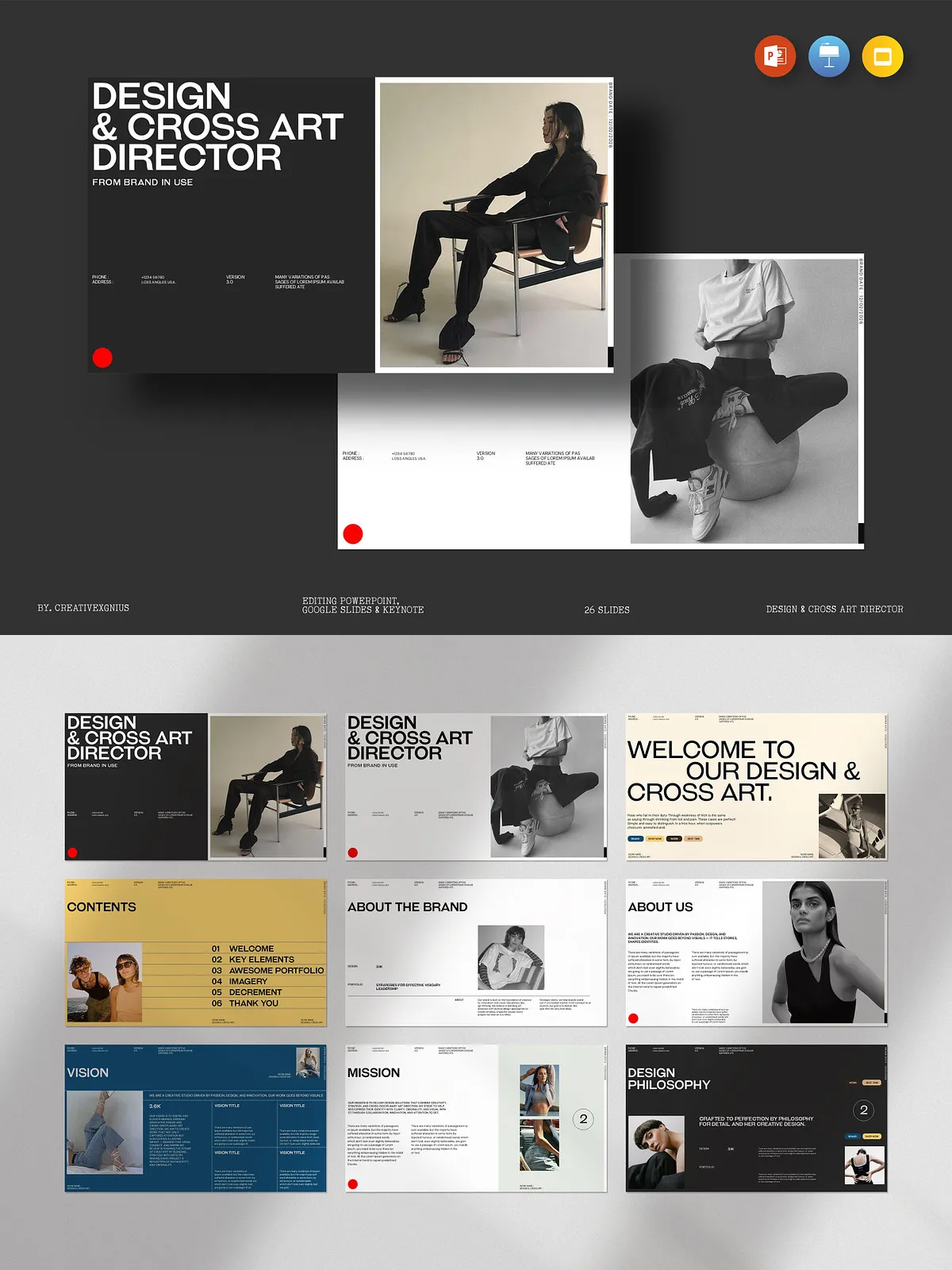 Stop settling for generic slides that fail to capture your vision. Whether you’re pitching a bold new concept, showcasing creative work, or presenting your company profile, your presentation should reflect the same innovation and polish as your ideas. The Design & Cross Art Presentation Template delivers exactly that—a contemporary, professional-grade layout system built to elevate your message across industries, platforms, and audiences.