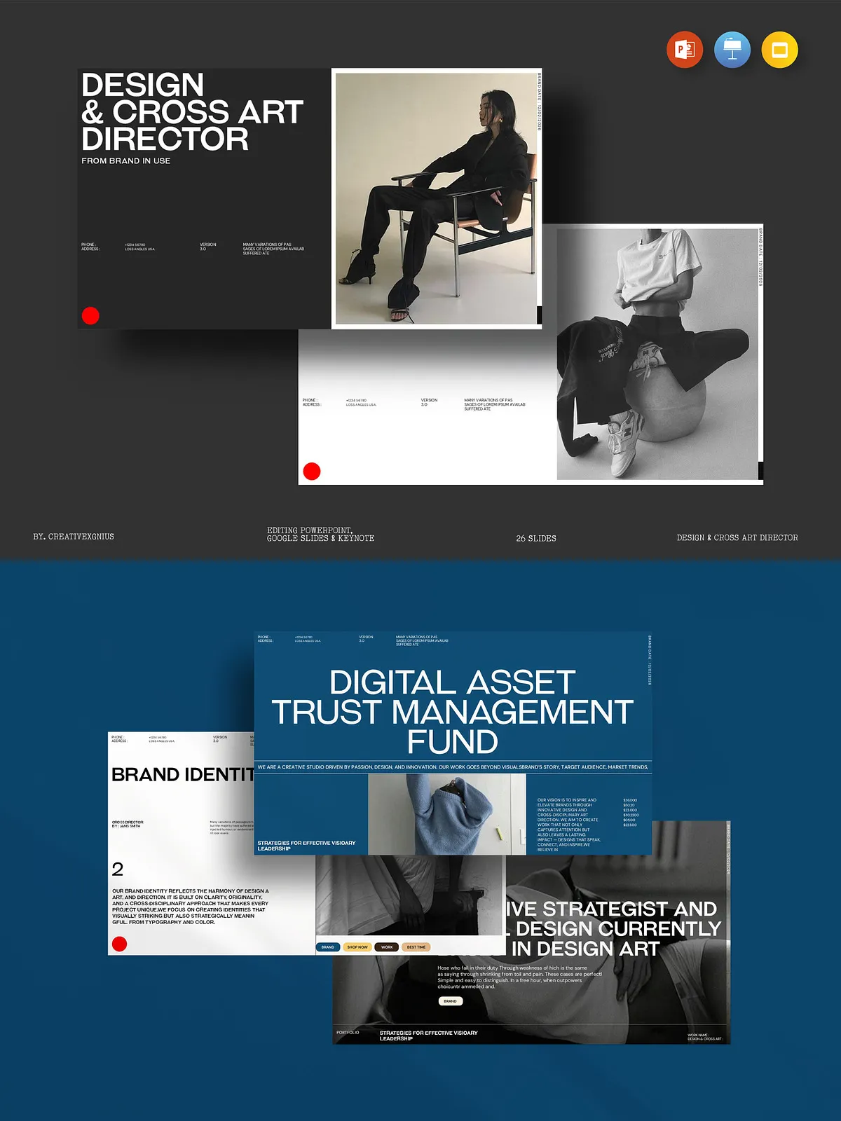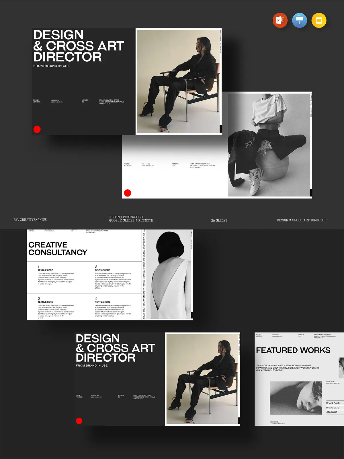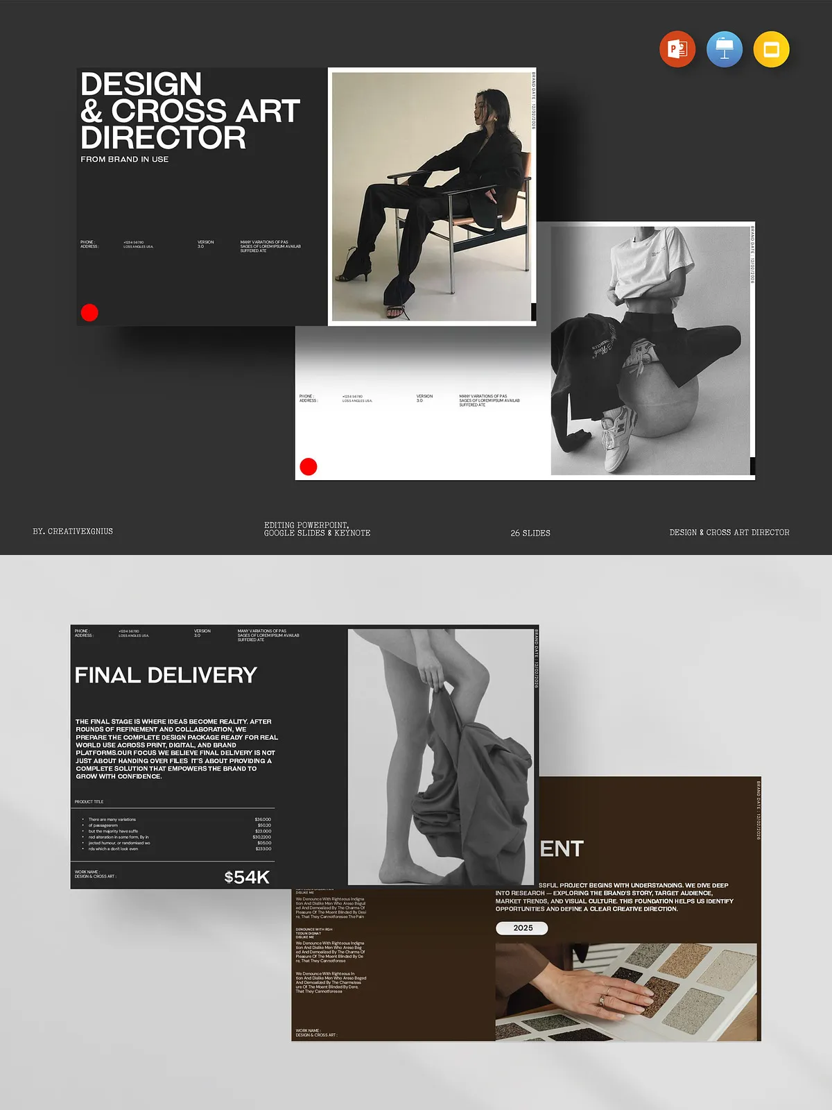 • 26 Unique Creative Slides – From full-bleed hero images to split-screen comparisons, data-driven visualizations, timeline narratives, and product showcase spreads, this library offers diverse structural options for any presentation flow.