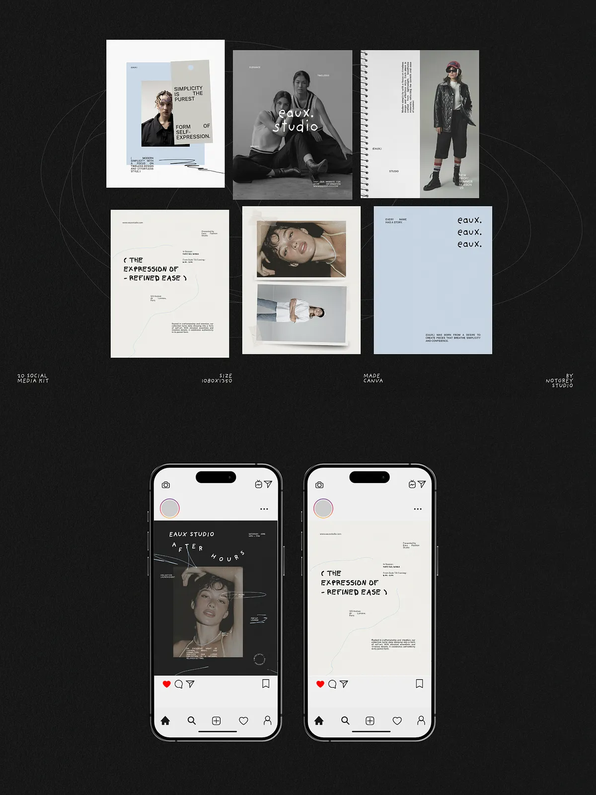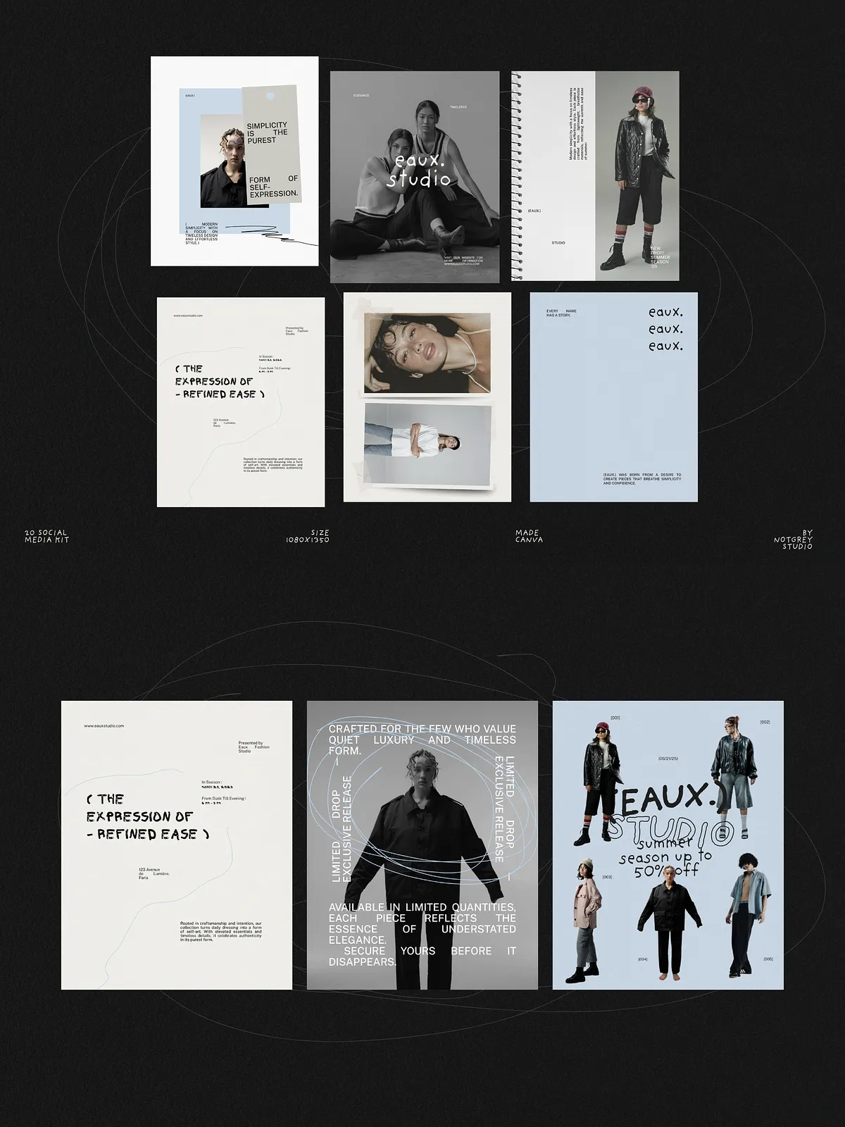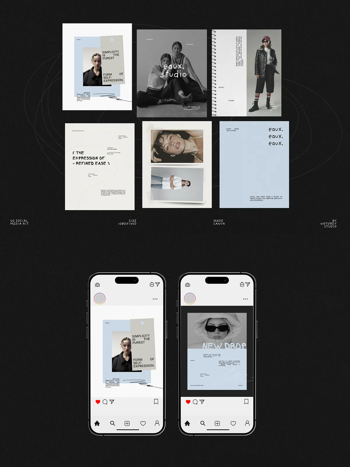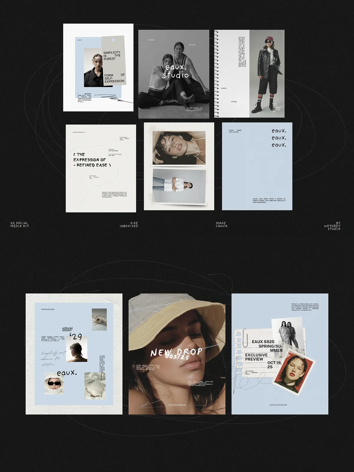 Eaux converts concept into polished content quickly. It reduces time spent designing individual posts, enforces a consistent visual identity across campaigns, and helps your brand communicate with editorial authority. Use these templates to launch collections, build anticipation, and present everyday content with elevated design.