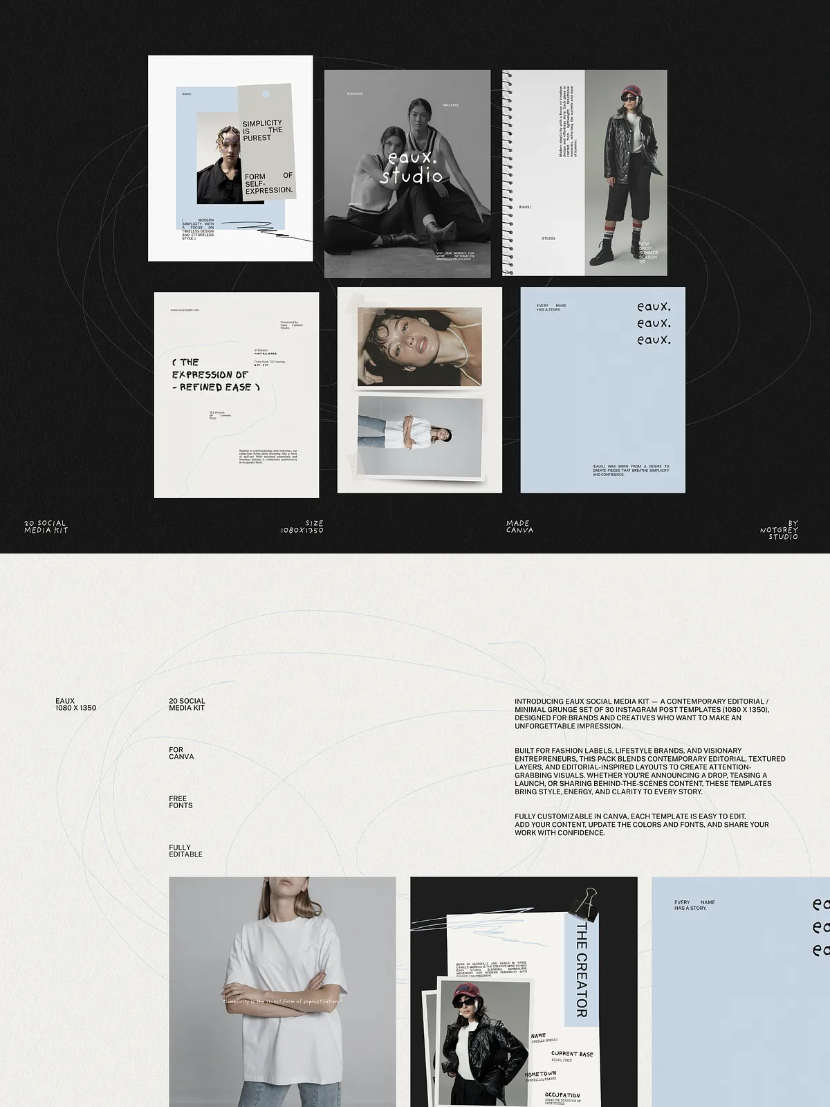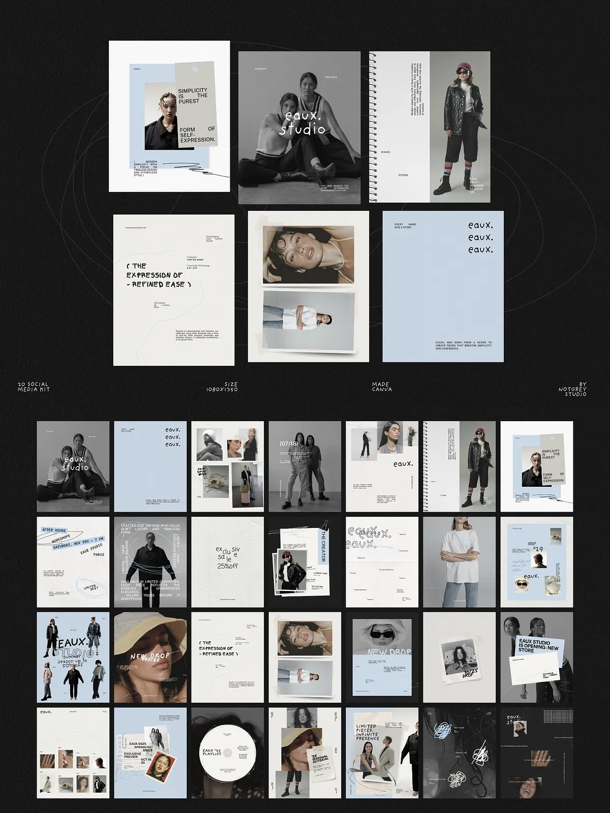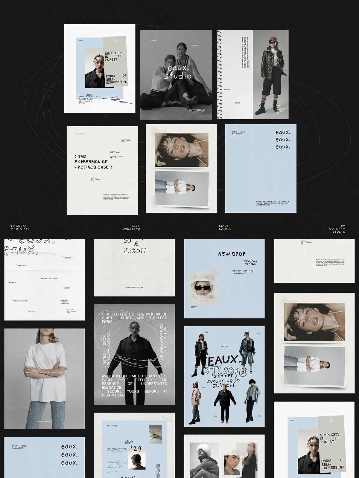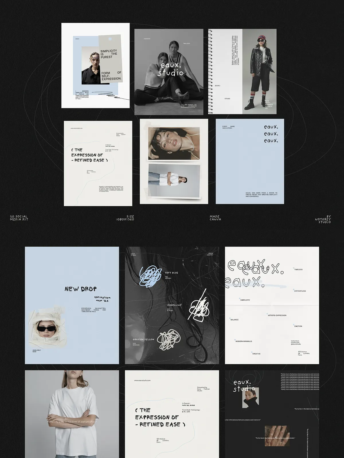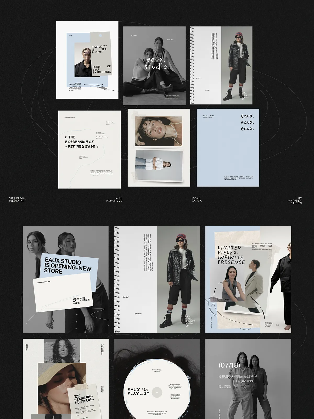 Eaux converts concept into polished content quickly. It reduces time spent designing individual posts, enforces a consistent visual identity across campaigns, and helps your brand communicate with editorial authority. Use these templates to launch collections, build anticipation, and present everyday content with elevated design.